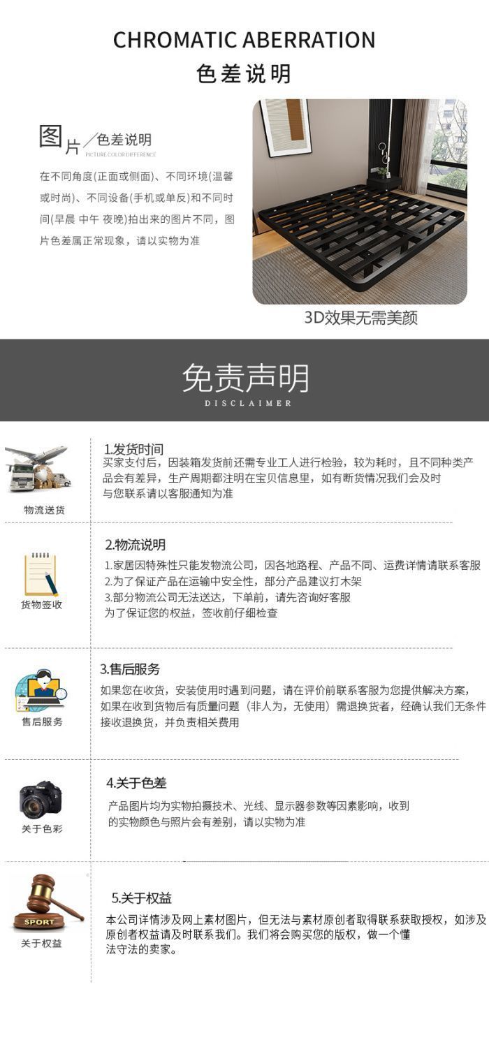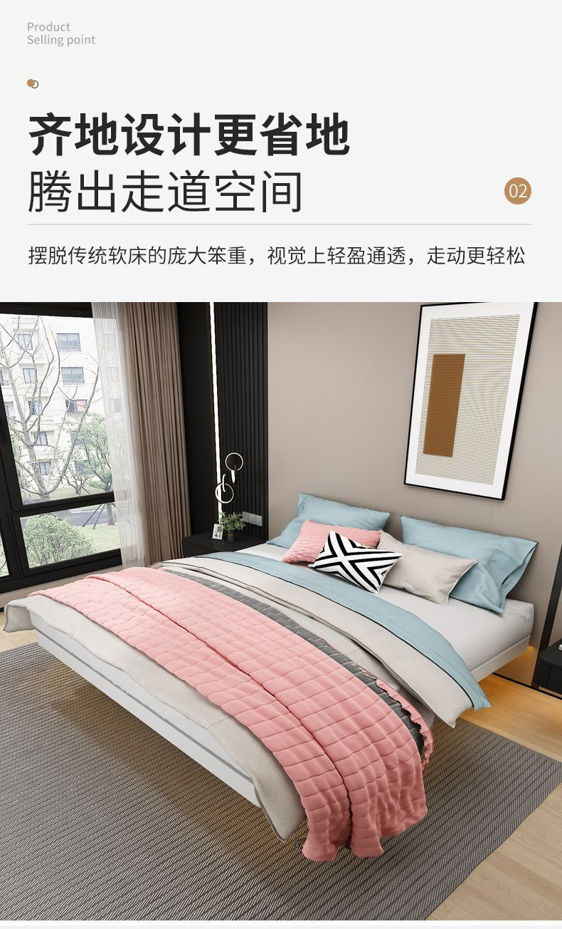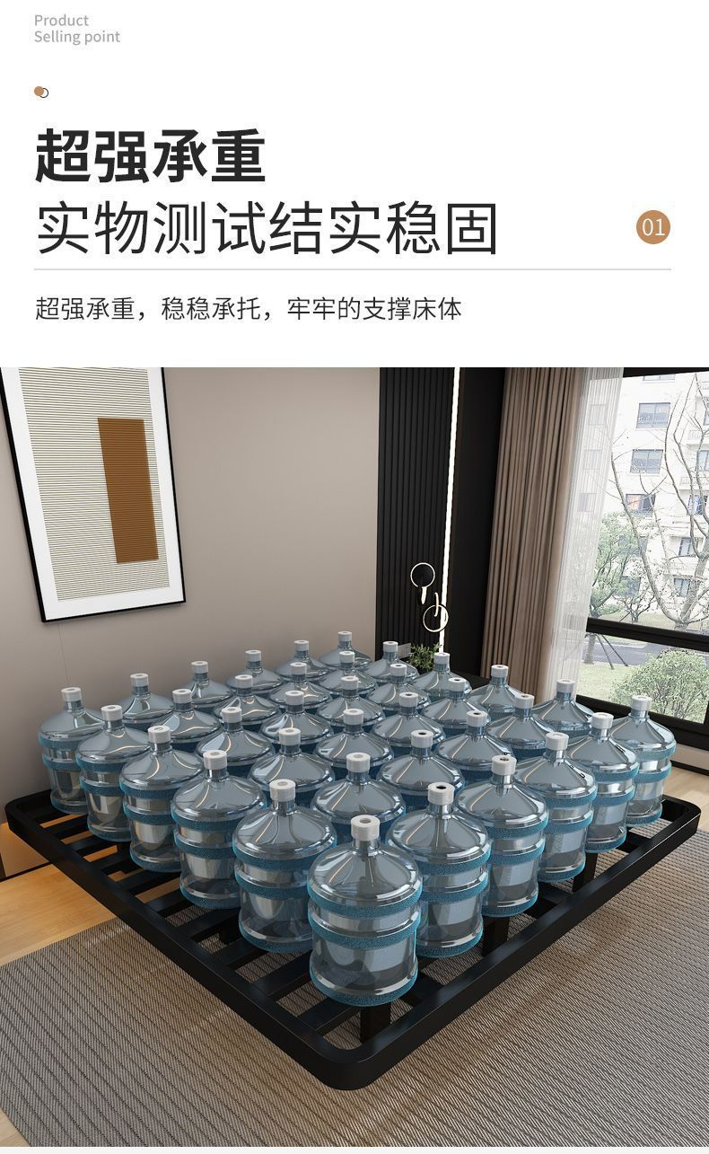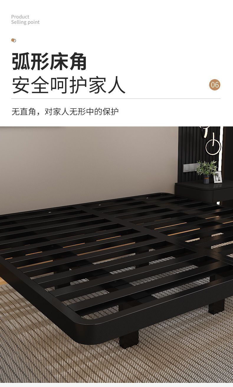 공중부양 침대 프레임, 전체 철제, 간단한 마스터 침실, 침대 옆이 없는 철제 침대 프레임, 더블 침대, 성인 아파트 임대 주택 철제 프레임 침대스토어 가기