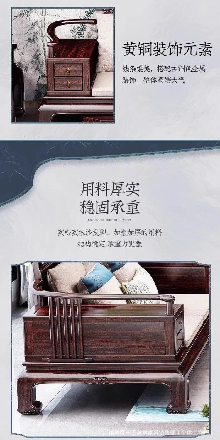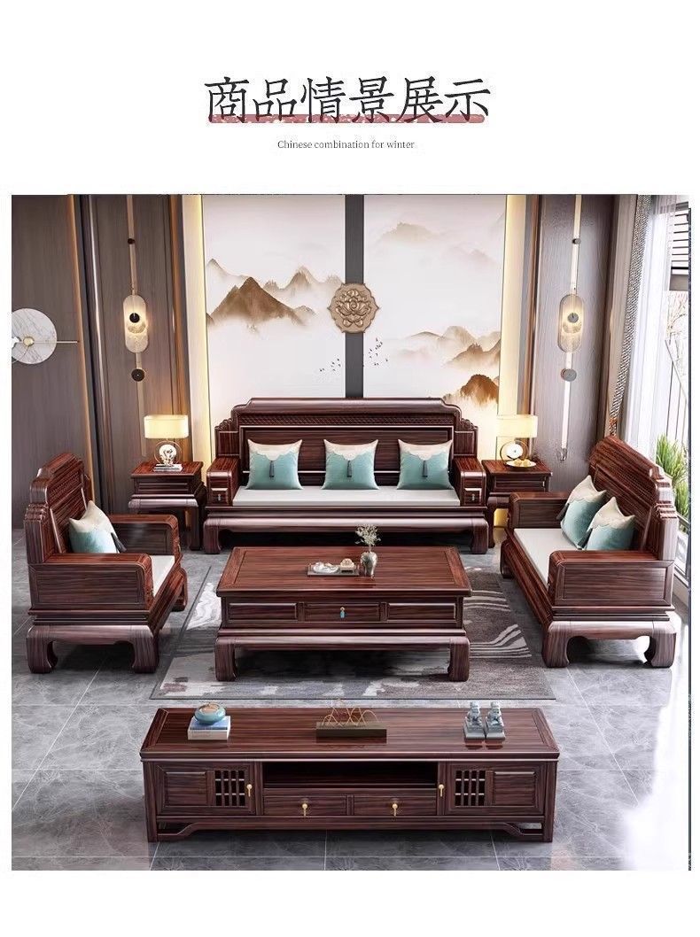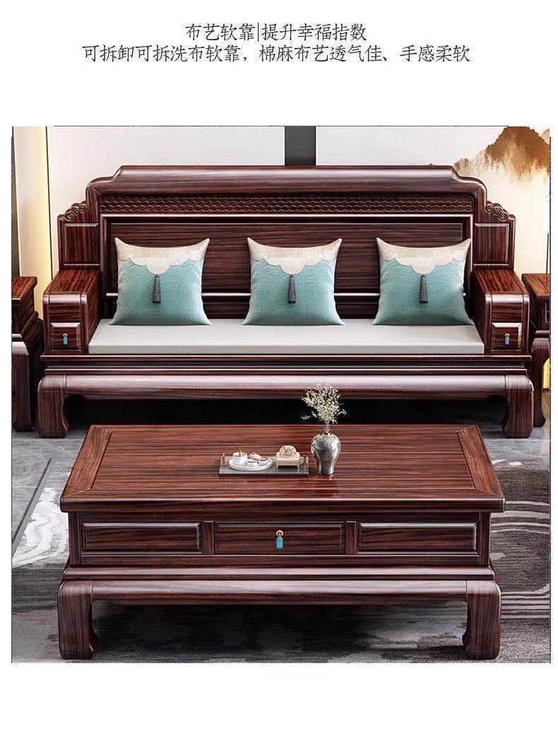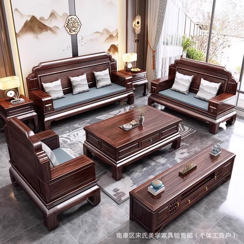 로즈우드 원목 소파 빌라 거실 소파 조합 모닥불 조각 겨울과 여름 이중 용도 송 미적 소파스토어 가기