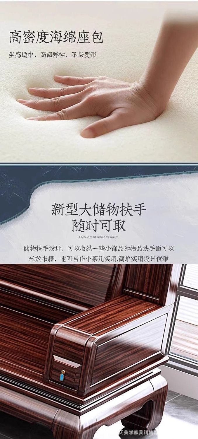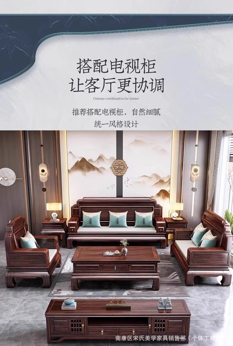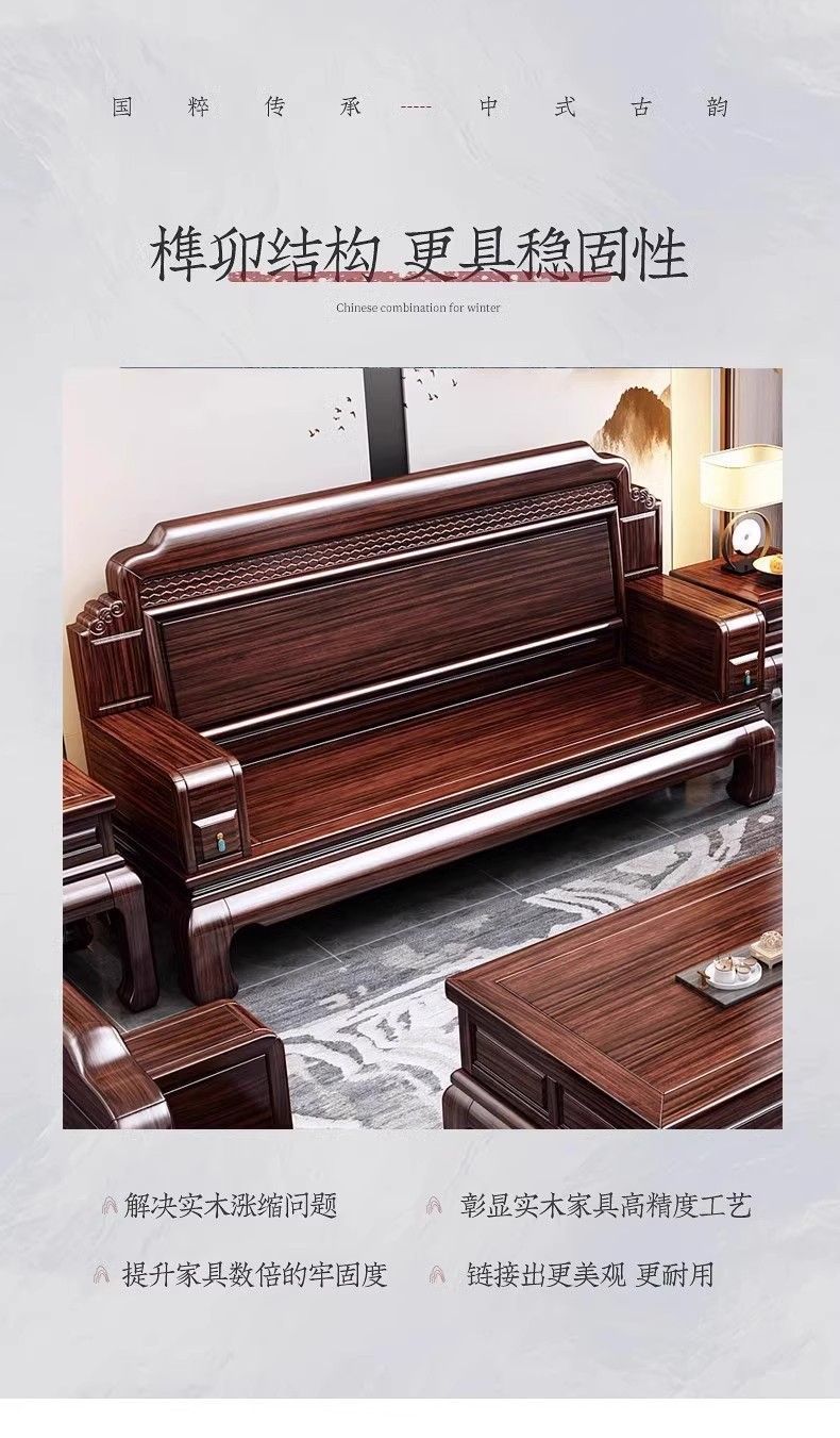 로즈우드 원목 소파 빌라 거실 소파 조합 모닥불 조각 겨울과 여름 이중 용도 송 미적 소파스토어 가기