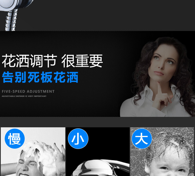 Dawangyu 가압 샤워 헤드, 대형 물 배출구, 5단 조절식 레인 샤워 헤드, 욕실 가정용 범용 샤워 헤드