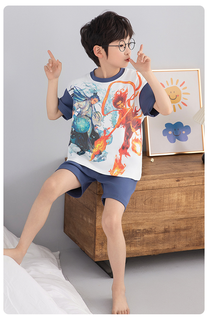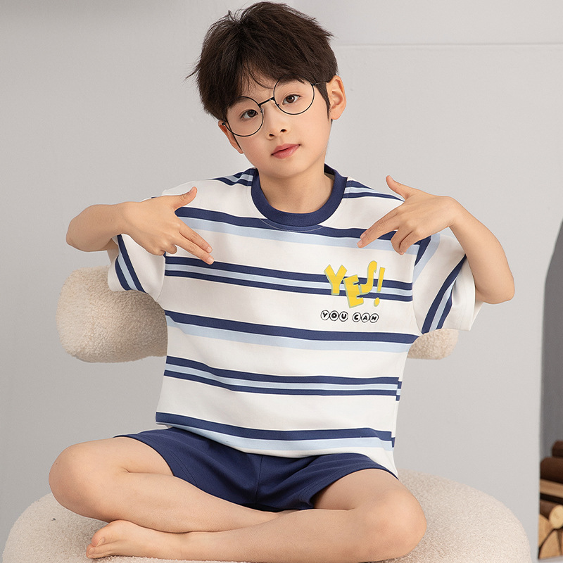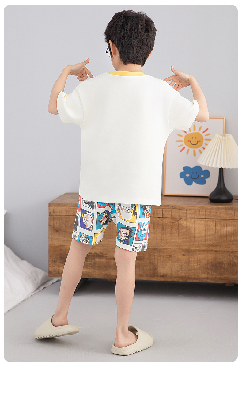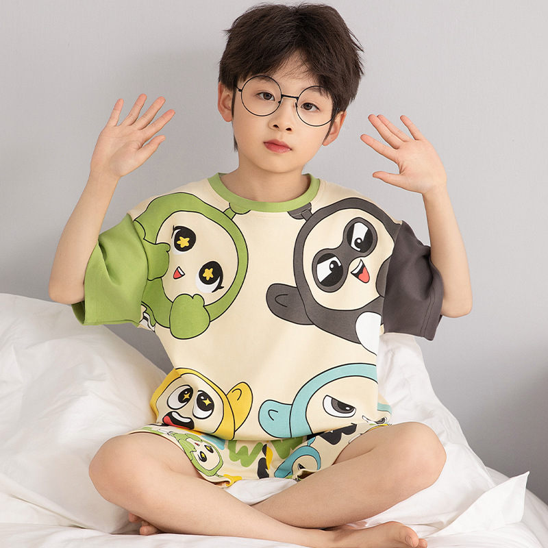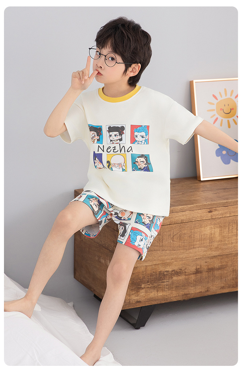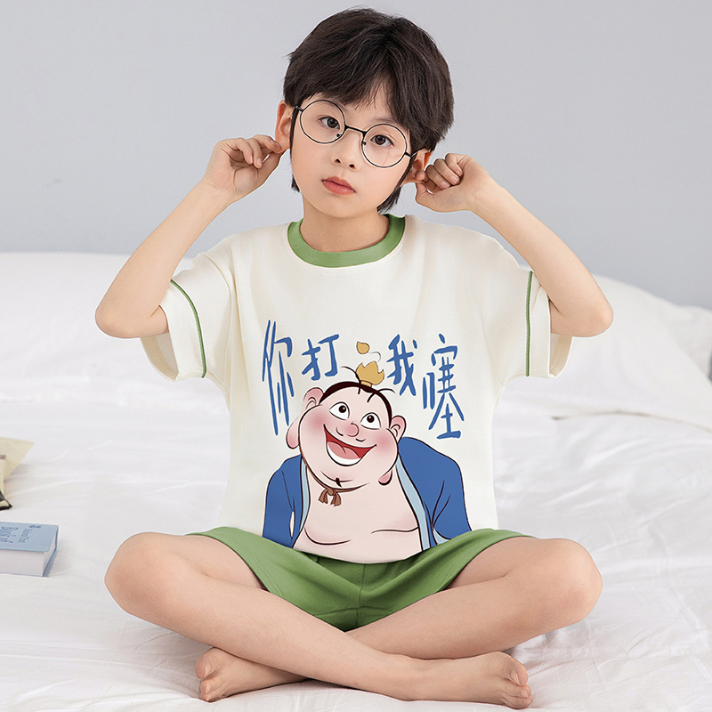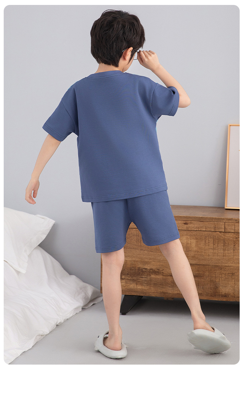 아동 잠옷 소년 여름 반팔 100% 면 얇은 십대 소년 가정 의류 큰 어린이 학생 정장스토어 가기