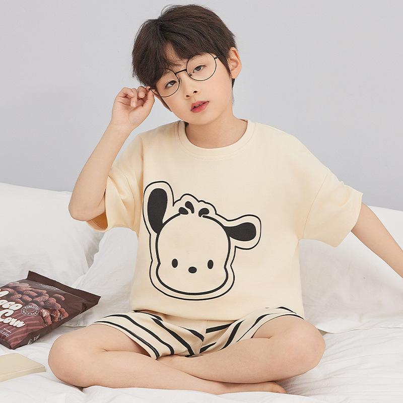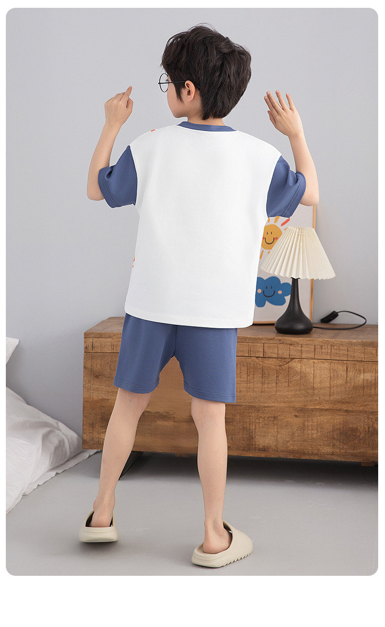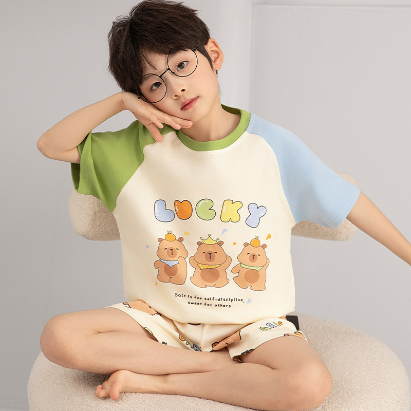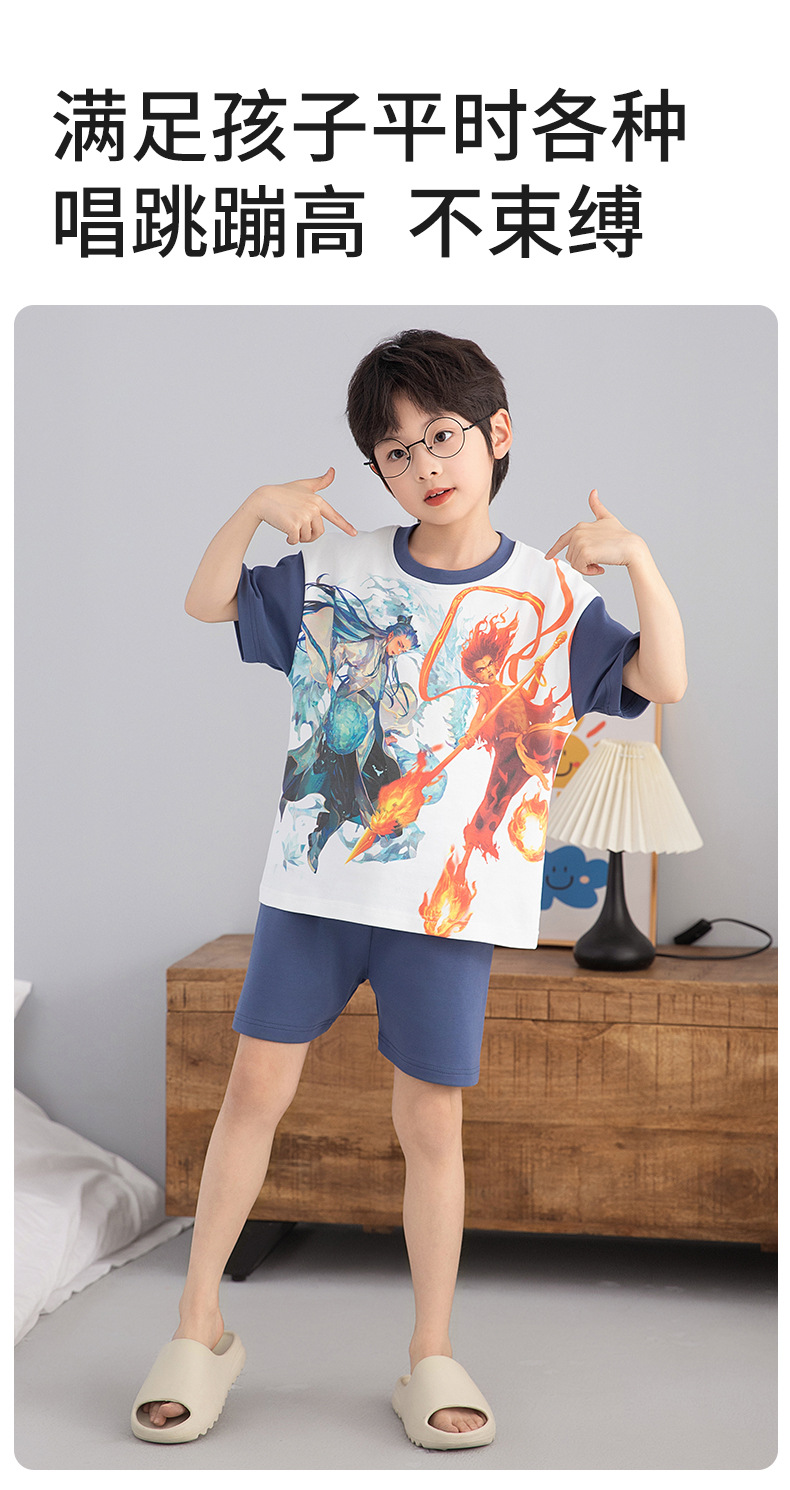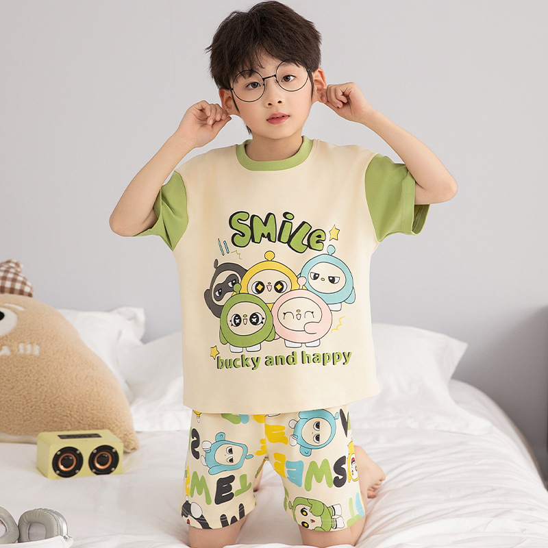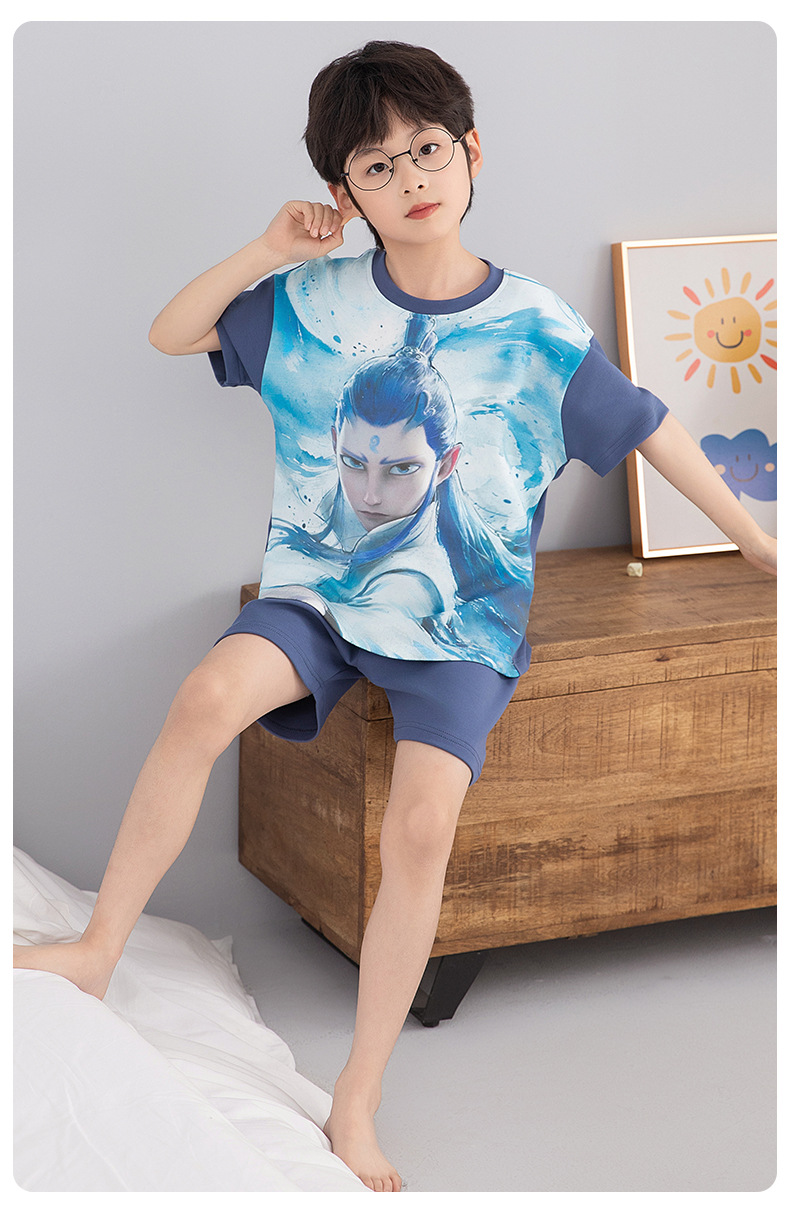 아동 잠옷 소년 여름 반팔 100% 면 얇은 십대 소년 가정 의류 큰 어린이 학생 정장스토어 가기