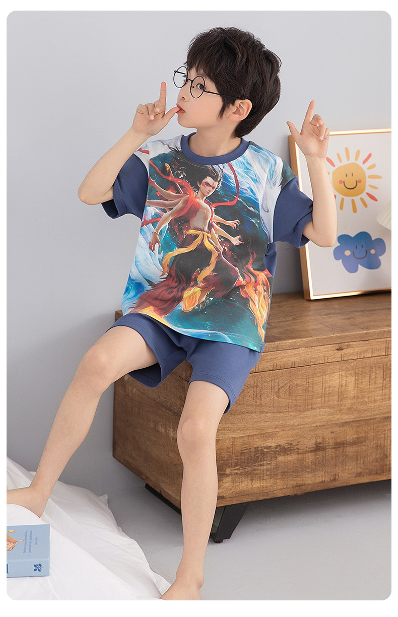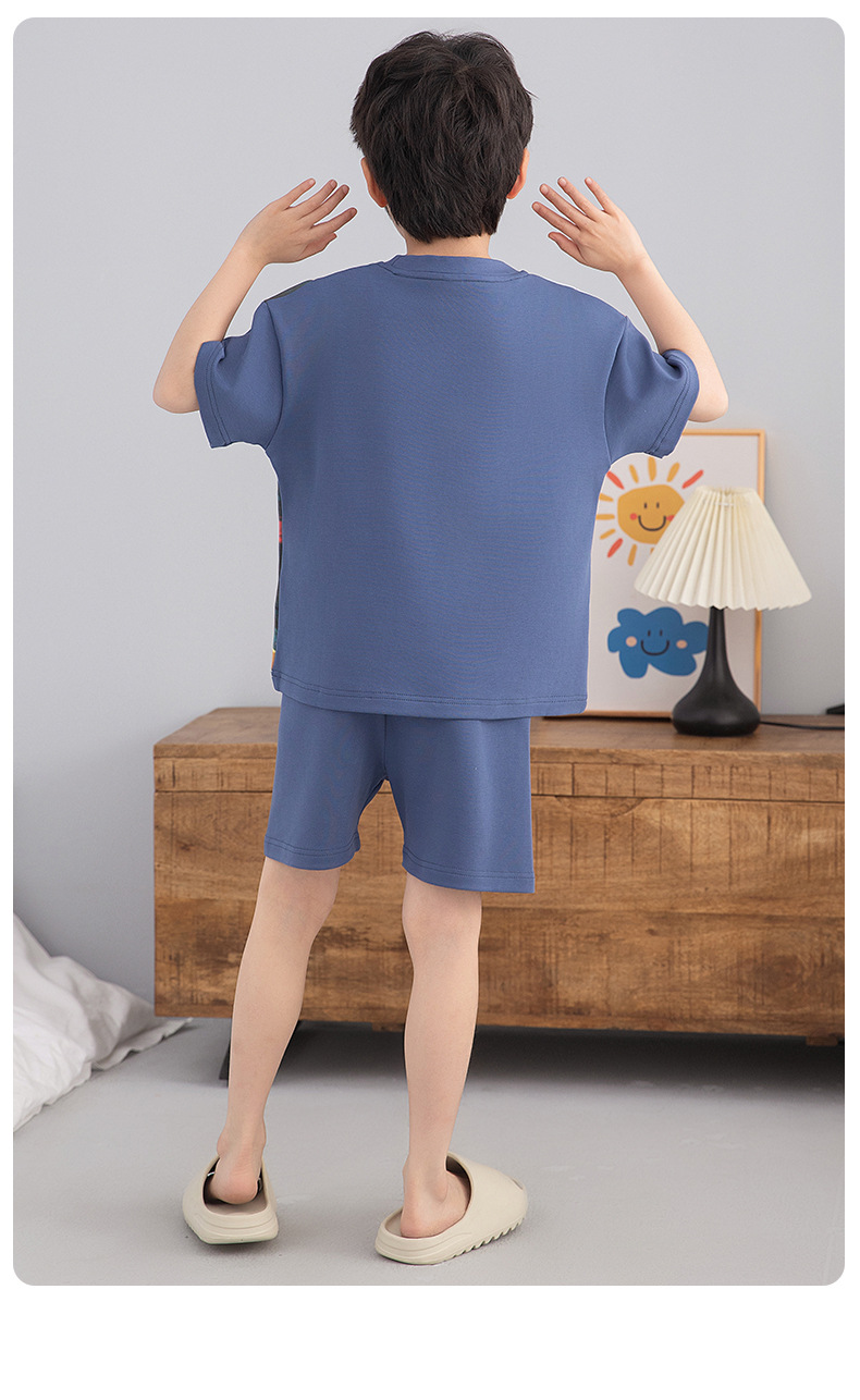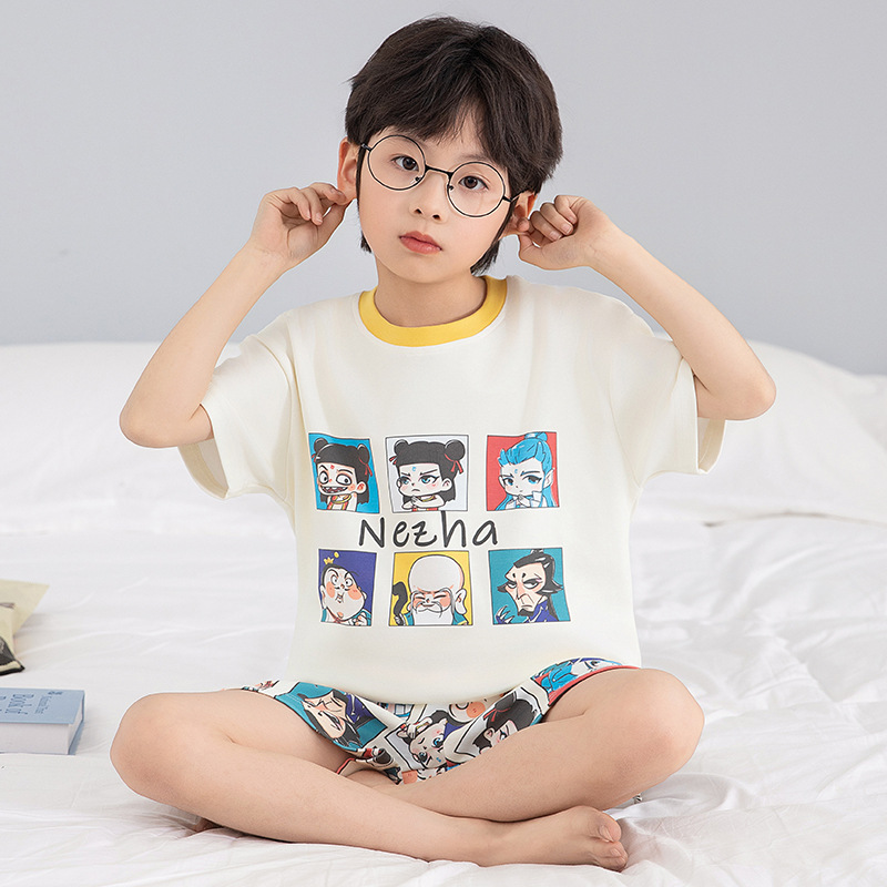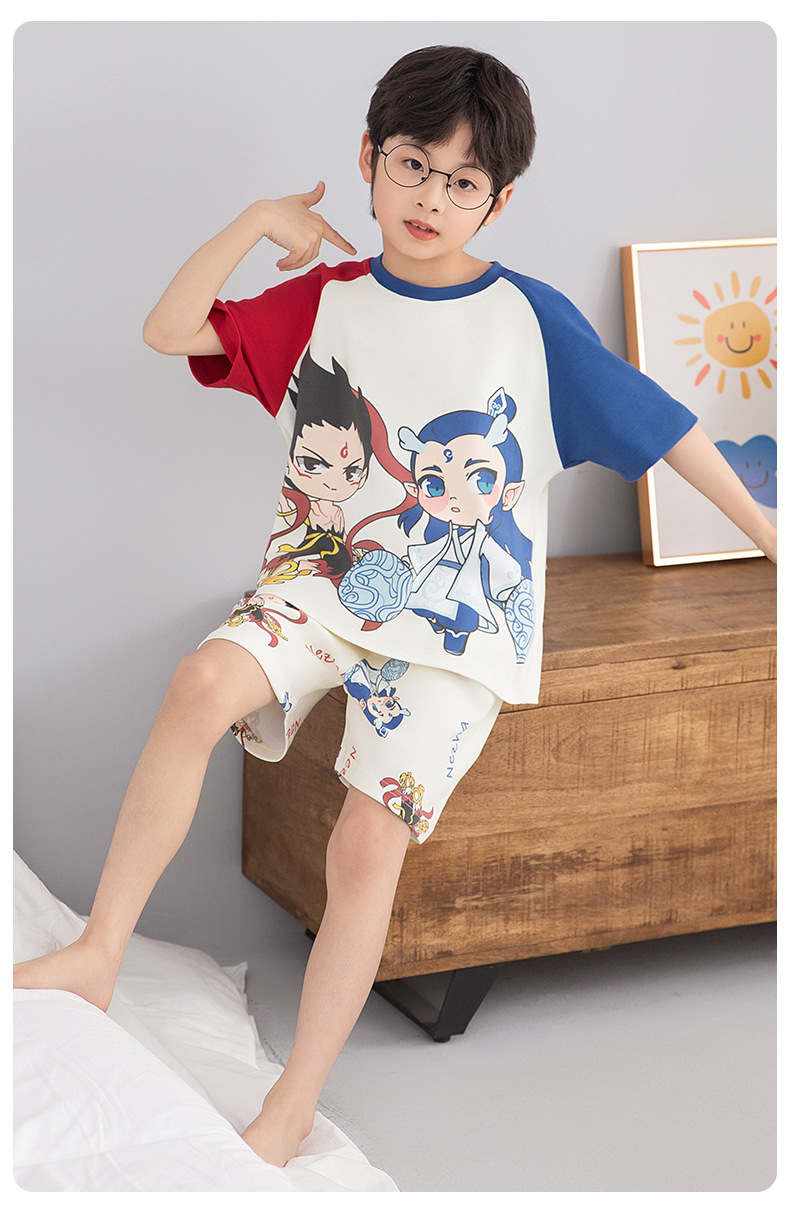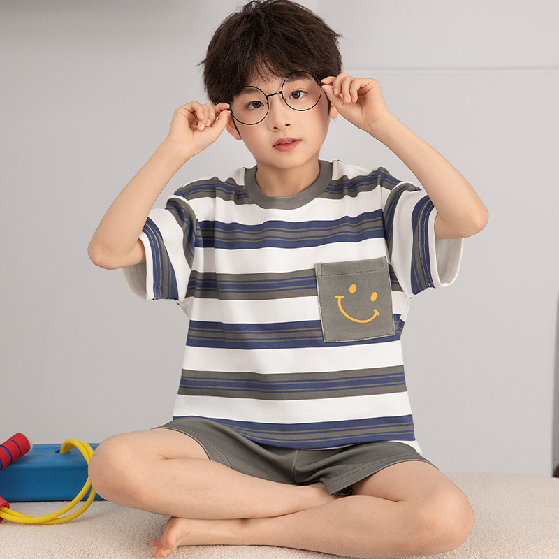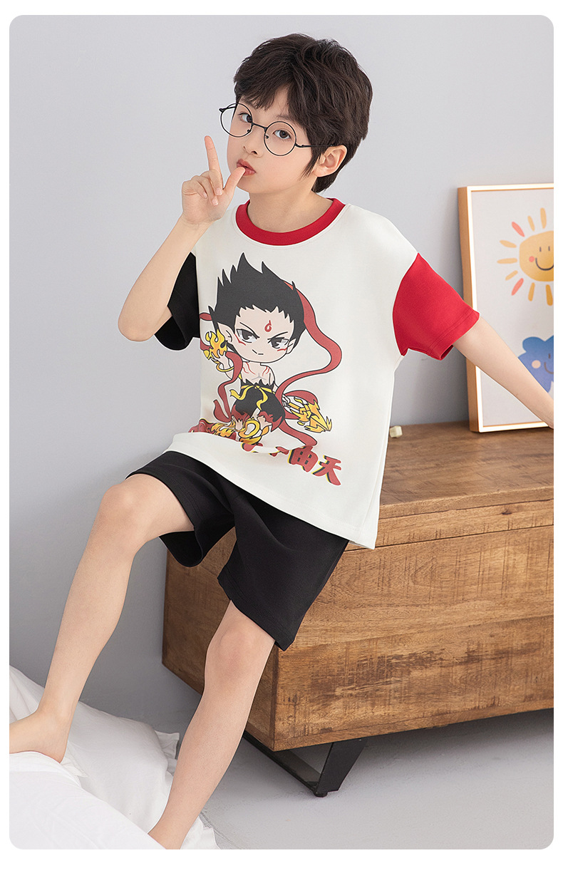아동 잠옷 소년 여름 반팔 100% 면 얇은 십대 소년 가정 의류 큰 어린이 학생 정장스토어 가기