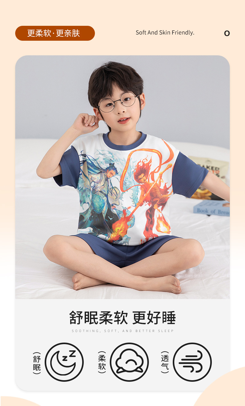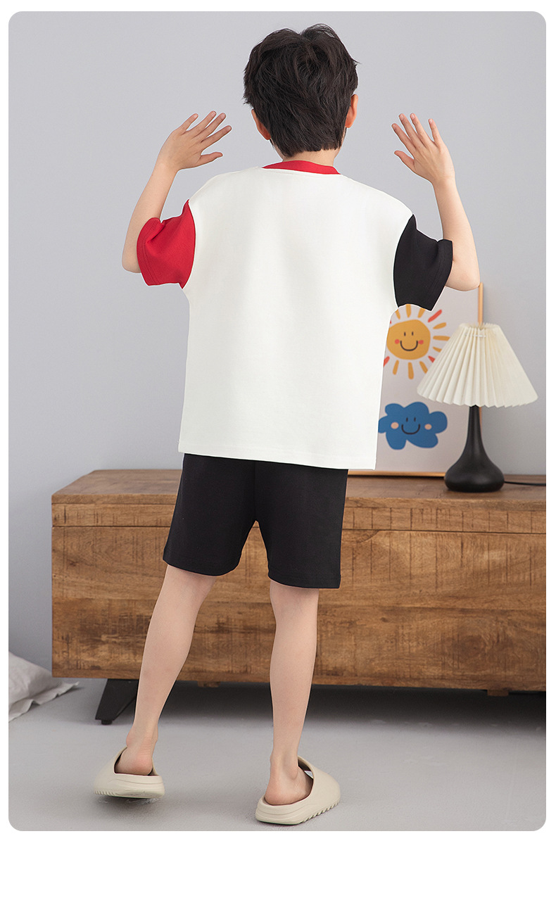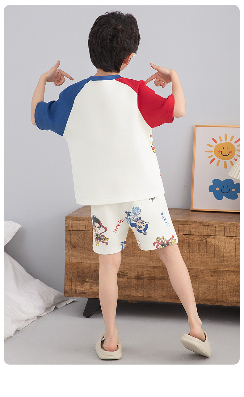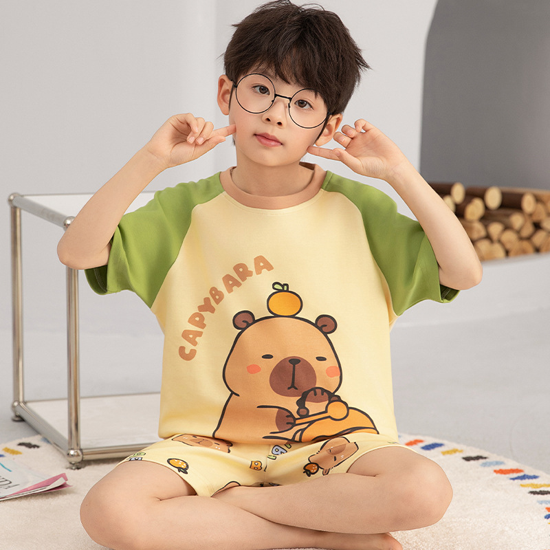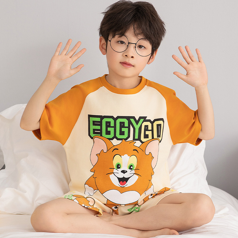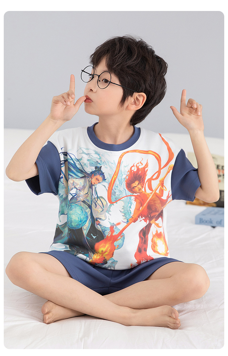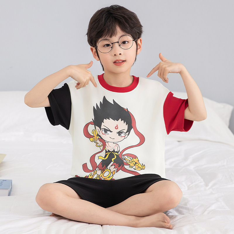 아동 잠옷 소년 여름 반팔 100% 면 얇은 십대 소년 가정 의류 큰 어린이 학생 정장스토어 가기