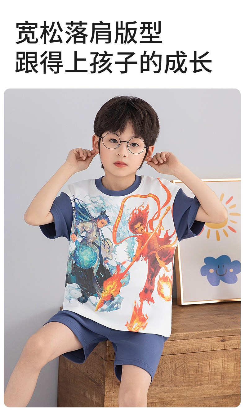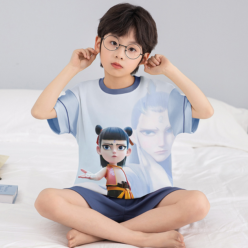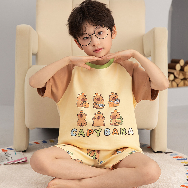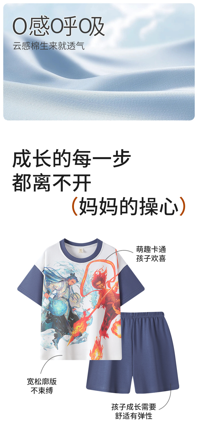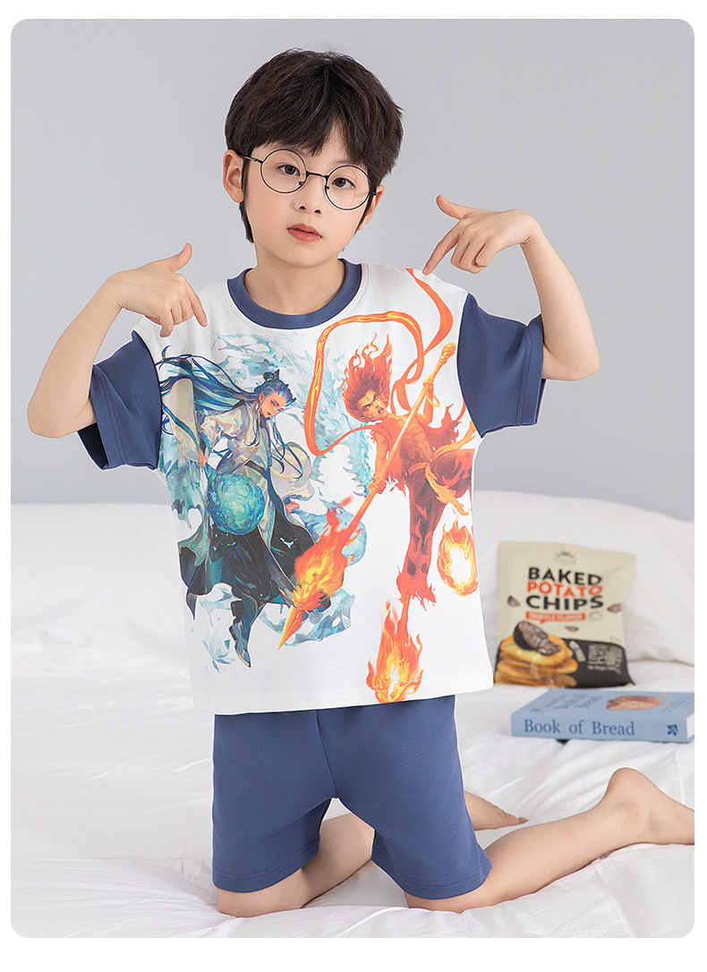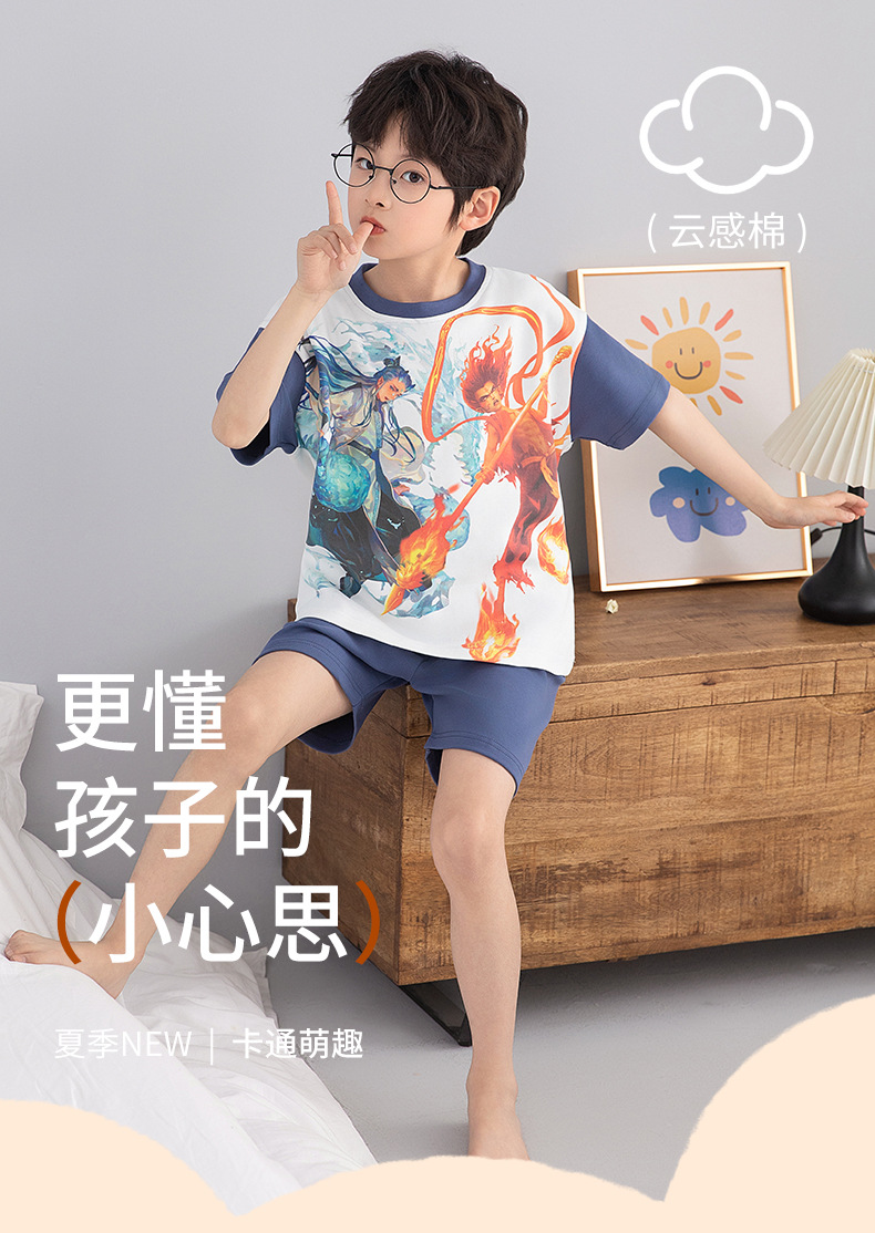아동 잠옷 소년 여름 반팔 100% 면 얇은 십대 소년 가정 의류 큰 어린이 학생 정장스토어 가기