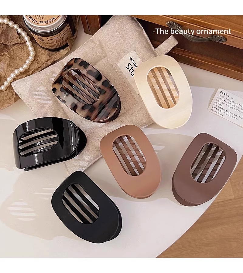 크로스보더 신형 플랫 타원형 머리핀, 뒷머리용 머리핀, 곡선형 디자인, 우아한 샤크핀 헤어 액세서리