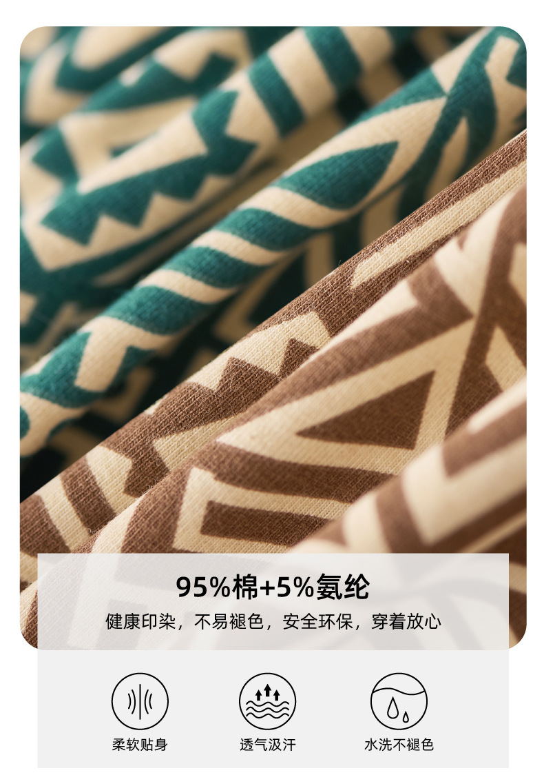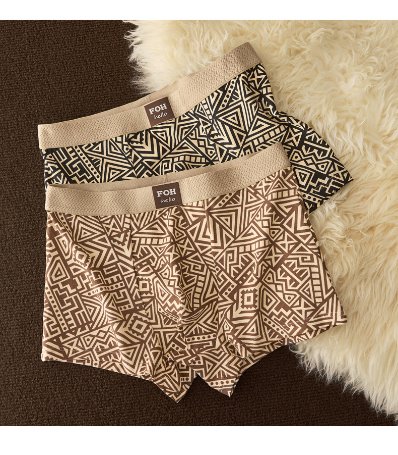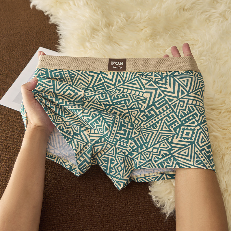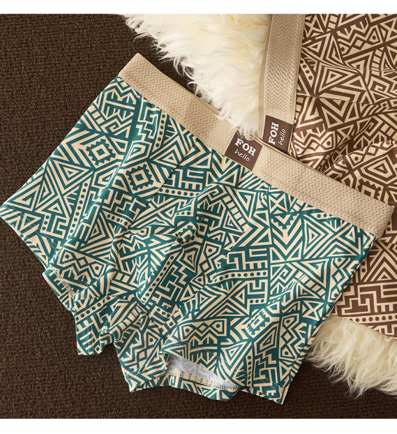 아메리칸 레트로 남성 속옷, 맞춤형 트렌디 프린트 미드 웨이스트 복서 팬티, 면 편안하고 통기성이 뛰어난 복서 반바지