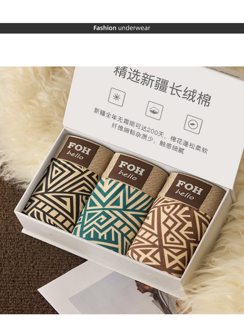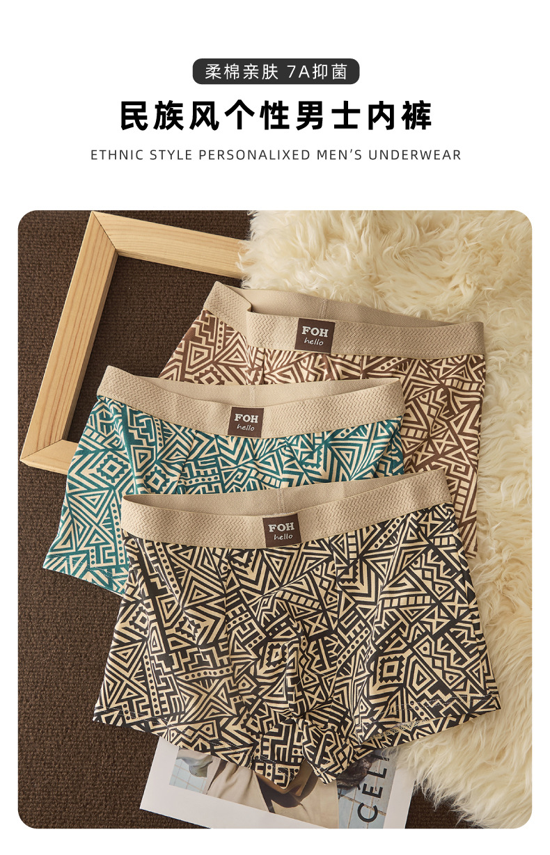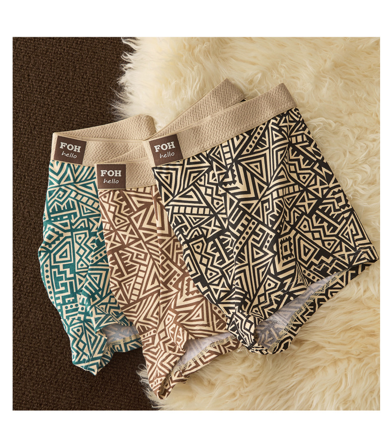 아메리칸 레트로 남성 속옷, 맞춤형 트렌디 프린트 미드 웨이스트 복서 팬티, 면 편안하고 통기성이 뛰어난 복서 반바지스토어 가기