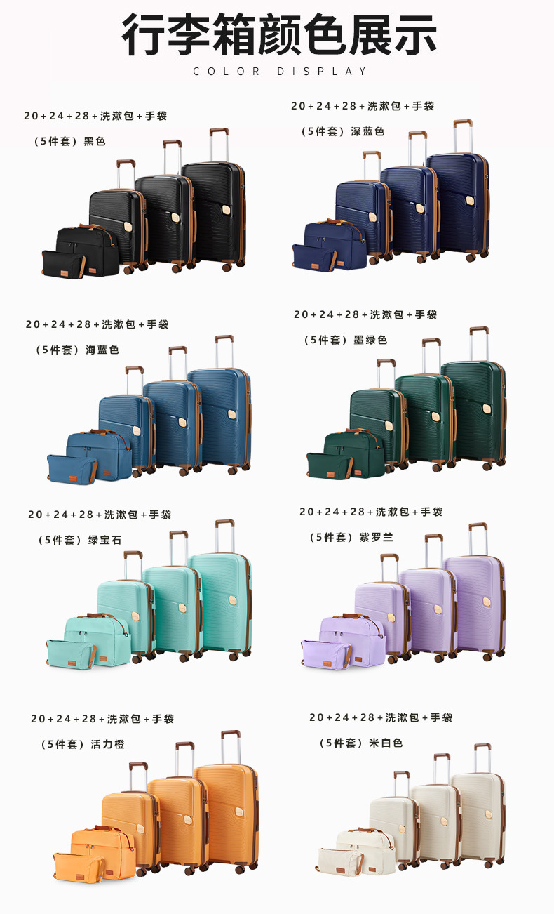 국경 간 도매 PP 트롤리 케이스 5피스 TSA 비밀번호 여행용 캐리어 자동 범용 휠 가방 공장