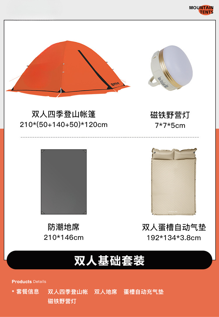 • 마운틴 트래블 2인 하룻밤 세트 4 (두꺼운 3.8cm 에그네스트 자동 팽창 매트리스 포함)