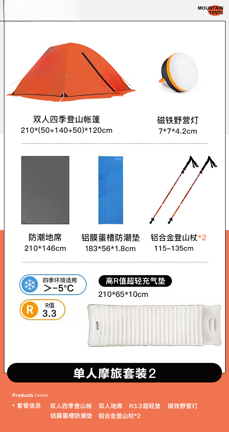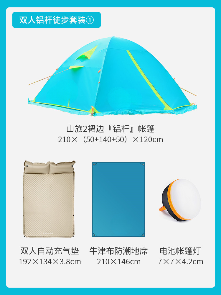 • 2인용 산악여행 세트 1 (두꺼운 3.8cm 에그네스트 자동 팽창식 매트리스 포함)