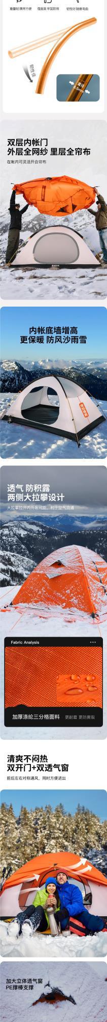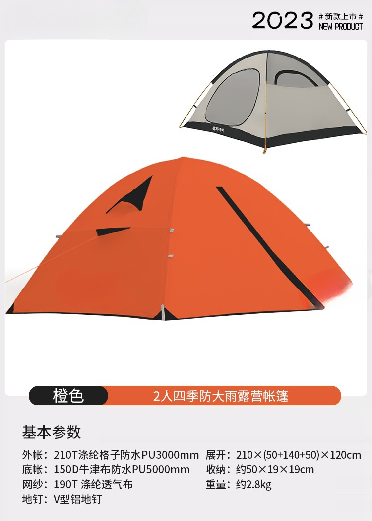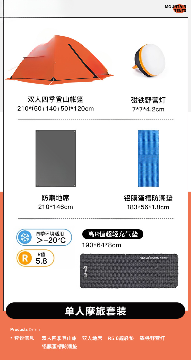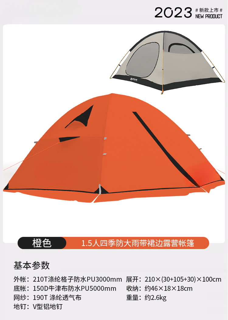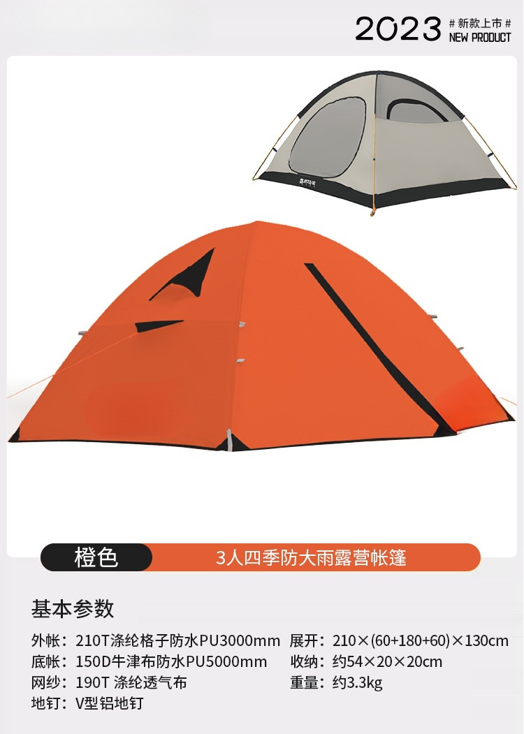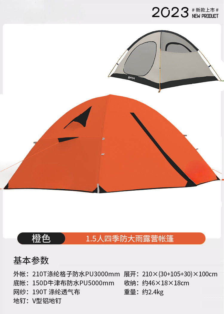 야외 캠핑용 여행 텐트, 겨울철 따뜻하고 두꺼운 야외 사계절 캠핑 장비, 1인용 완전 세트, 확장 오렌지스토어 가기