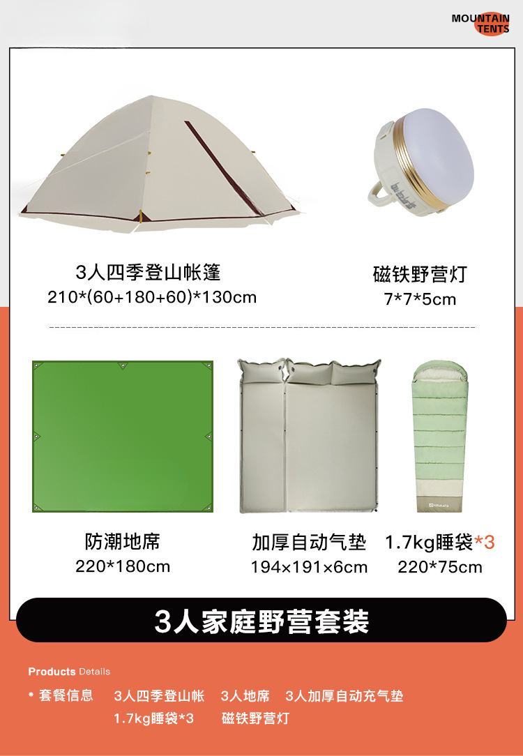 • 마운틴 트래블 3인 세트 2 (두꺼운 6cm 자동 공기주입식 매트 포함)
