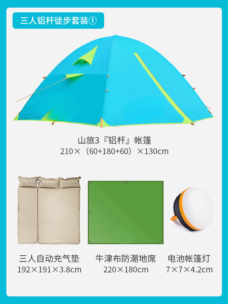 • 마운틴 트래블 3인 오버나이트 세트 3 (두꺼운 6cm 자동 공기주입식 매트리스 포함)
