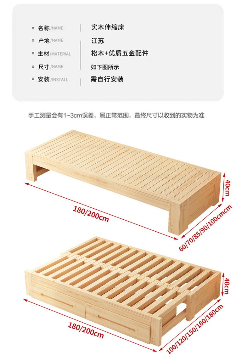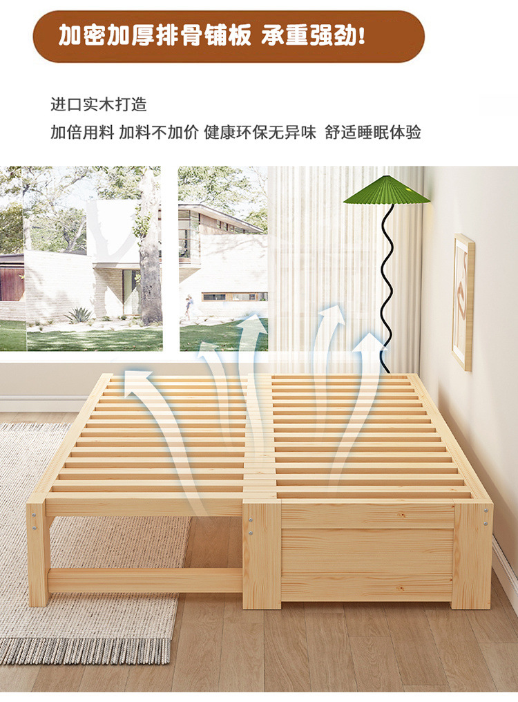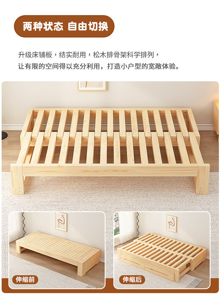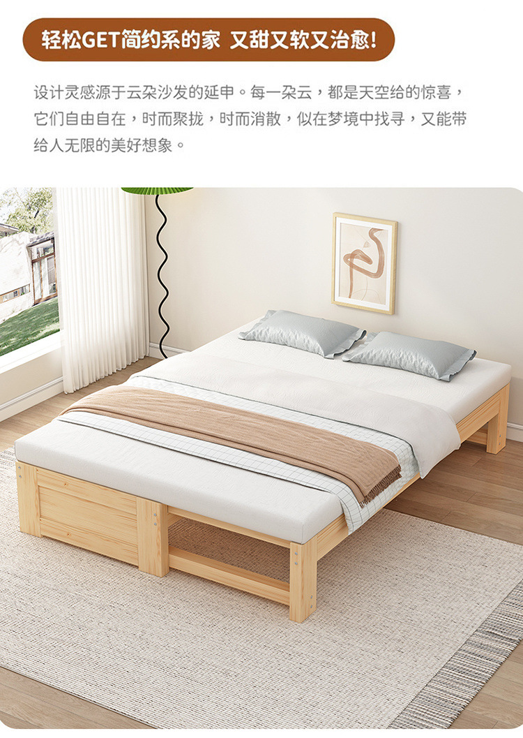 단단한 나무 접이식 소파 침대, 다기능 접이식 침대, 간단한 일체형 이중 목적 접이식 소형 프레임 도매스토어 가기