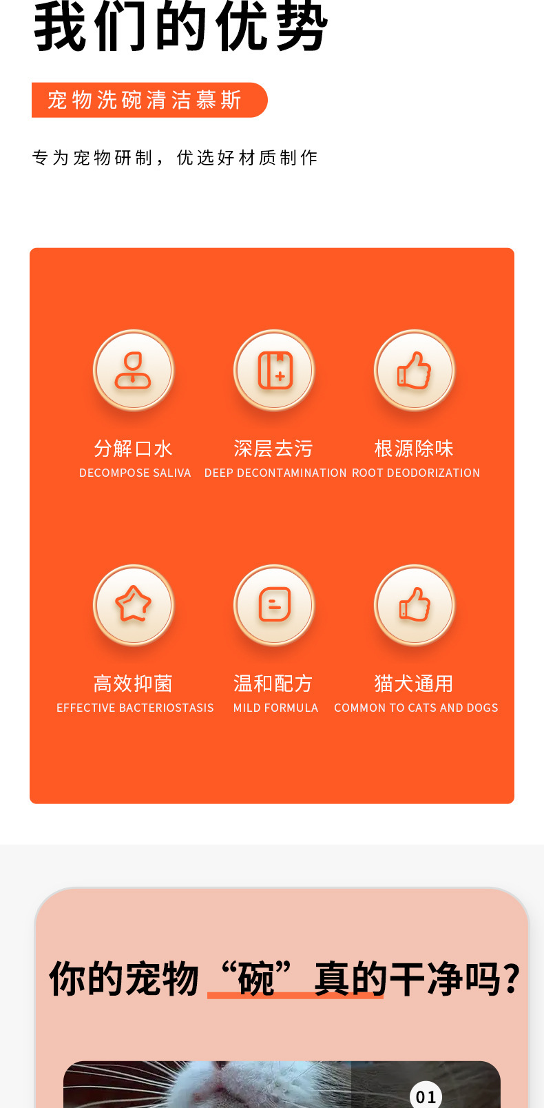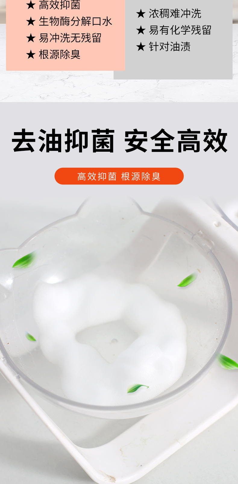 공장 맞춤형 애완동물 식기 세척 무스 고양이 및 개 식기 및 식기 그릇 특수 식기 세척액 애완동물 청소 용품 OME스토어 가기