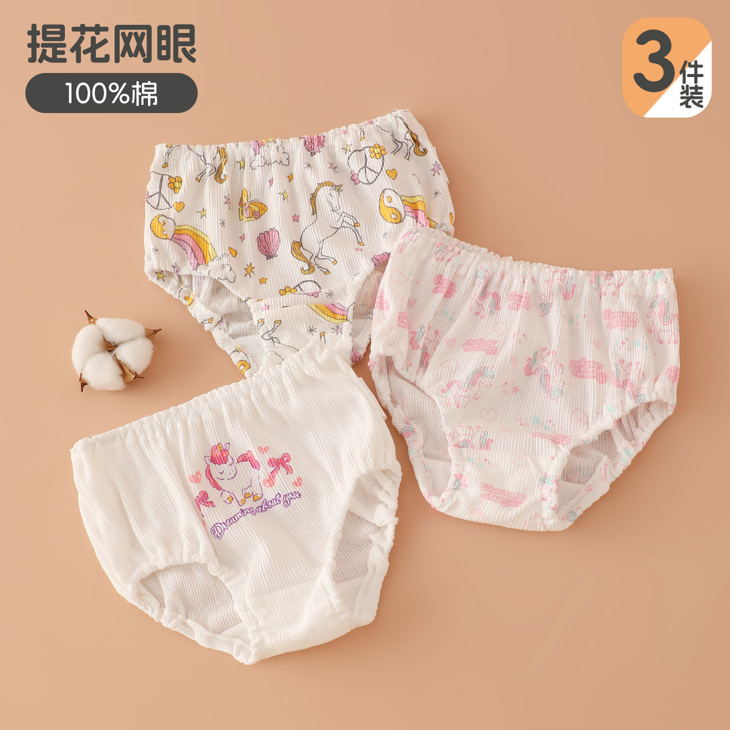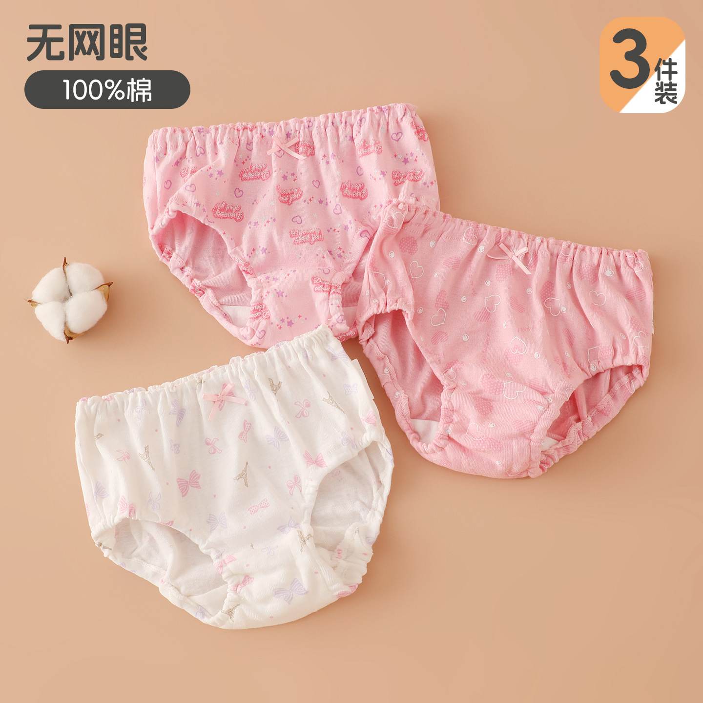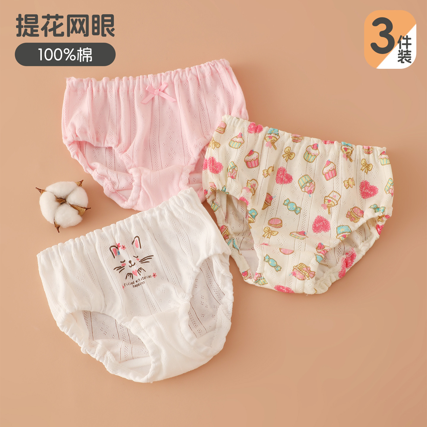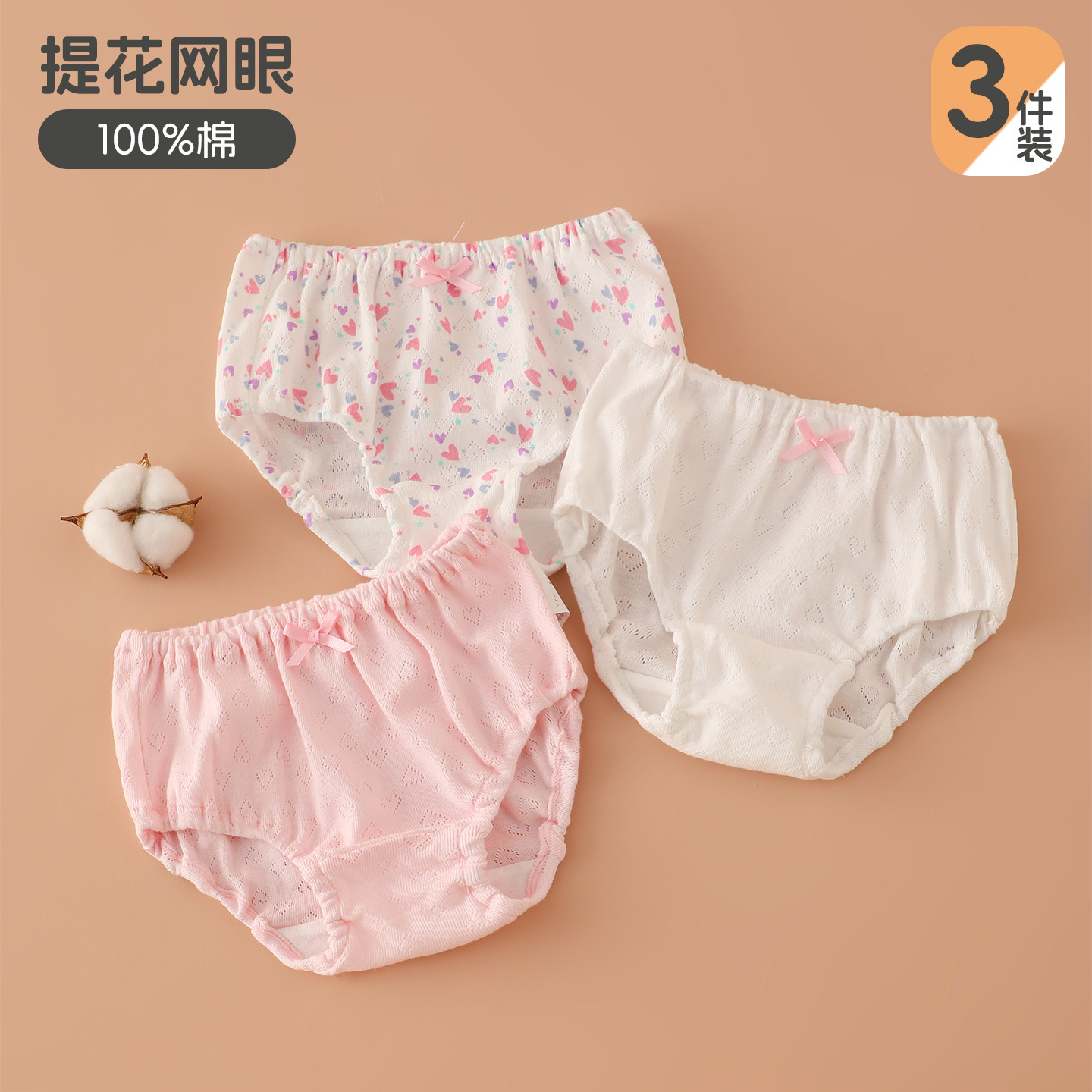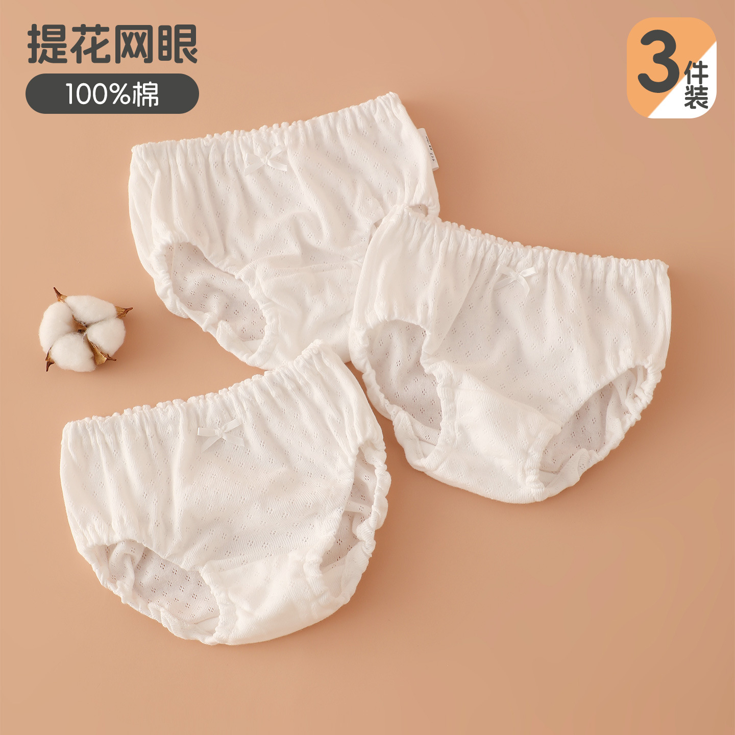 3 새로운 어린이 흰색 면화 팬티 메쉬 통기성 소녀 속옷 무형광 아기 얇은 반바지스토어 가기