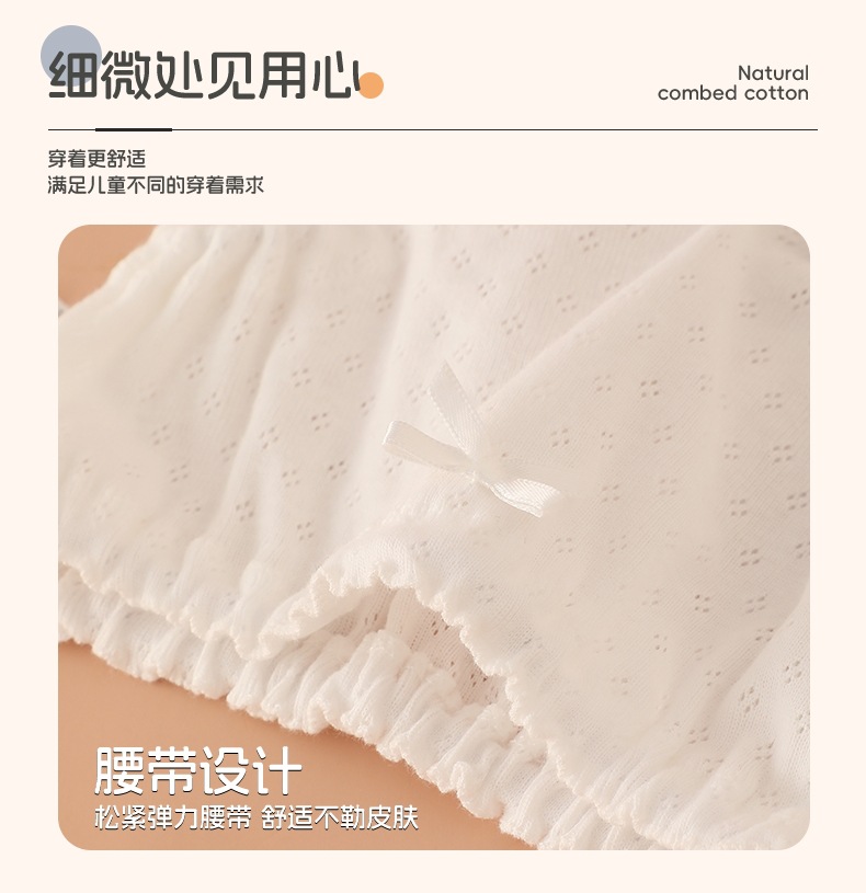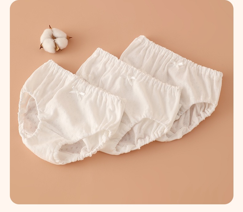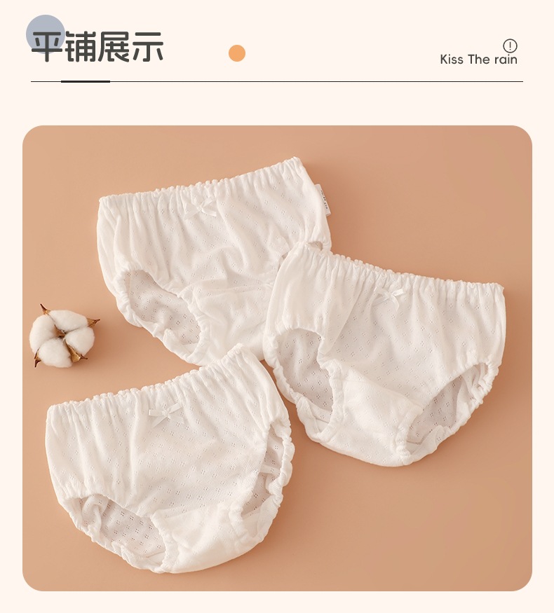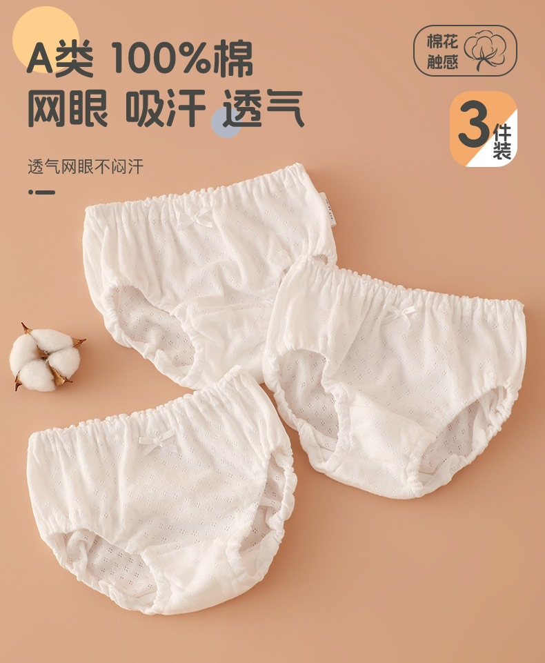 3 새로운 어린이 흰색 면화 팬티 메쉬 통기성 소녀 속옷 무형광 아기 얇은 반바지