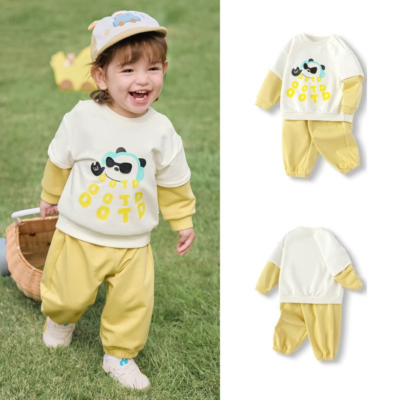 品牌折扣婴儿套装宝宝长裤儿童童装两件套2025春秋装男女童卫衣潮