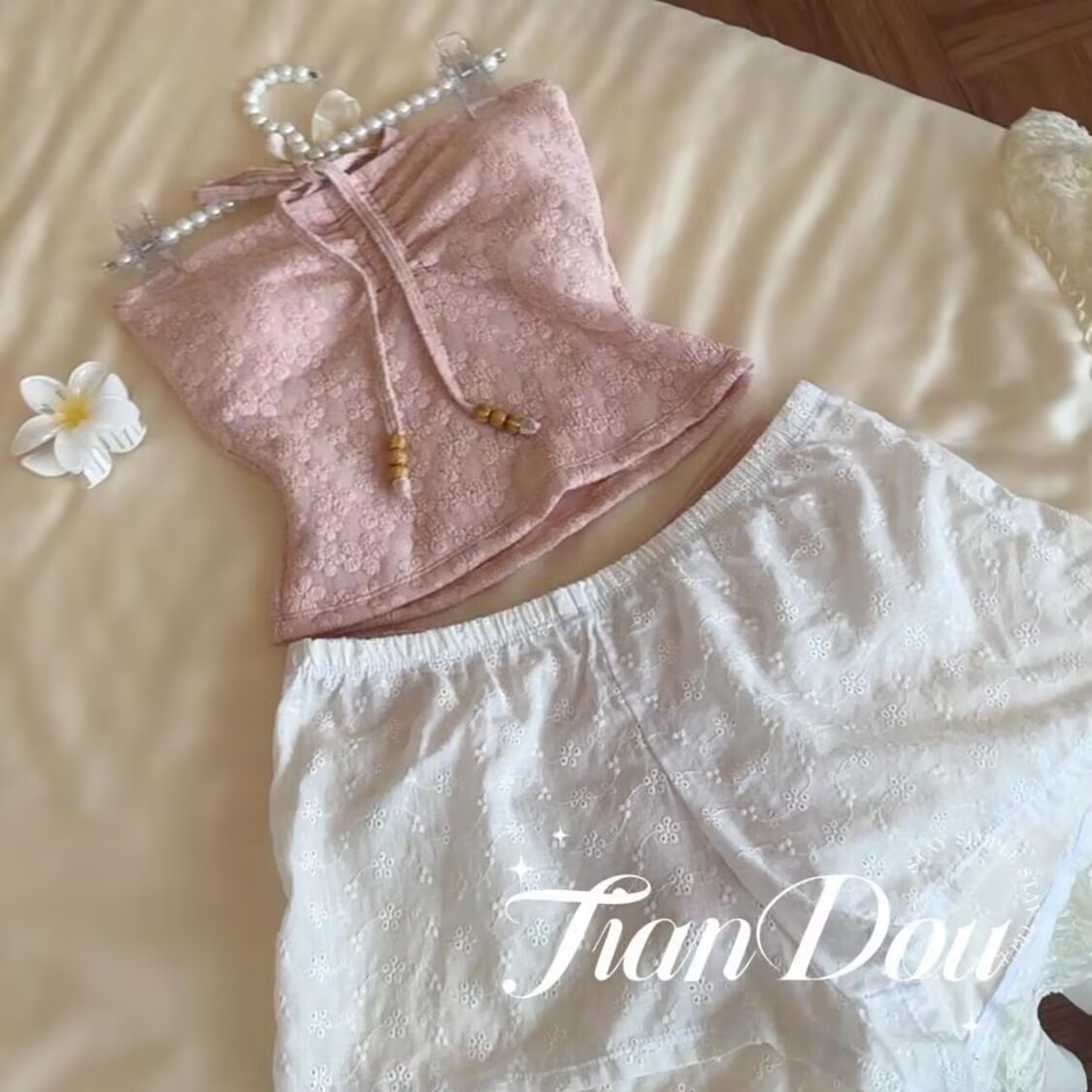 [발레스타일] 걸리쉬한 휴가룩, 귀엽고 달콤한 튜브탑 수영복 비키니 쓰리피스 수영복 퓨어 러스티 스타일 여름스토어 가기