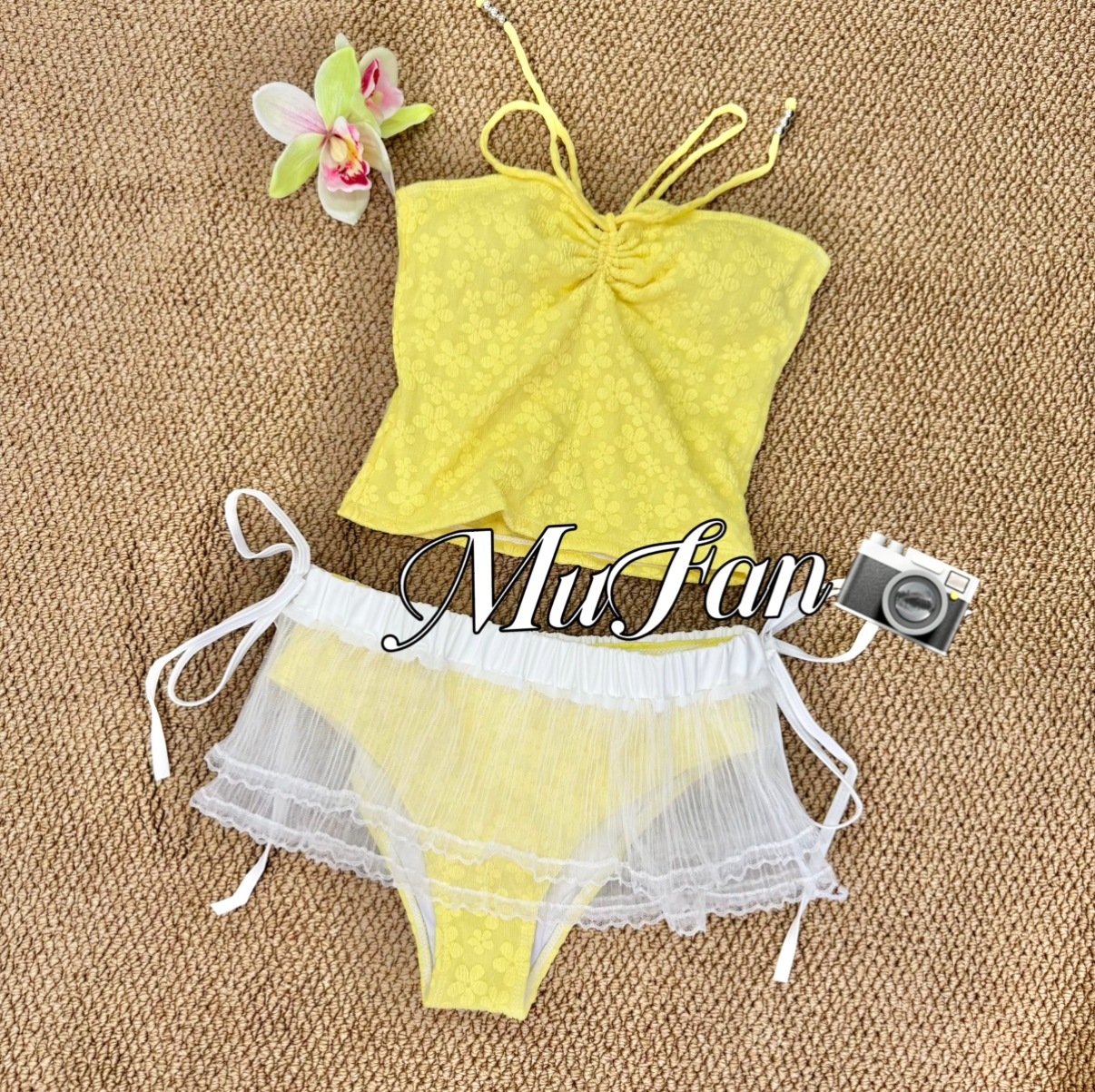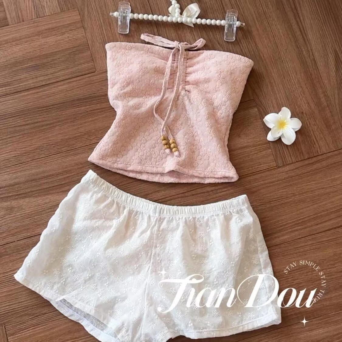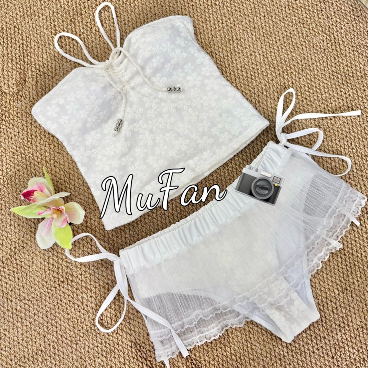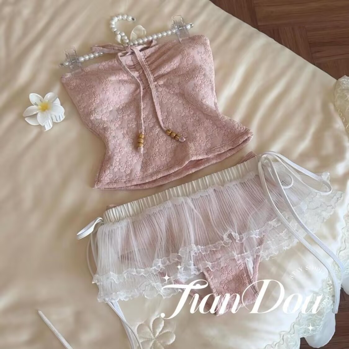 [발레스타일] 걸리쉬한 휴가룩, 귀엽고 달콤한 튜브탑 수영복 비키니 쓰리피스 수영복 퓨어 러스티 스타일 여름