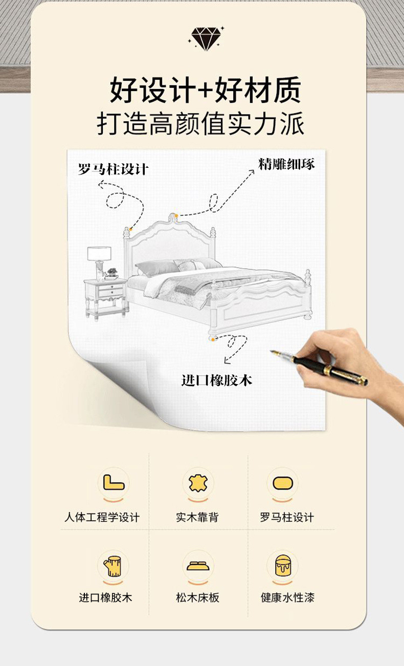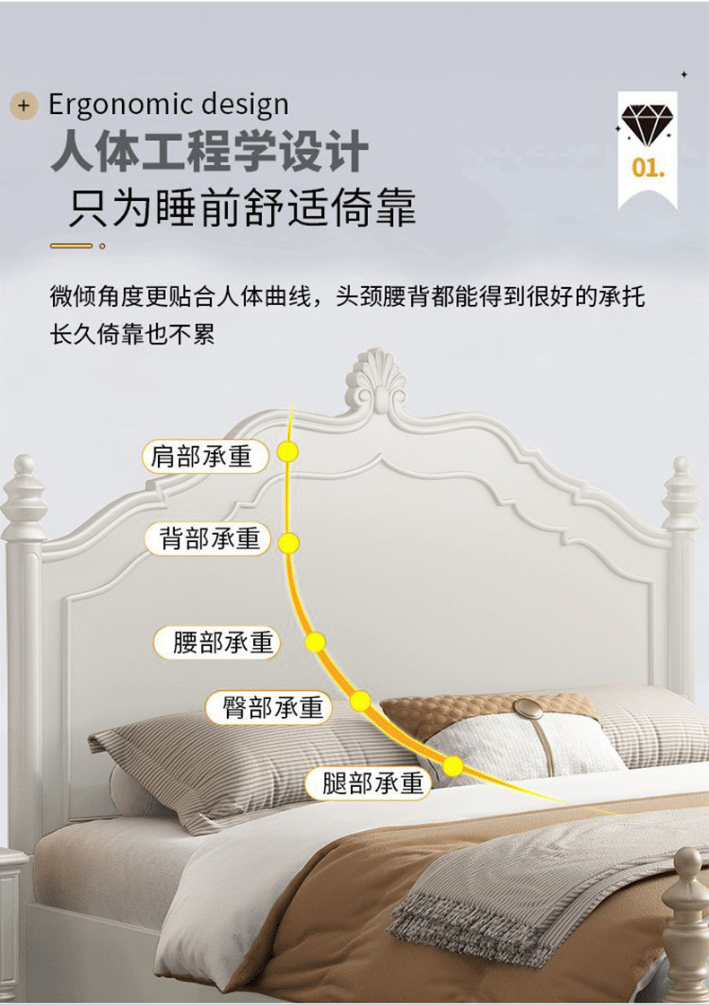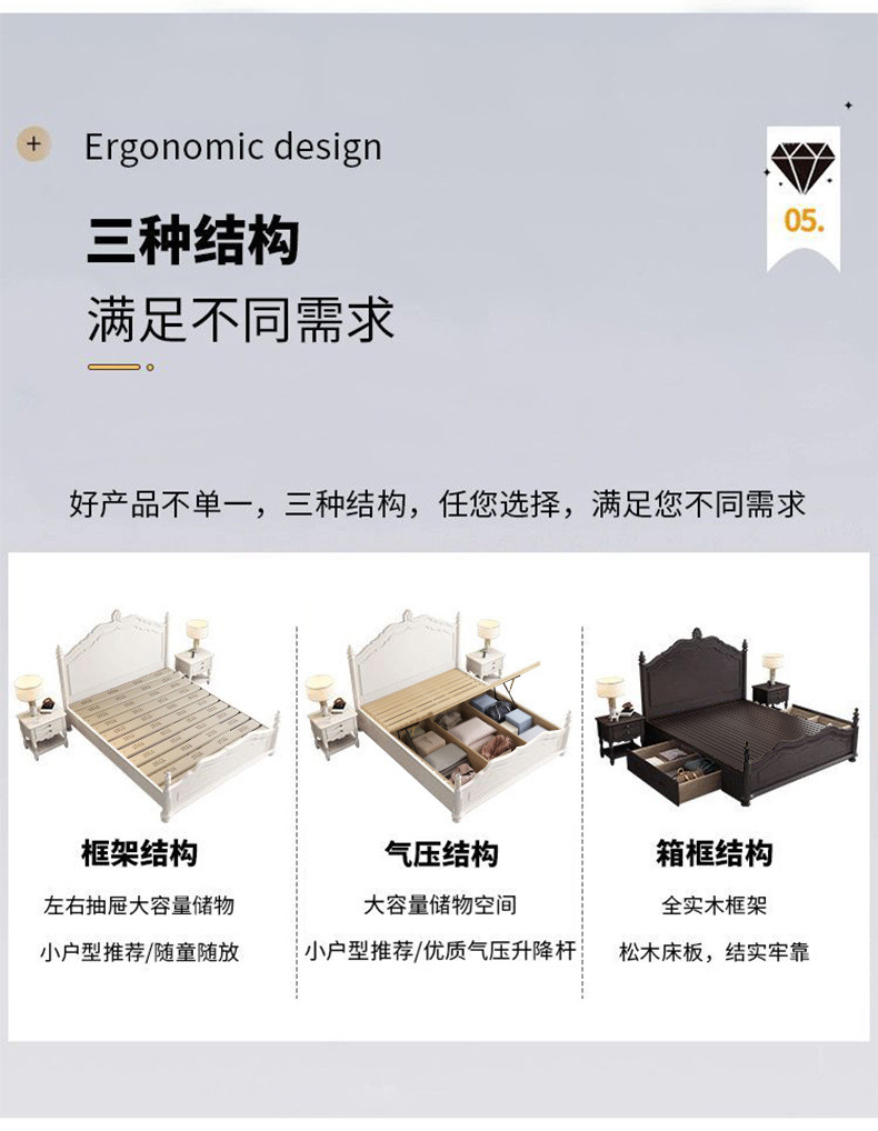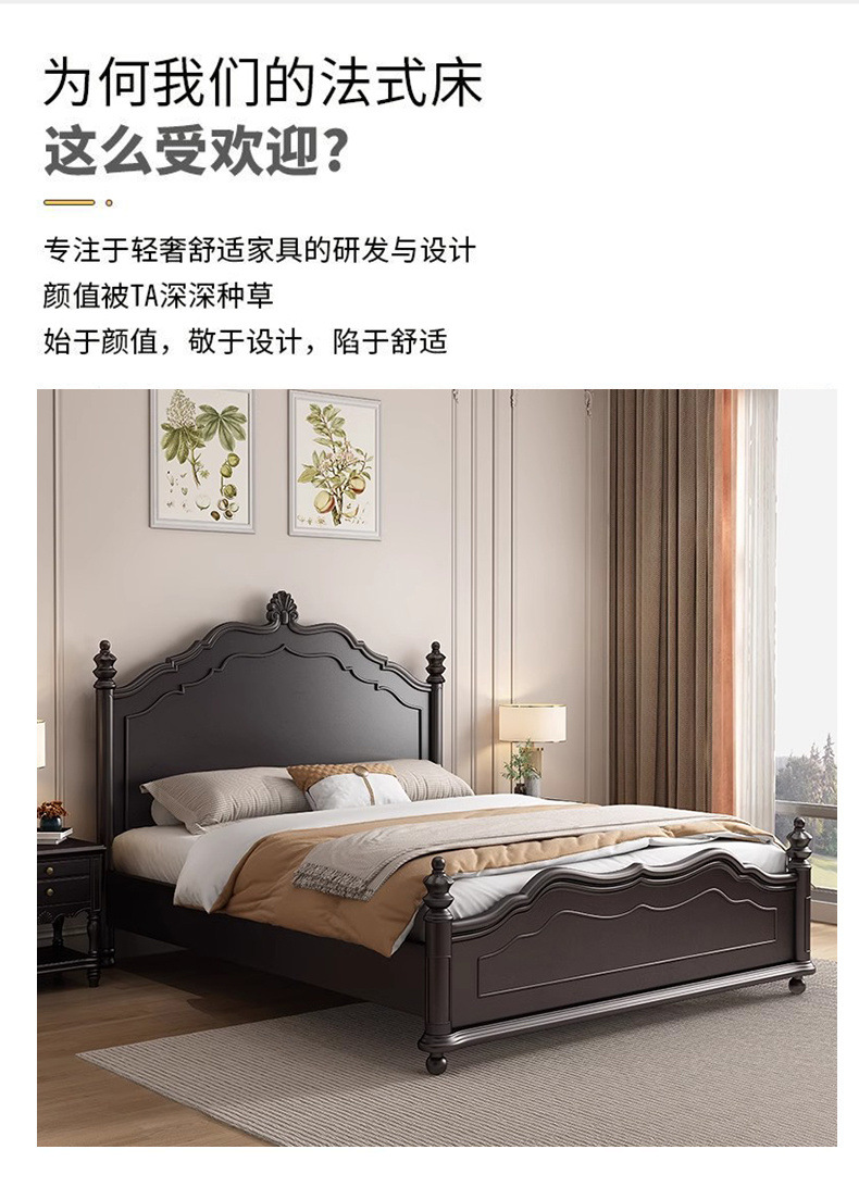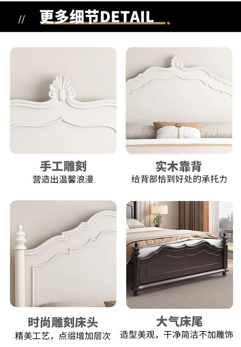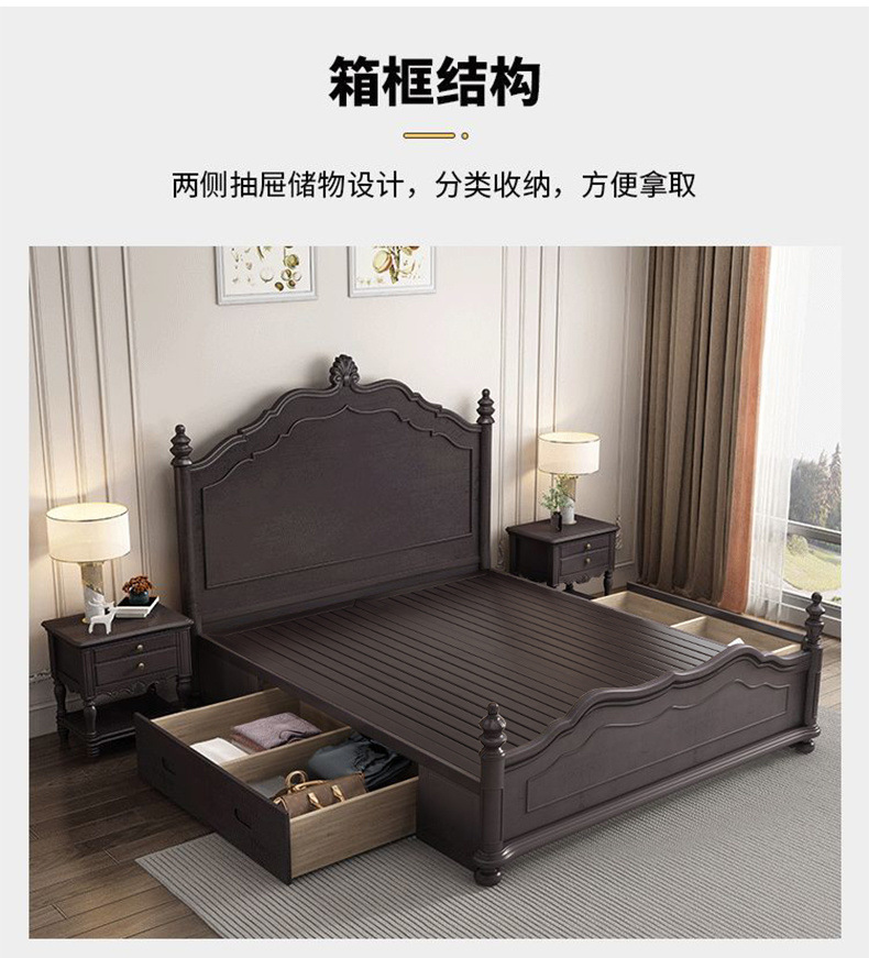 미국산 원목 침대 1.8m 마스터 침실 더블 침대 프렌치 레트로 1.5m 웨딩 침대 모던 심플 하이박스 수납 대형 침대스토어 가기