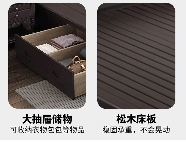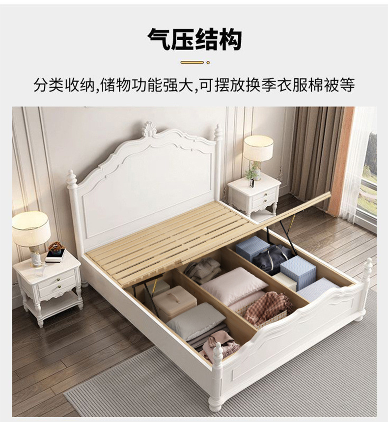 미국산 원목 침대 1.8m 마스터 침실 더블 침대 프렌치 레트로 1.5m 웨딩 침대 모던 심플 하이박스 수납 대형 침대