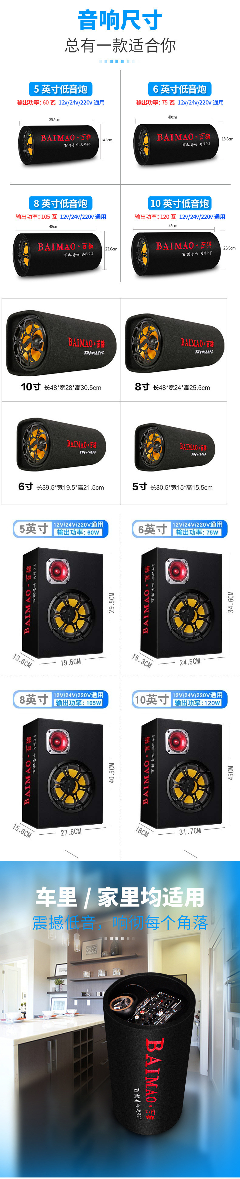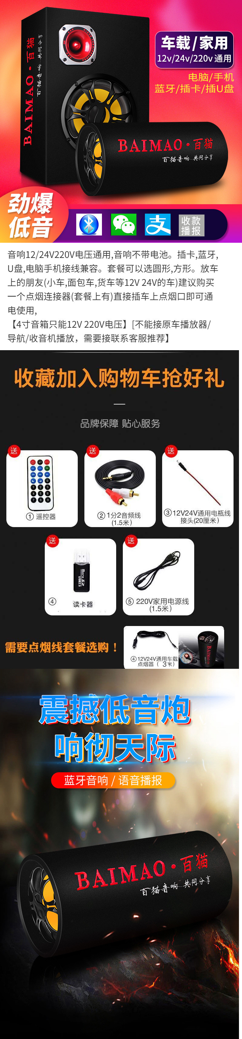 자동차 서브 우퍼 12v24v 중저음 자동차 수정 고출력 특수 스피커 무선 블루투스 오디오 도매스토어 가기