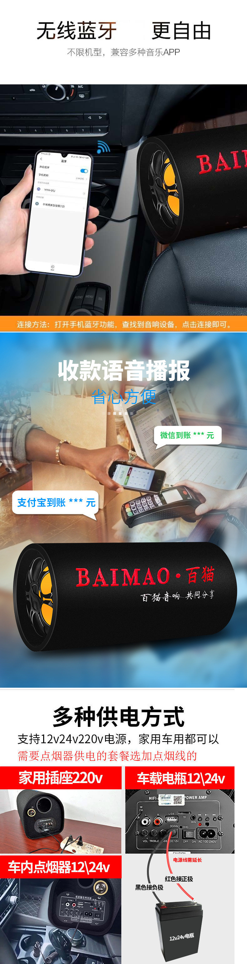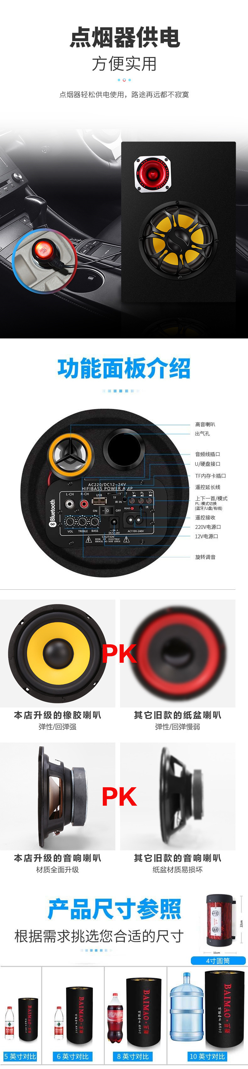 자동차 서브 우퍼 12v24v 중저음 자동차 수정 고출력 특수 스피커 무선 블루투스 오디오 도매