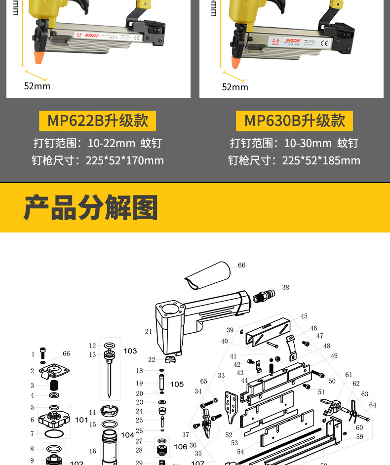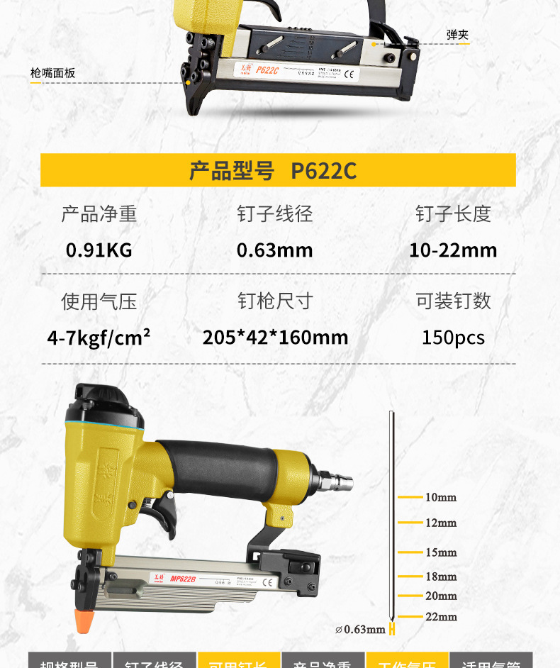 Meite 공압 모기 네일 건 P622 헤드리스 네일 630C 에어 네일 건 P616 네일 건 목공 도구 스팟 직접 판매스토어 가기