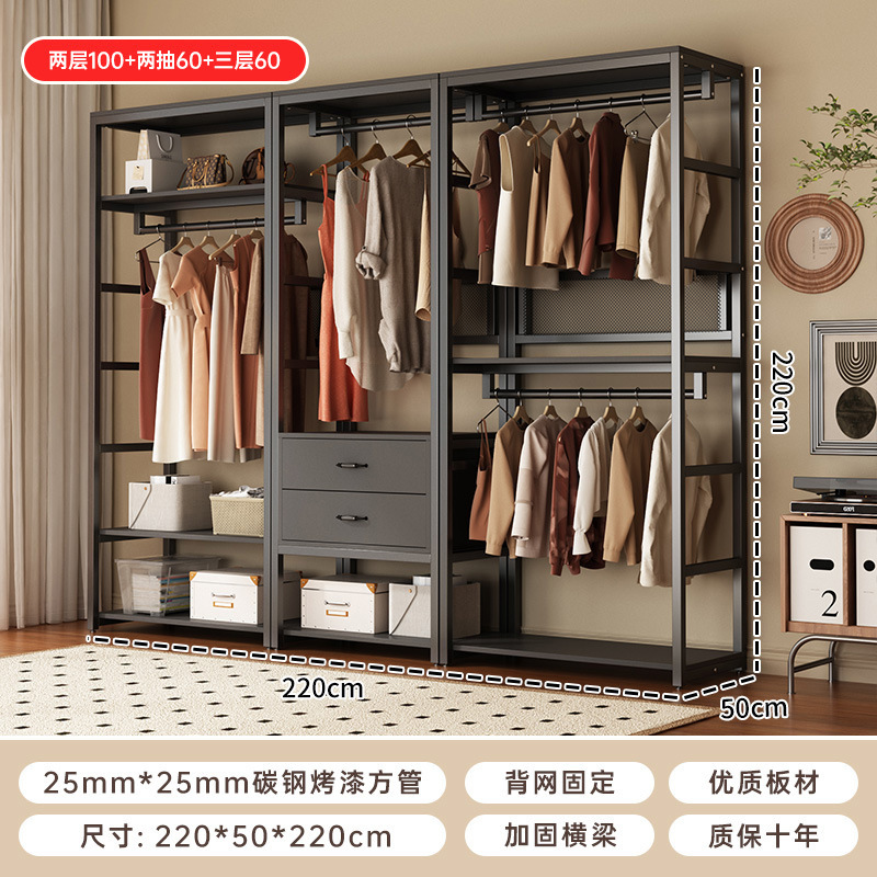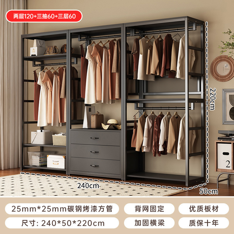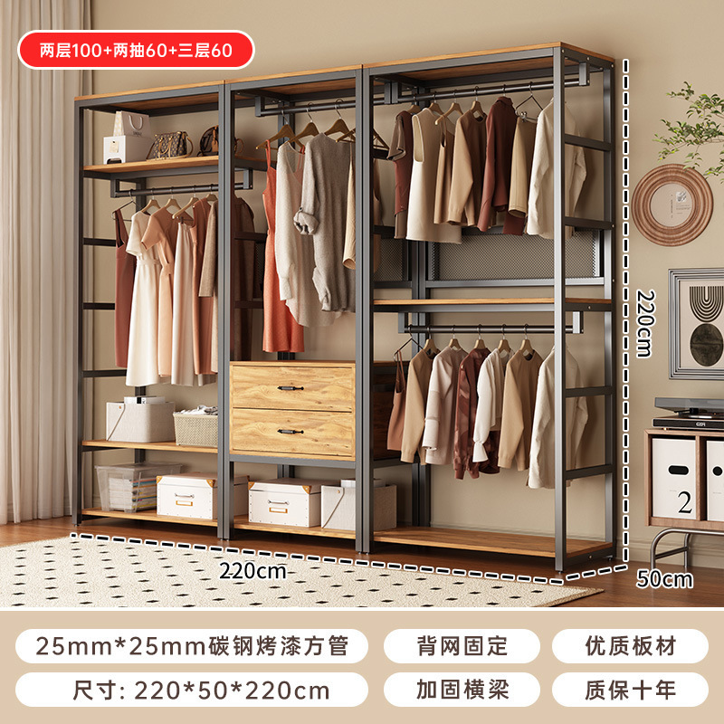 강철 및 목재 옷장, 옷장, 옷걸이, 침실, 다기능 바닥 스탠딩 가정용 옷장, 서랍이 있는 옷장스토어 가기
