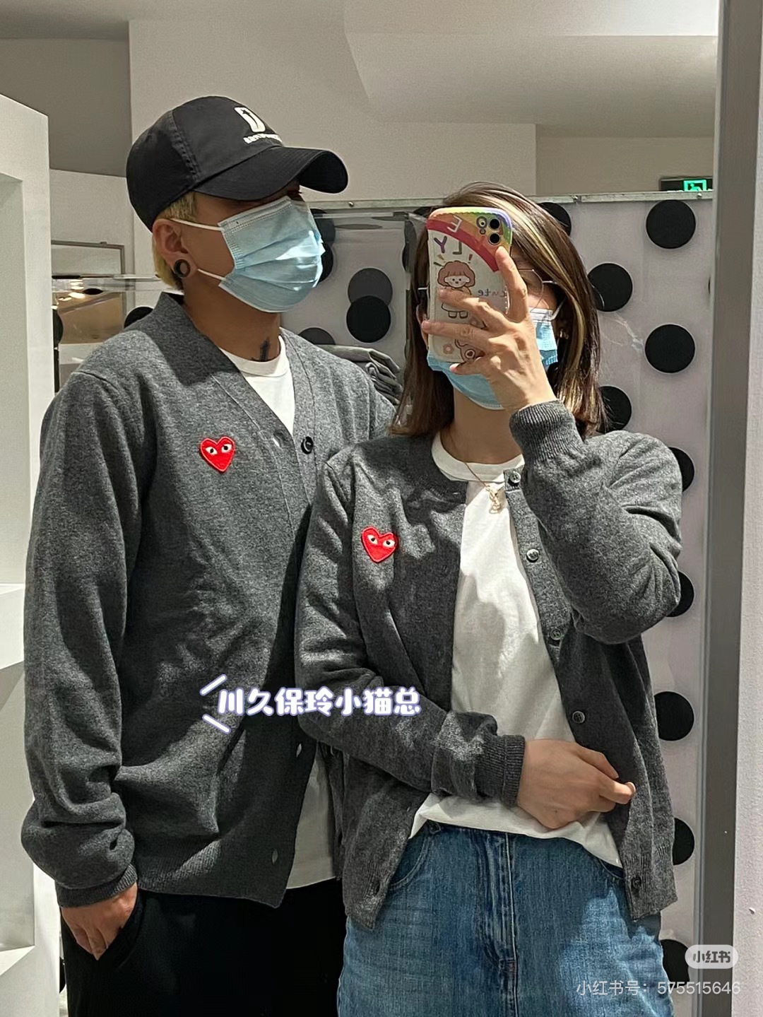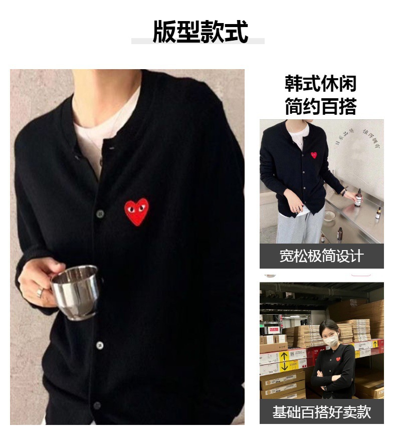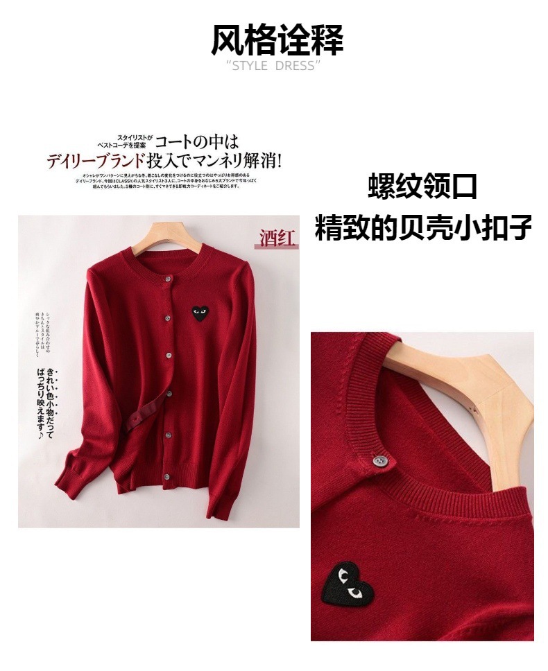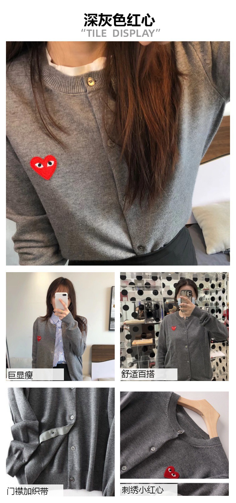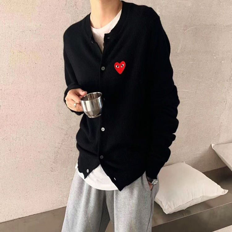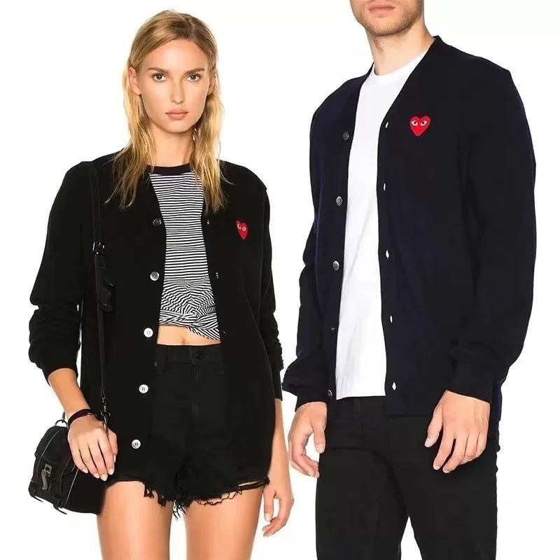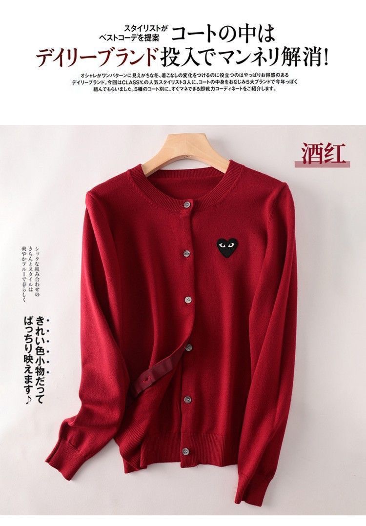 일본 카와쿠루 레드 러브 스웨터 남성과 여성 같은 스타일 커플 울 카디건 보링 스웨터 재킷 플레이 카디건