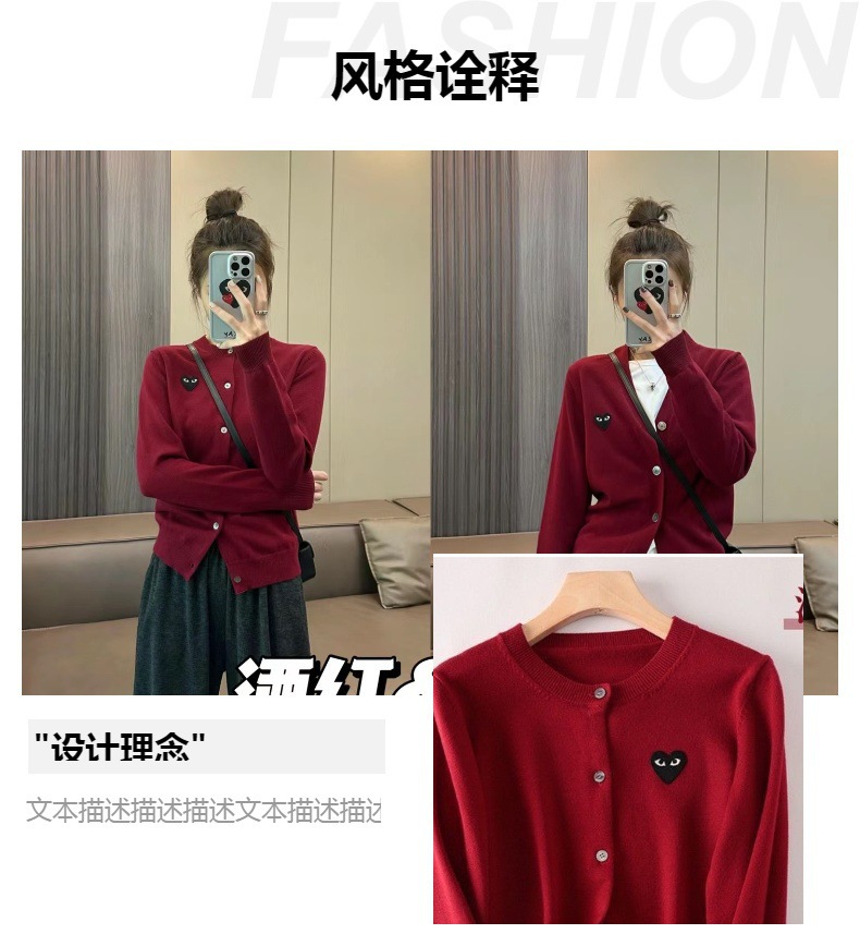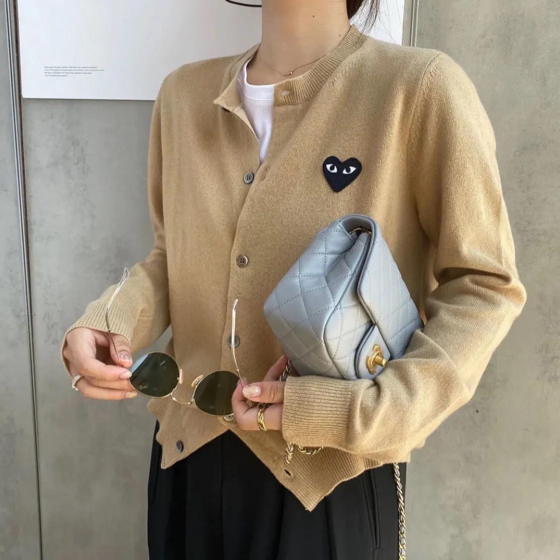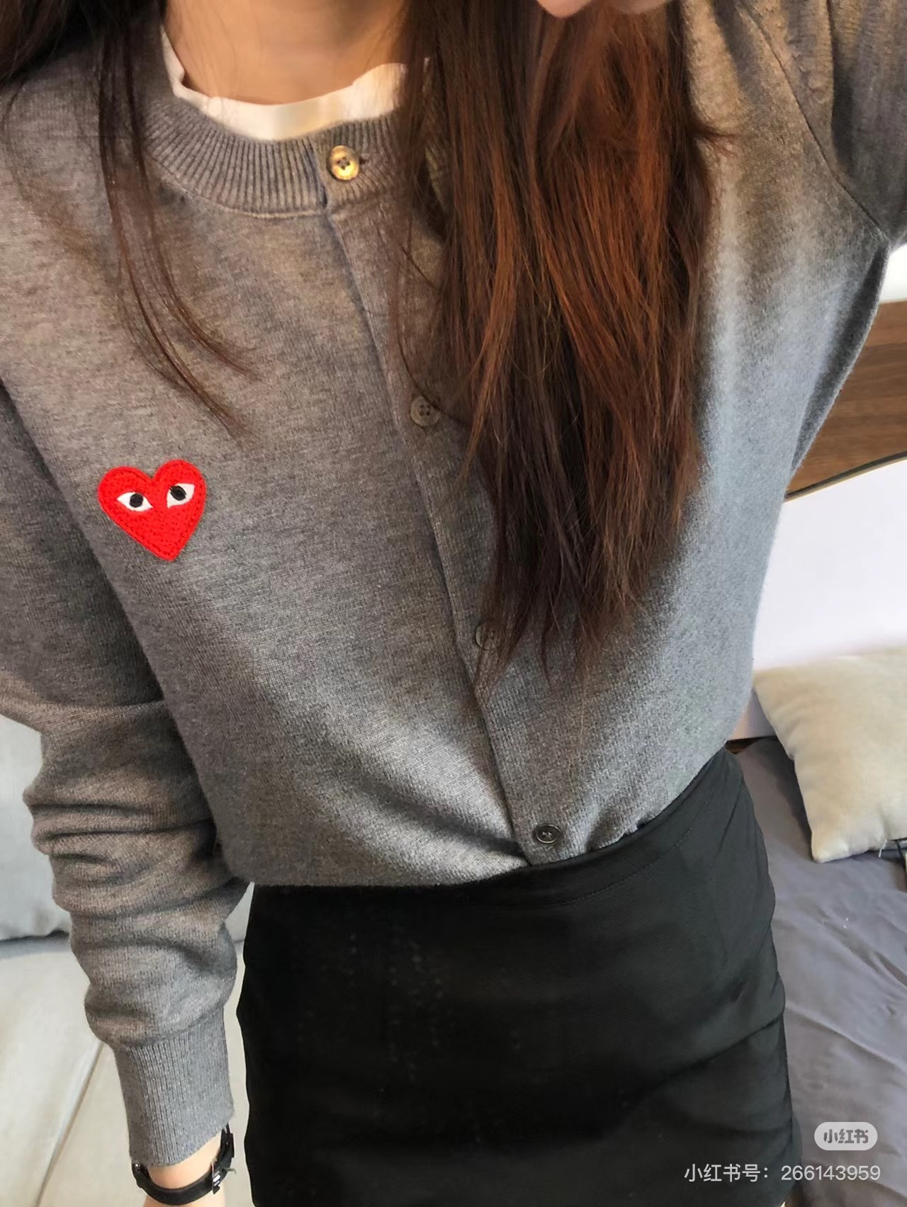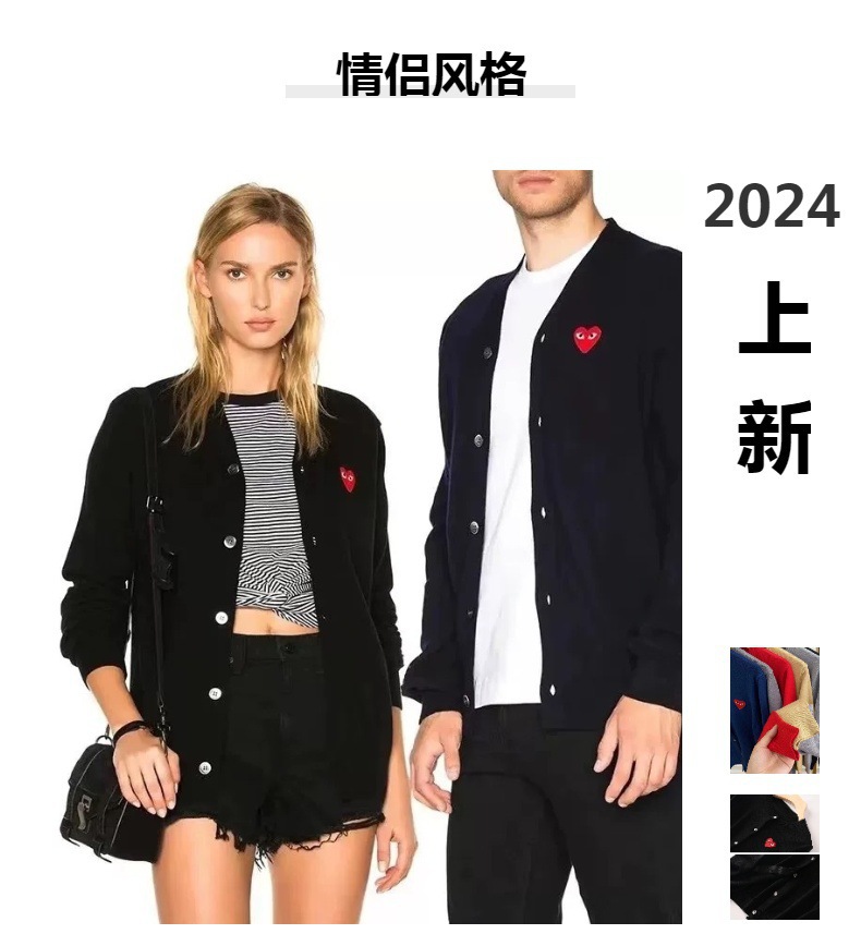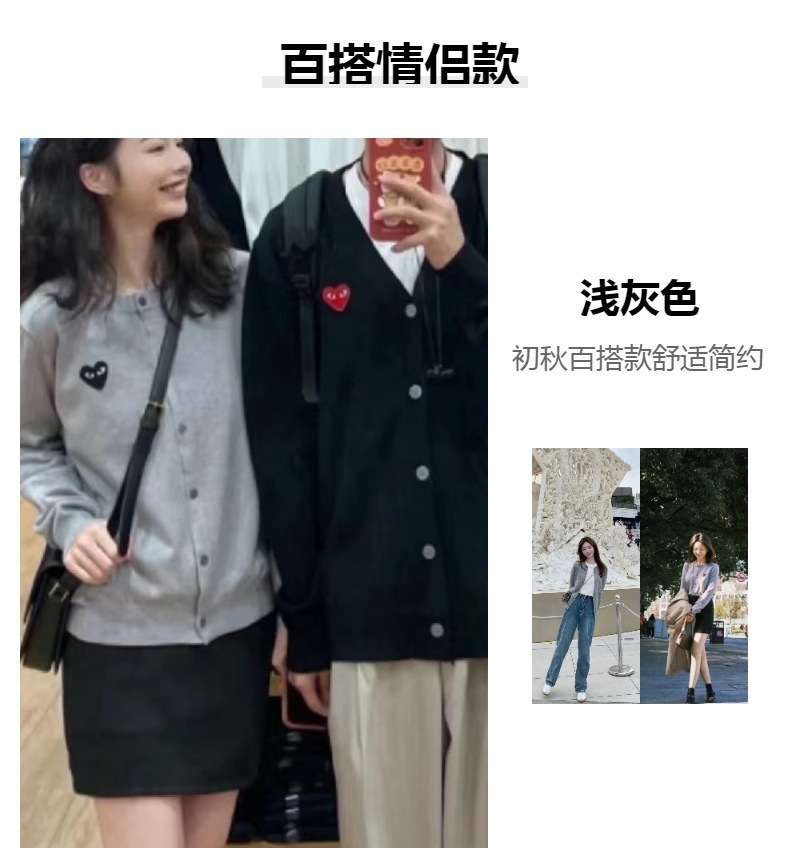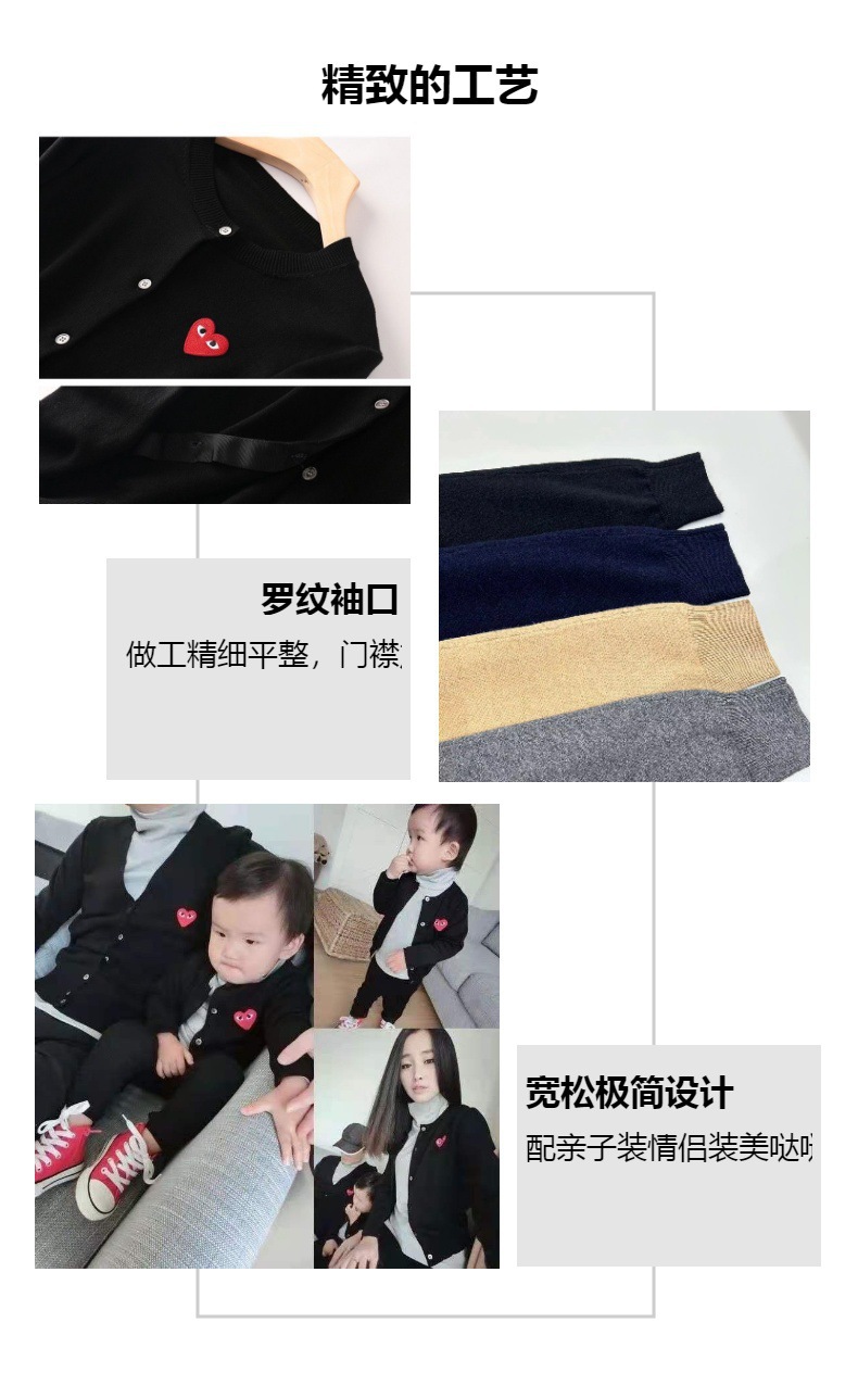 일본 카와쿠루 레드 러브 스웨터 남성과 여성 같은 스타일 커플 울 카디건 보링 스웨터 재킷 플레이 카디건