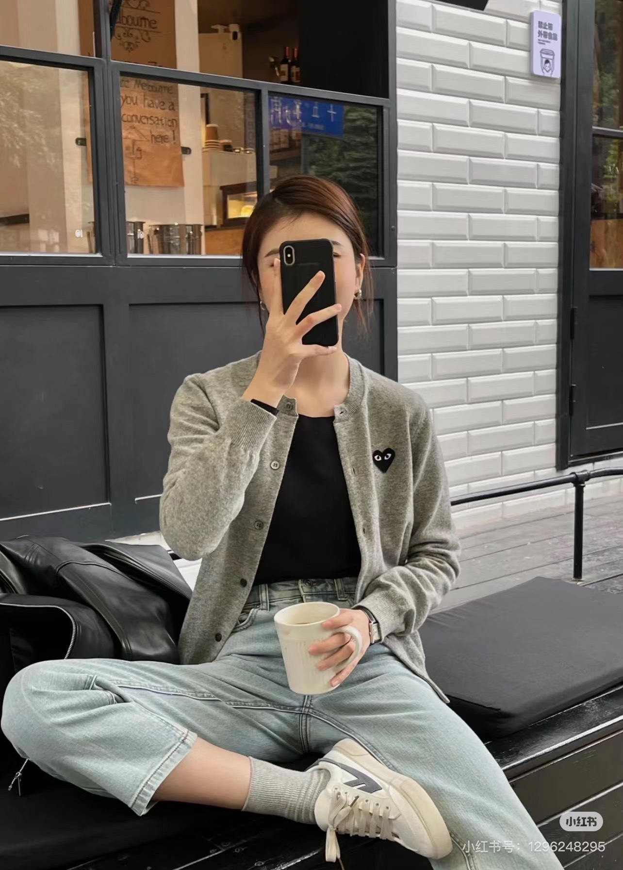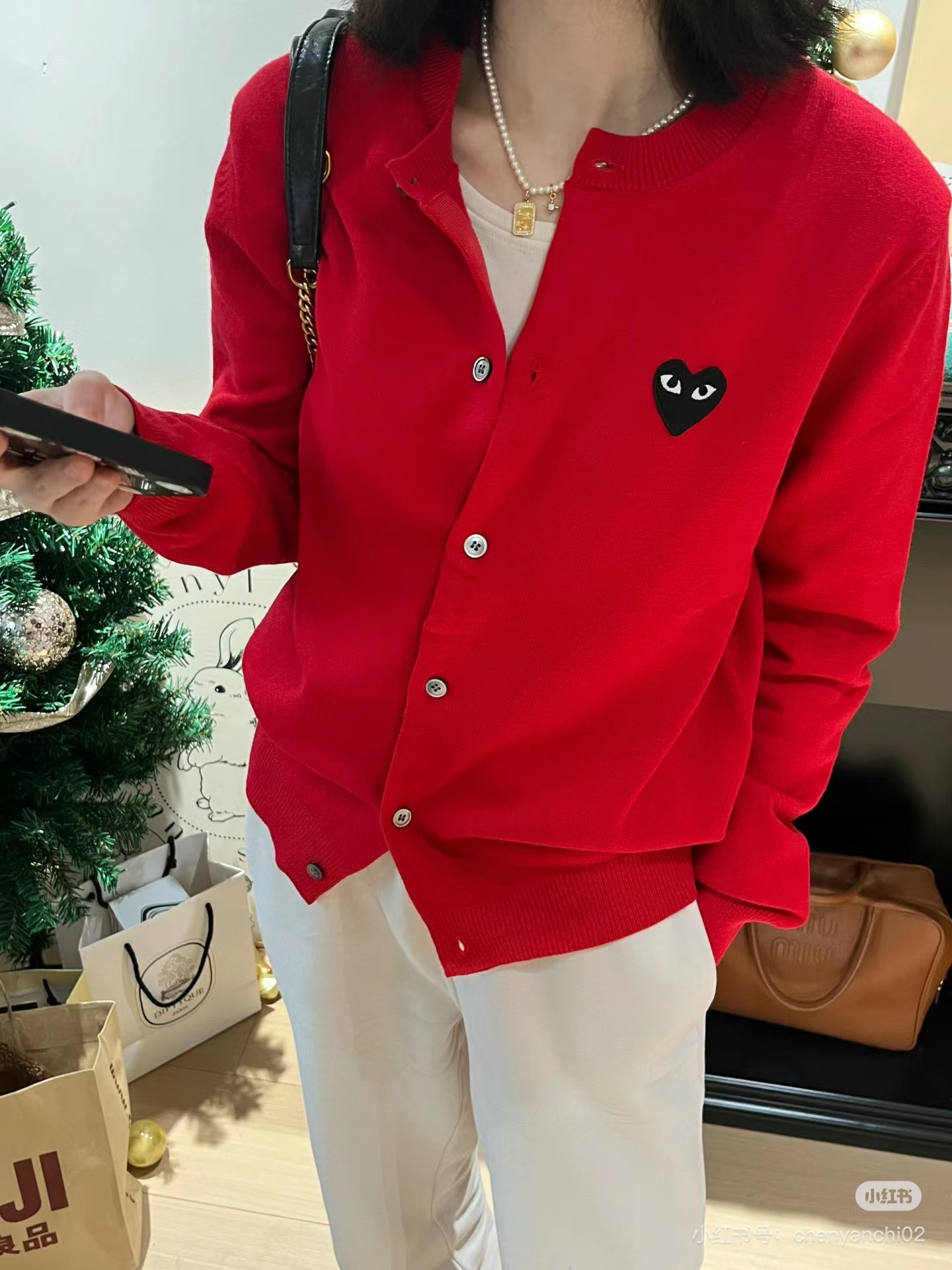 일본 카와쿠루 레드 러브 스웨터 남성과 여성 같은 스타일 커플 울 카디건 보링 스웨터 재킷 플레이 카디건스토어 가기