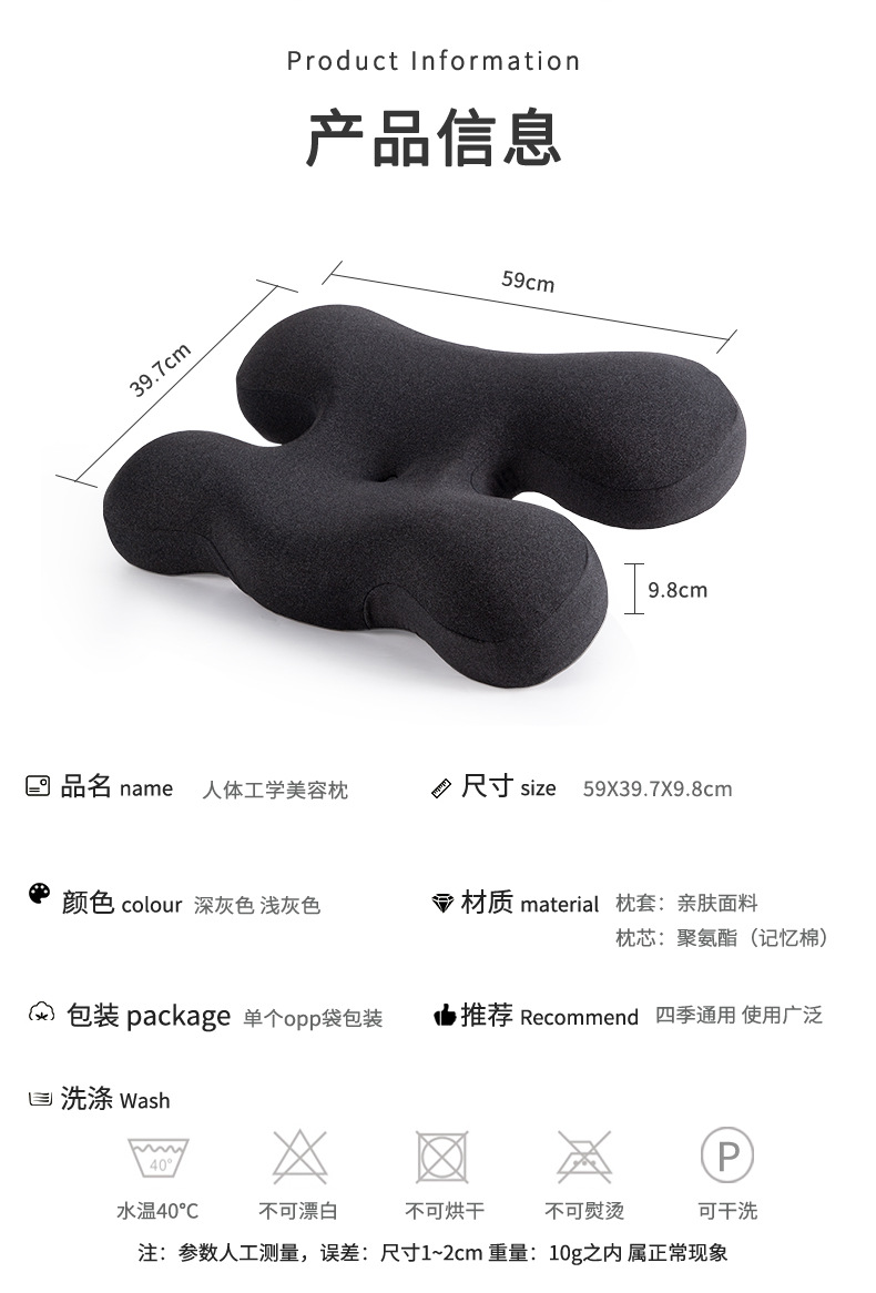 딥슬립 메모리베개, 나비베개, 미용베개, 얼굴과 귀에 압력을 가하지 않는 인체공학적 베개, 느린반발 메모리베개