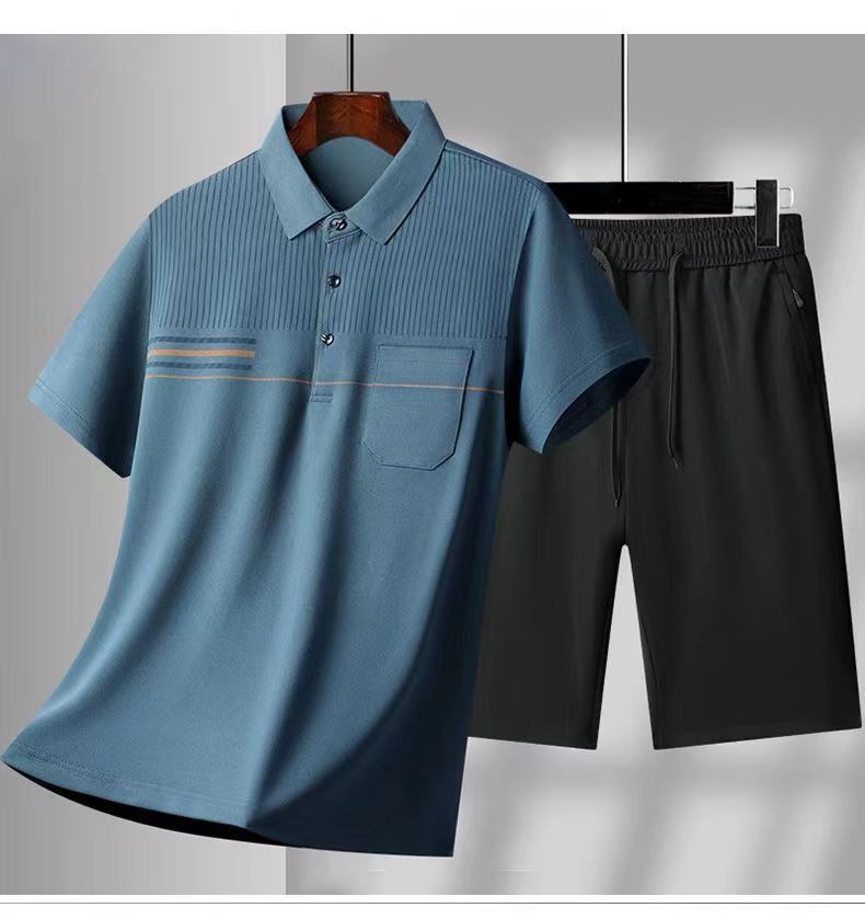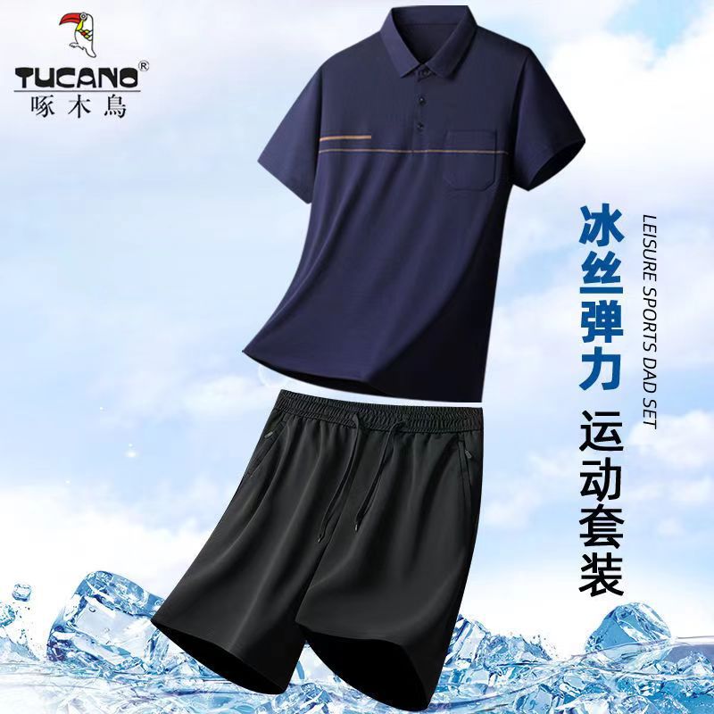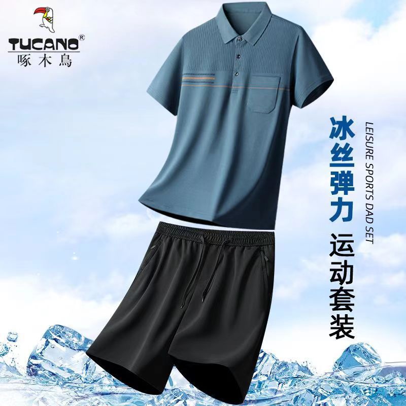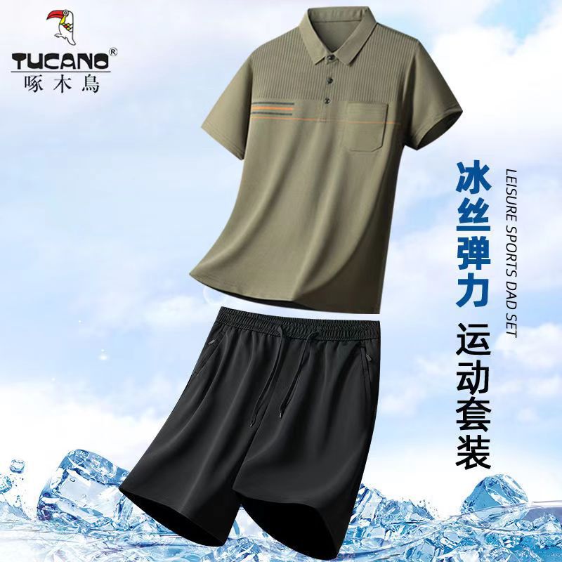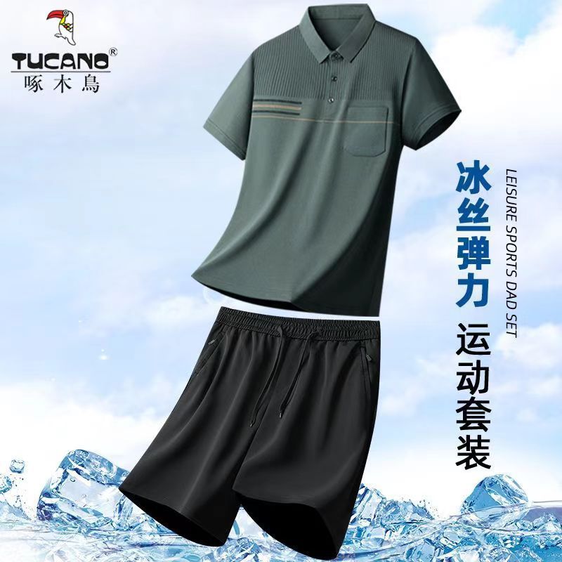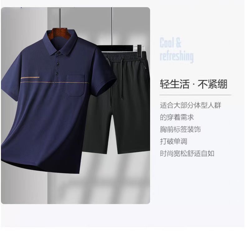 2025 새로운 아빠 여름 반팔 정장 중년 캐주얼 스포츠 남성 여름 얼음 실크 티셔츠 옷스토어 가기