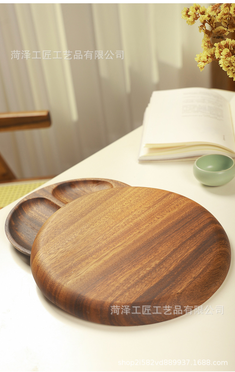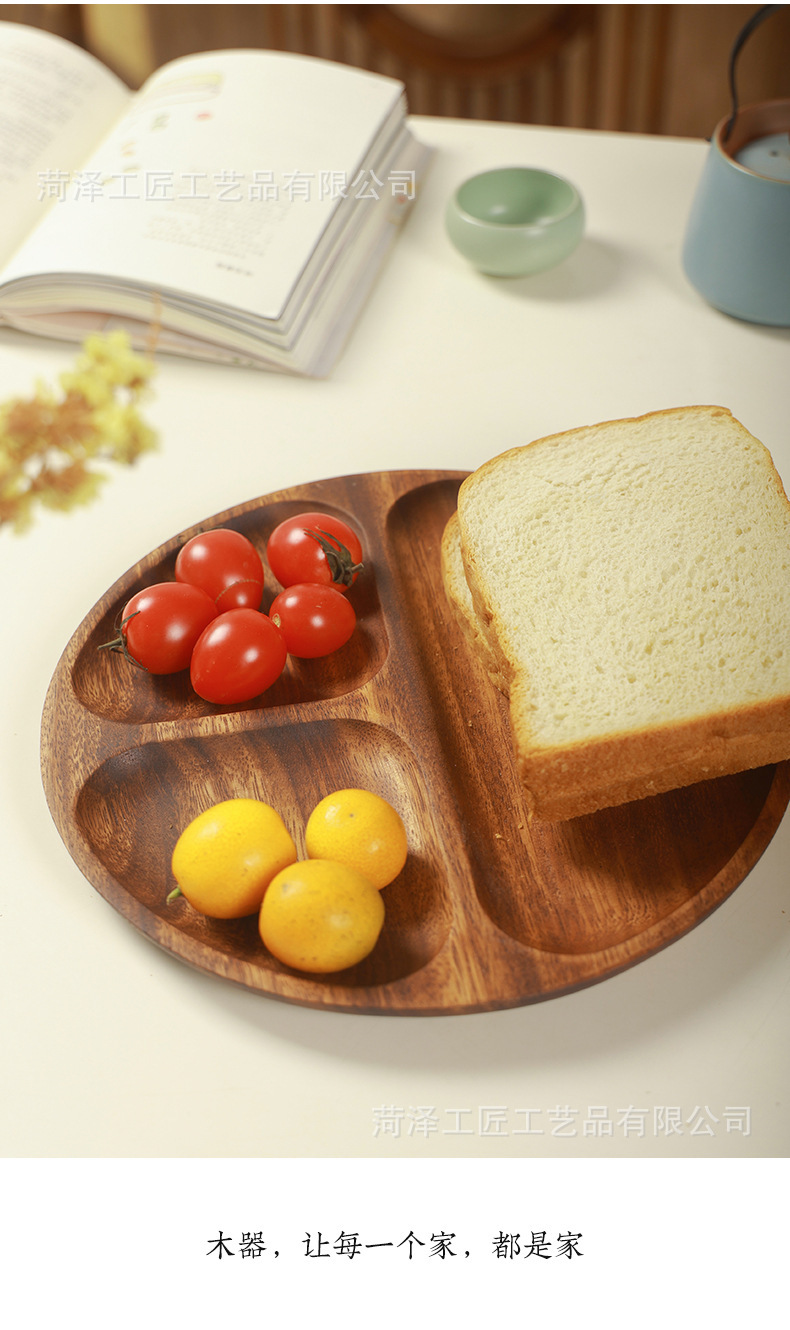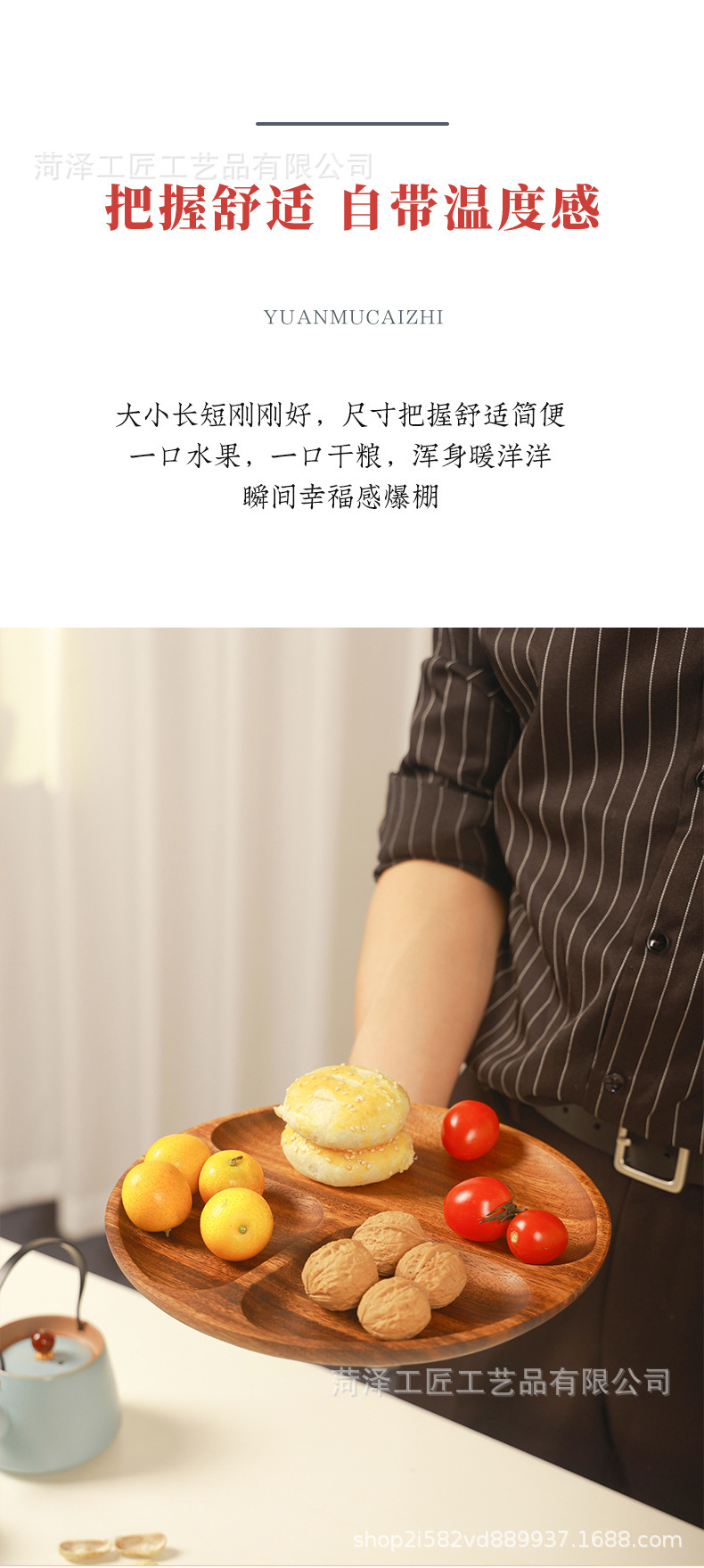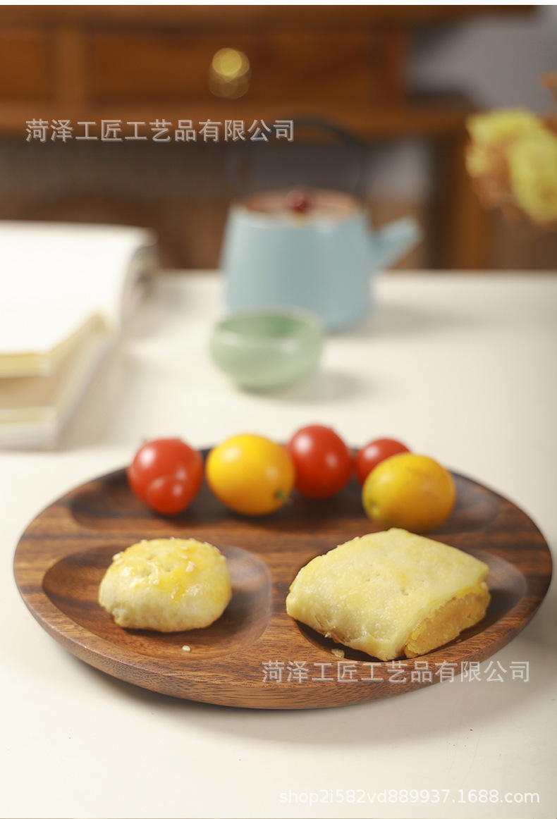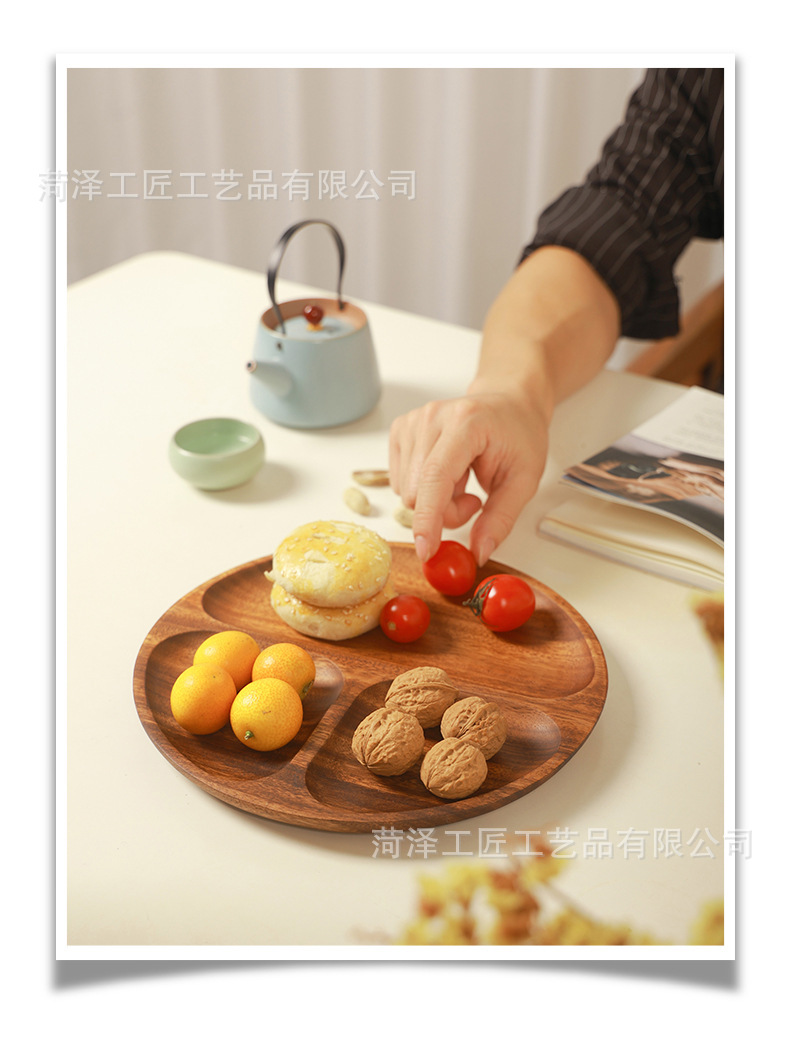 호두색 과일 접시, 분할 건과일 스낵 접시, 아카시아 나무 샐러드 그릇, 원목 과일 접시, 원형 분할 접시