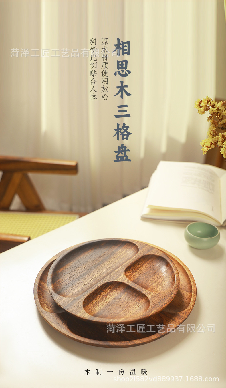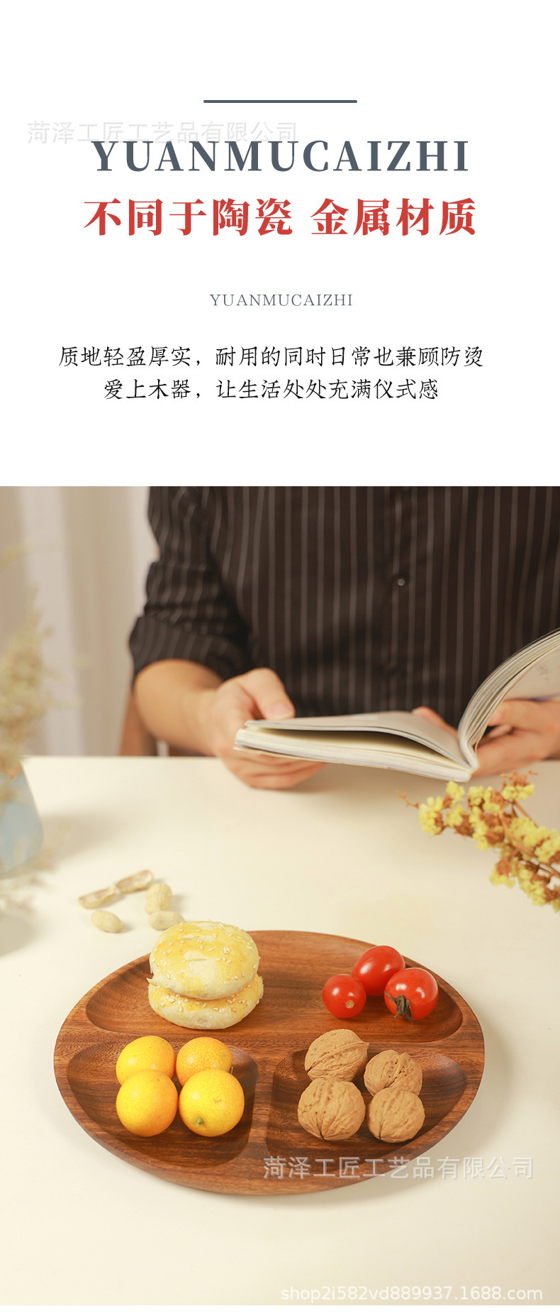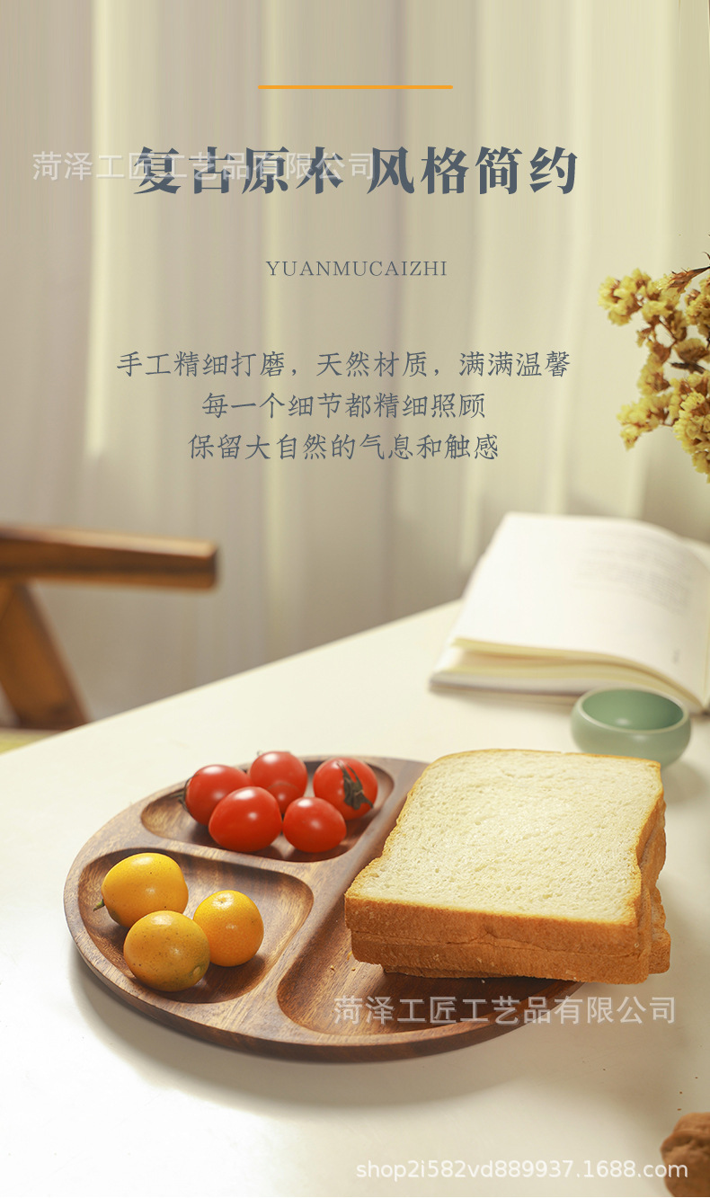 호두색 과일 접시, 분할 건과일 스낵 접시, 아카시아 나무 샐러드 그릇, 원목 과일 접시, 원형 분할 접시스토어 가기