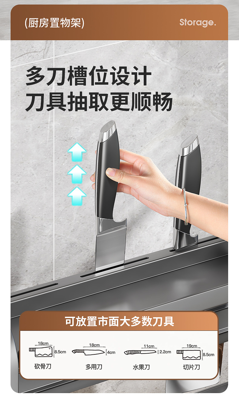 • [건애쉬] 3단 50cm [칼받침+칼가드+도마홀더+젓가락통+고리*6]