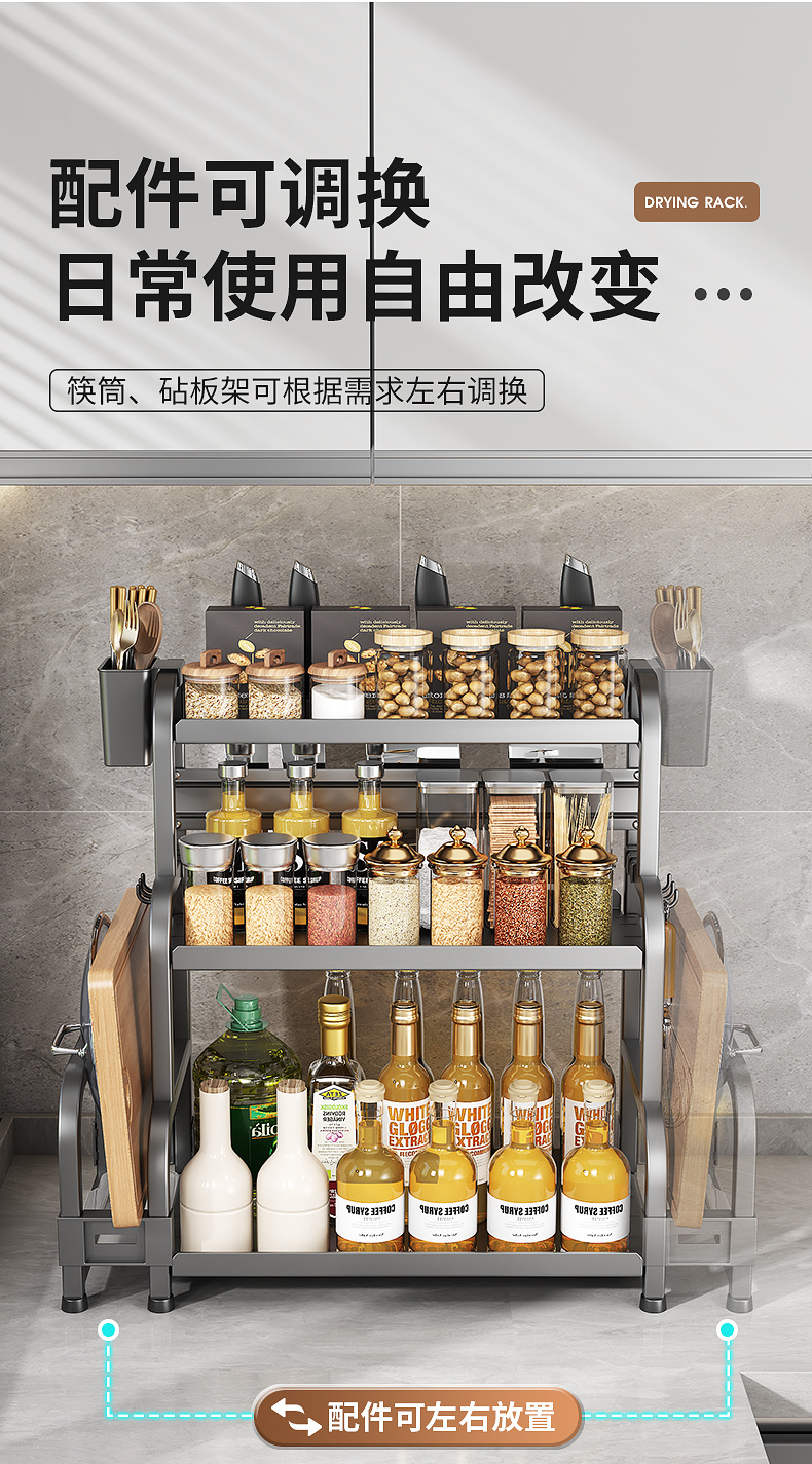 주방 조미료 보관함 젓가락 칼 홀더 조리대 다기능 조미료 주방 용품 보관함 다층 선반스토어 가기