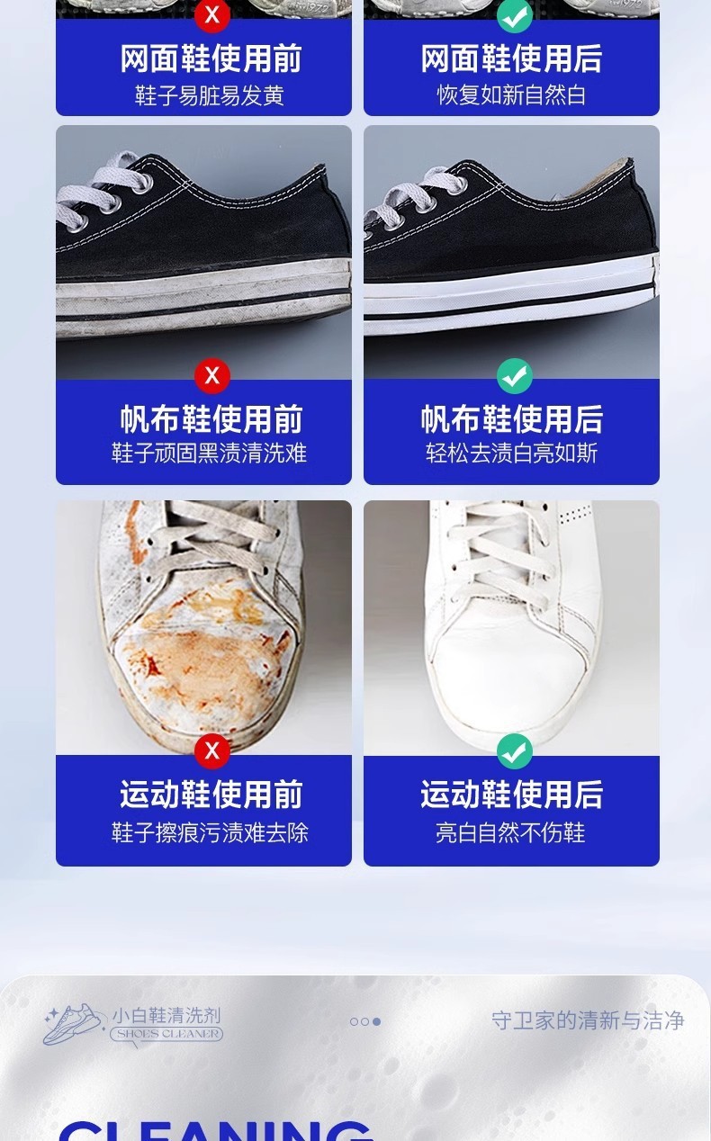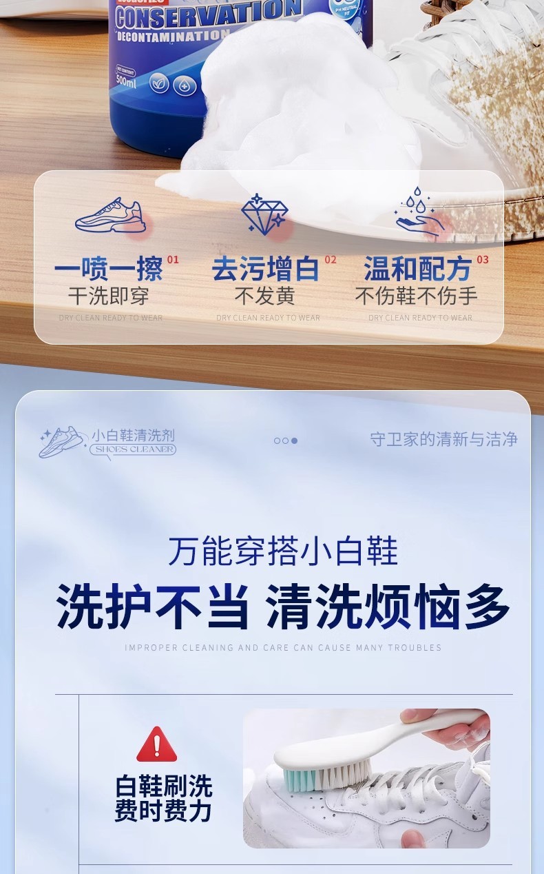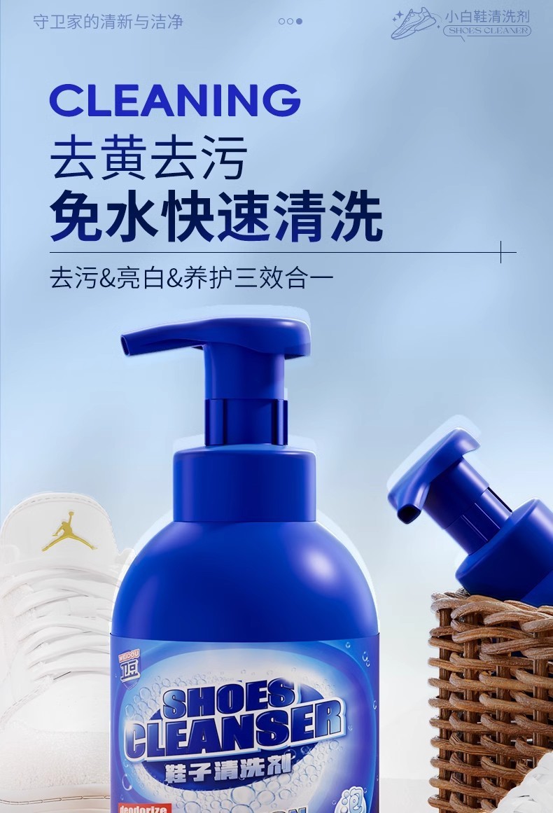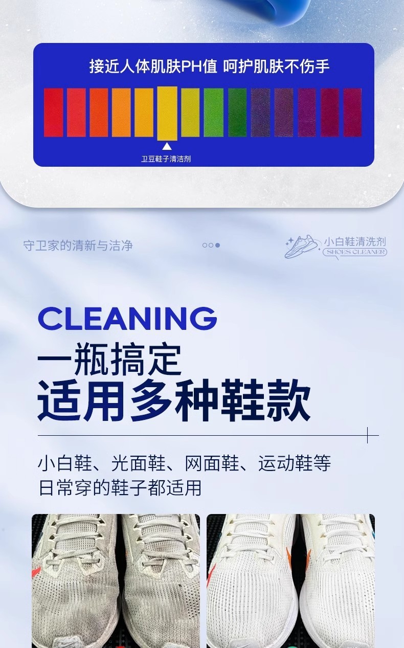 Weidou 신발 세척제 가정용 흰색 신발 무수 노란색 제거 및 미백 청소 버블 무스 얼룩 제거 드라이 클리닝