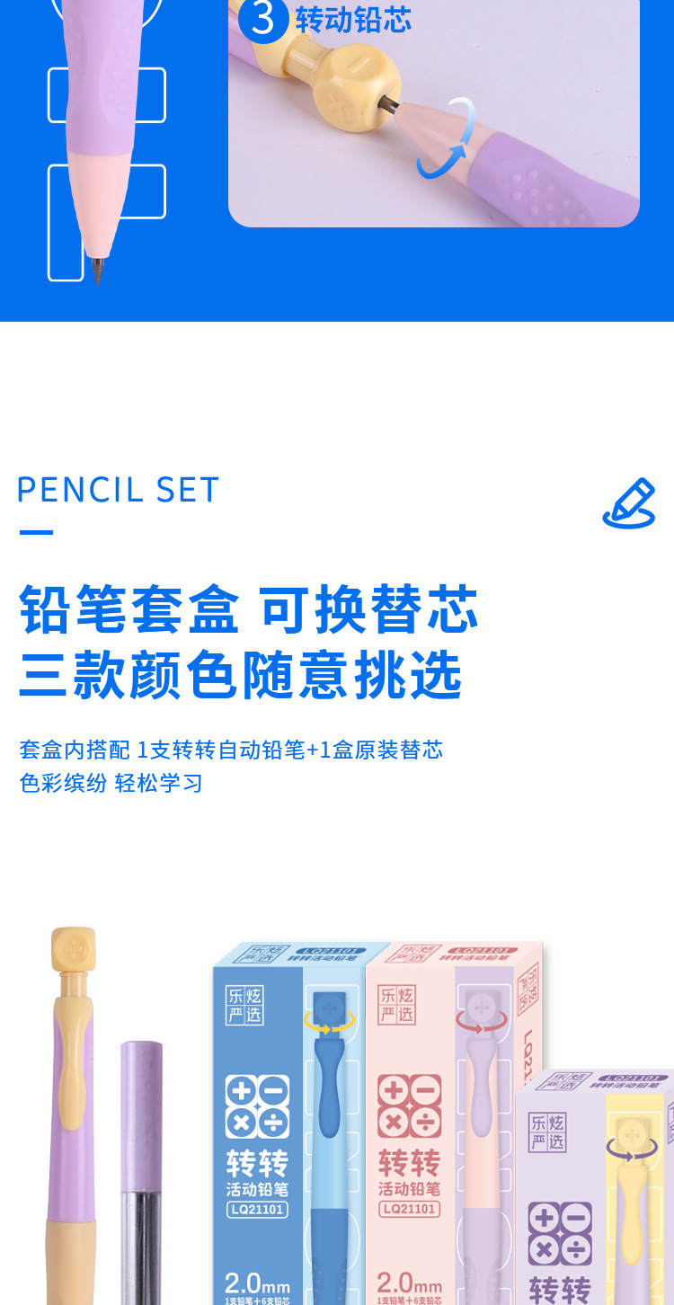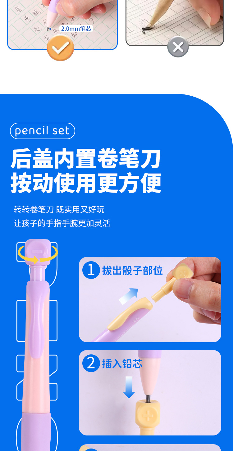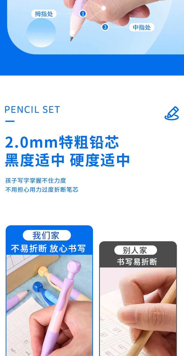 초등학생 2.0 두꺼운심 자동연필, 어린이 캘리그라피 연습용, 깎지 않고 연속연필, 고급스러운 HB 검정펜스토어 가기