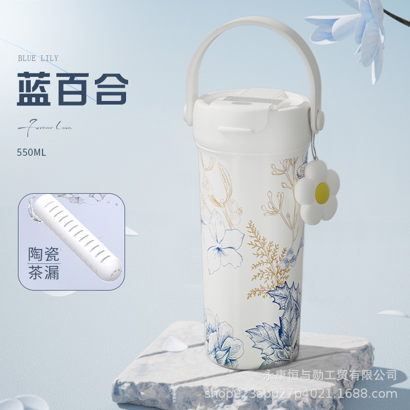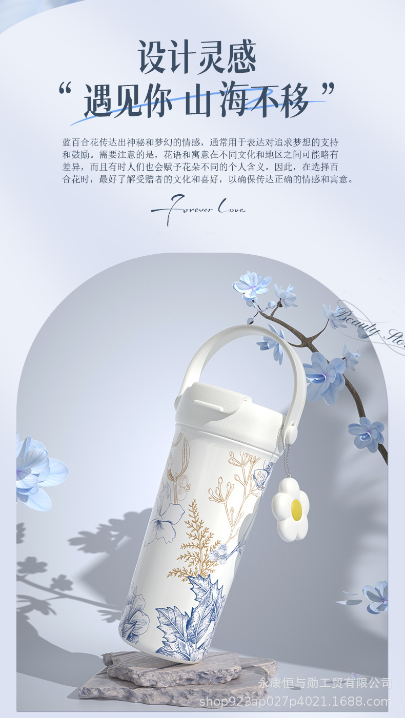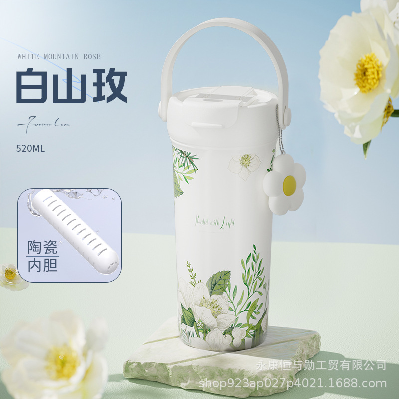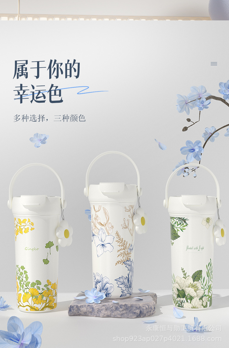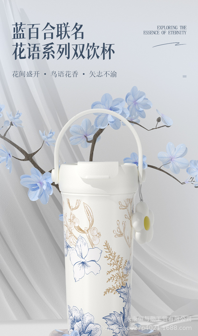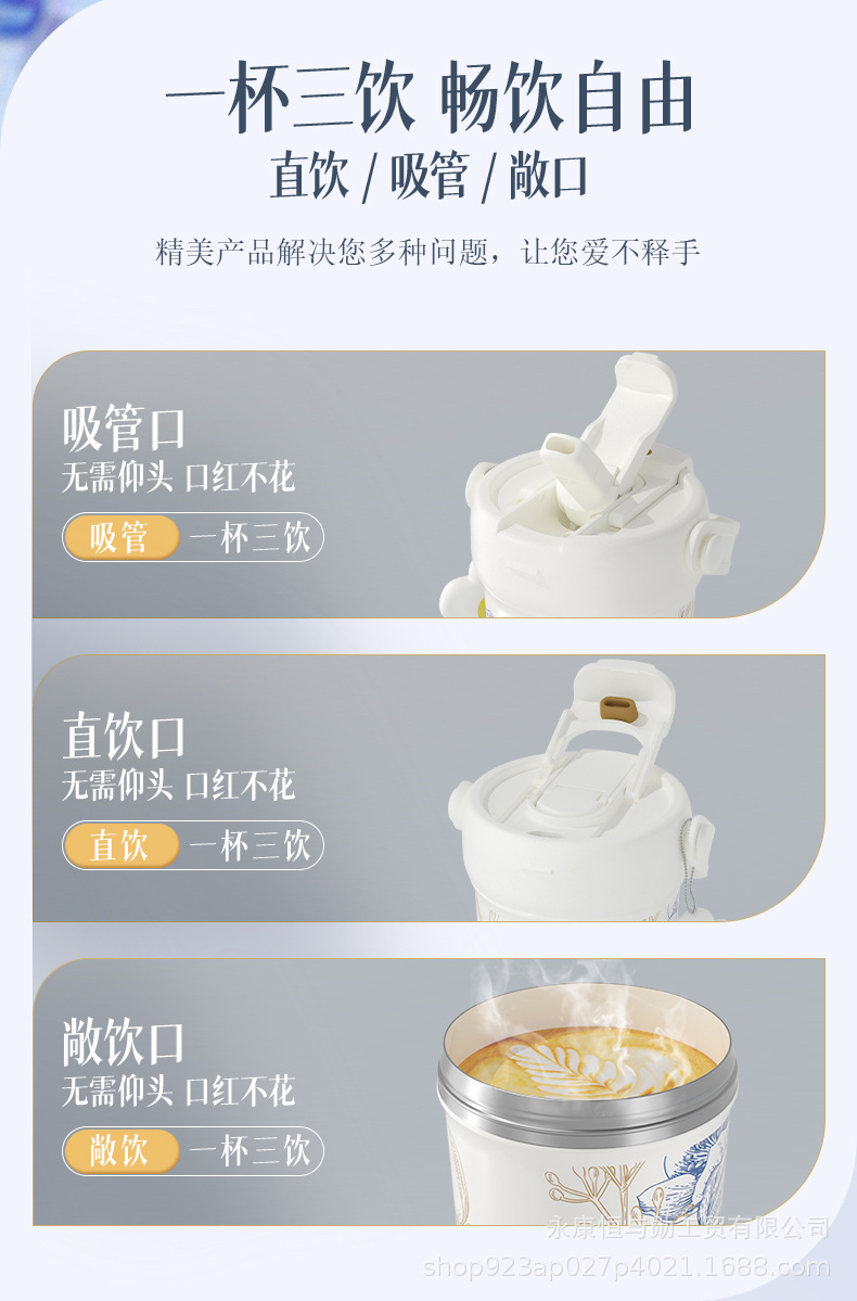 대용량 물컵 304 스테인리스 보온병 맞춤형 고급스러운 이중 빨대 고급스러운 라이트 럭셔리 빨대컵스토어 가기