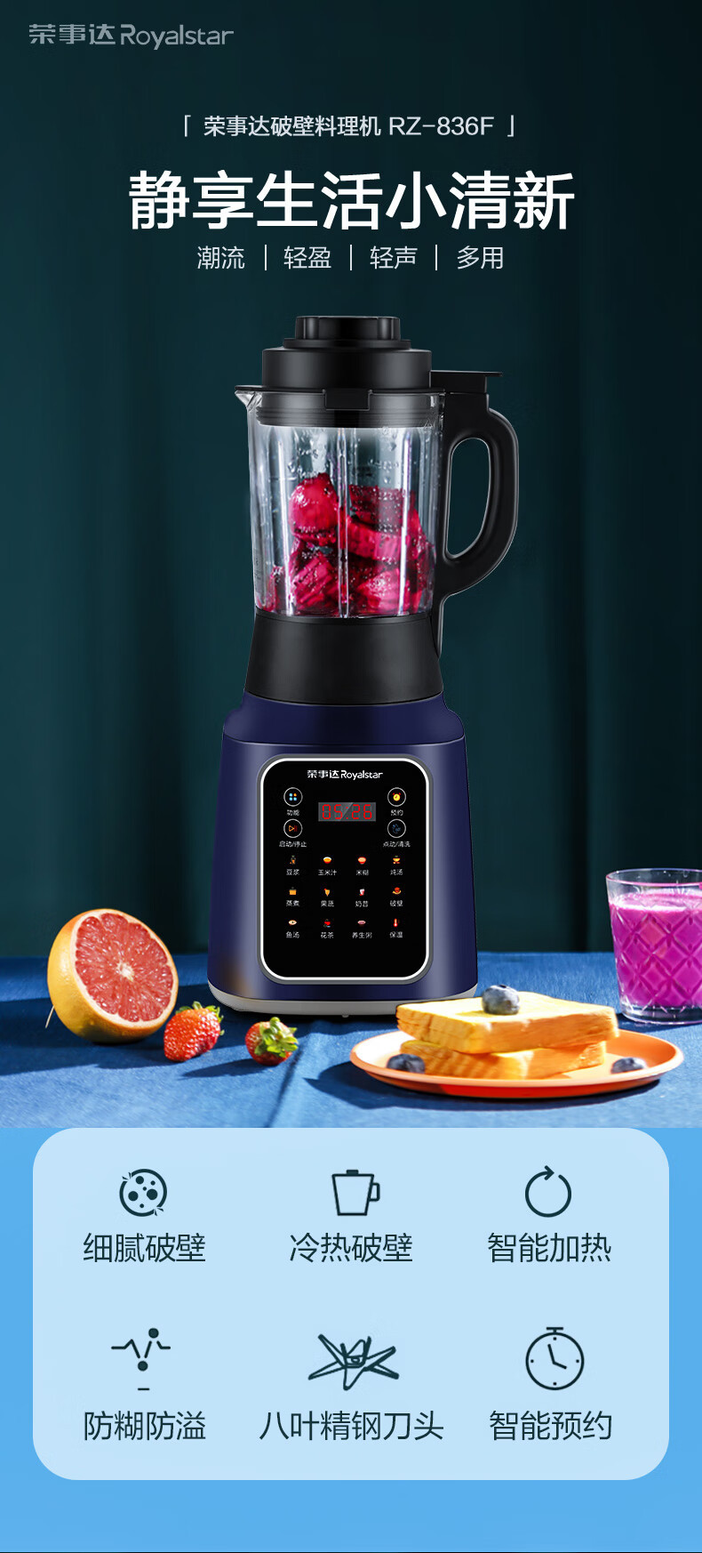 1.75L 벽파괴기 두유기 전자동 예약 가열 필터리스 주스 및 식품조리기 RZ-836F