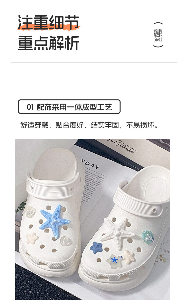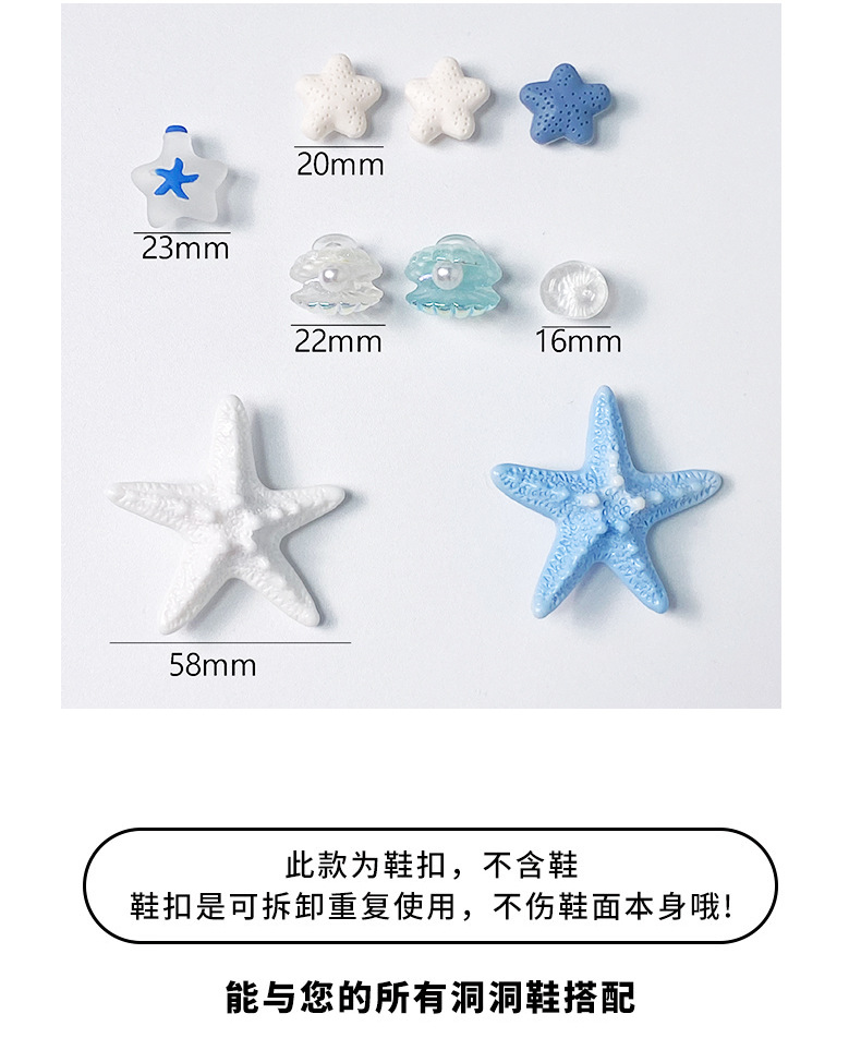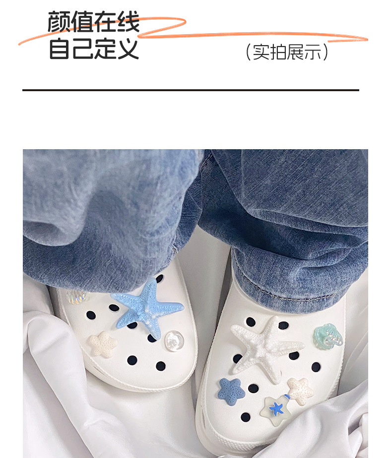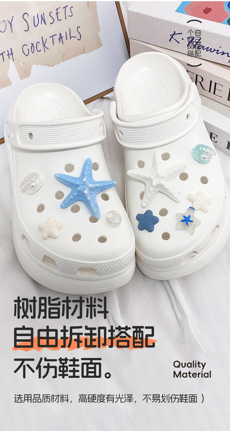 신선하고 고급스러운 구멍이 뚫린 신발, 밝은 색상, 다양한 불가사리 껍질, 탈부착 가능한 액세서리 버클, DIY 신발 버클스토어 가기