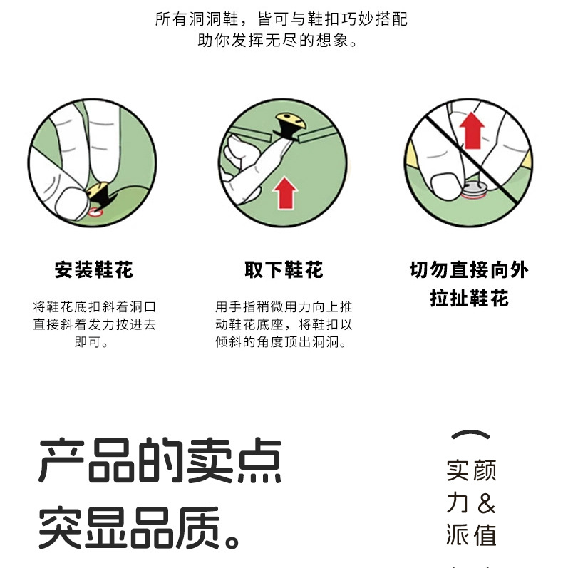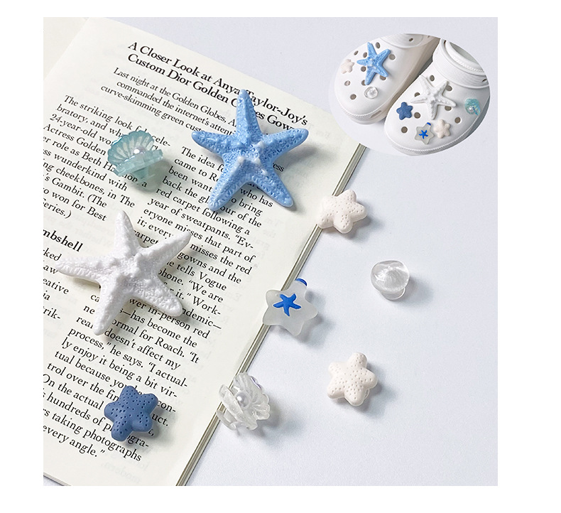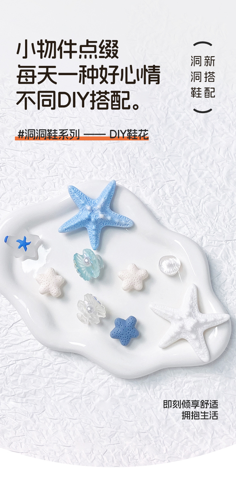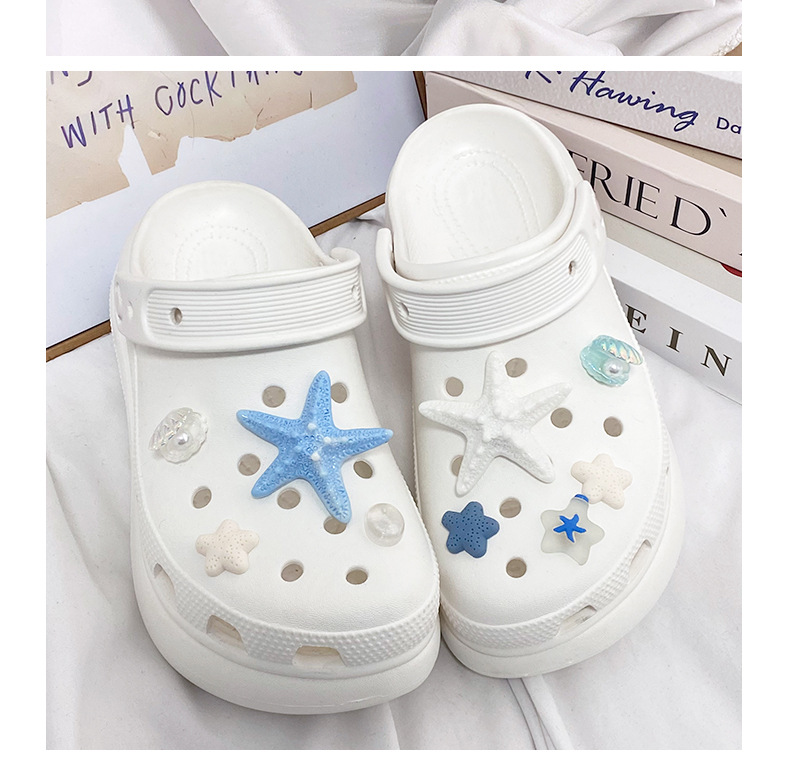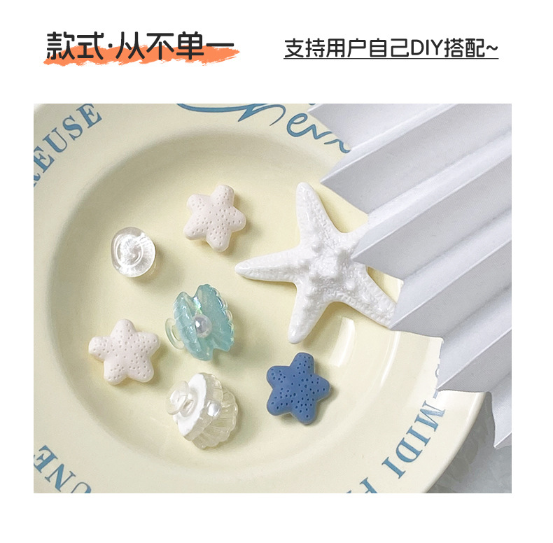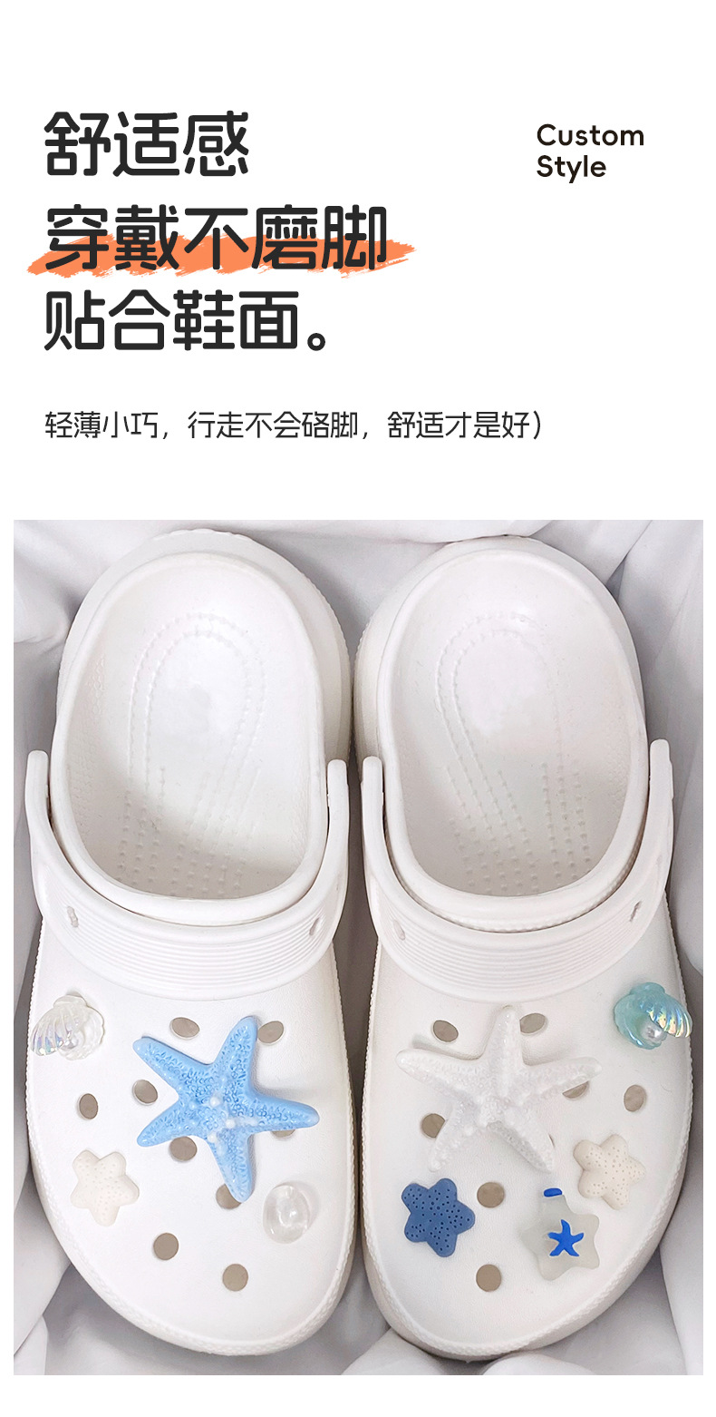 신선하고 고급스러운 구멍이 뚫린 신발, 밝은 색상, 다양한 불가사리 껍질, 탈부착 가능한 액세서리 버클, DIY 신발 버클스토어 가기