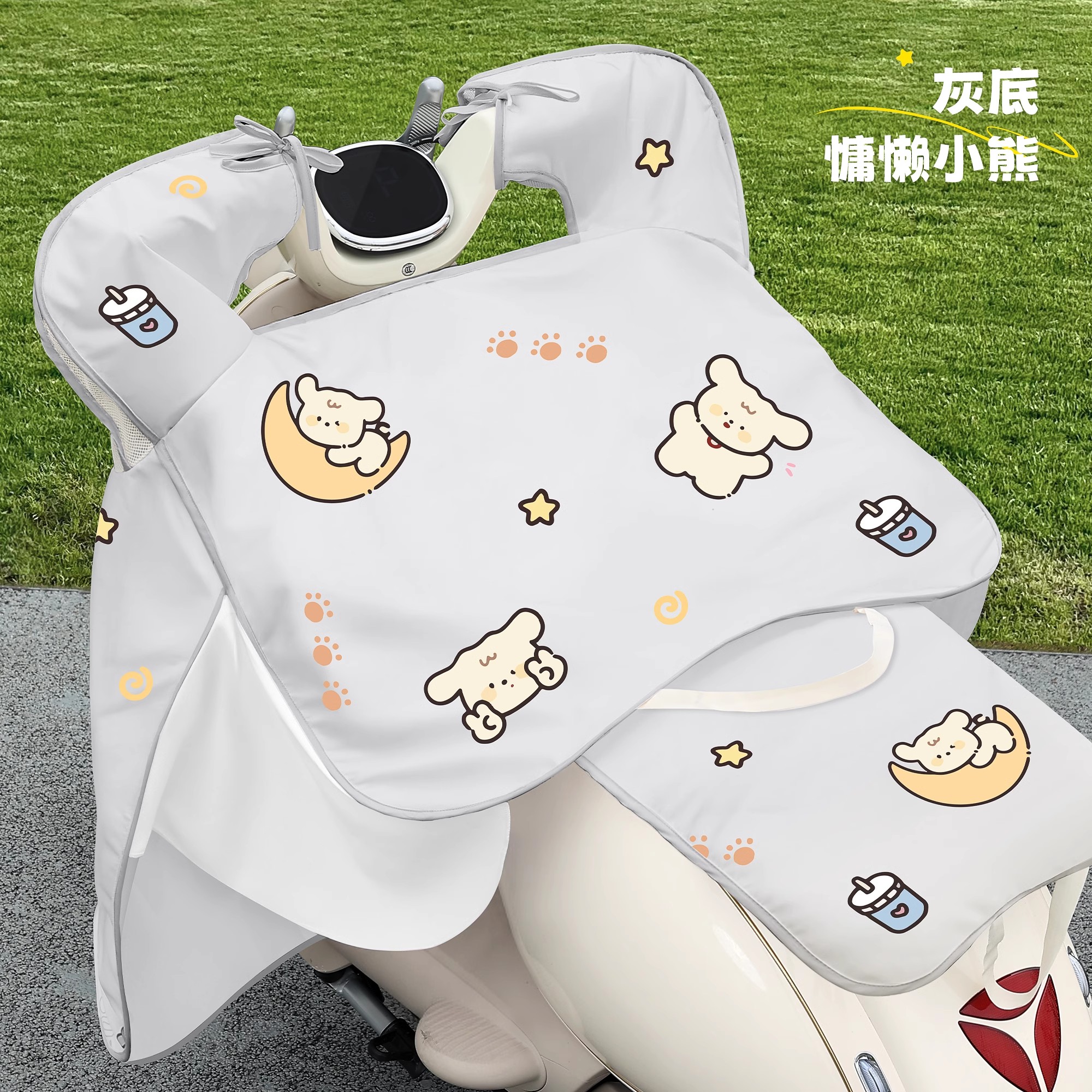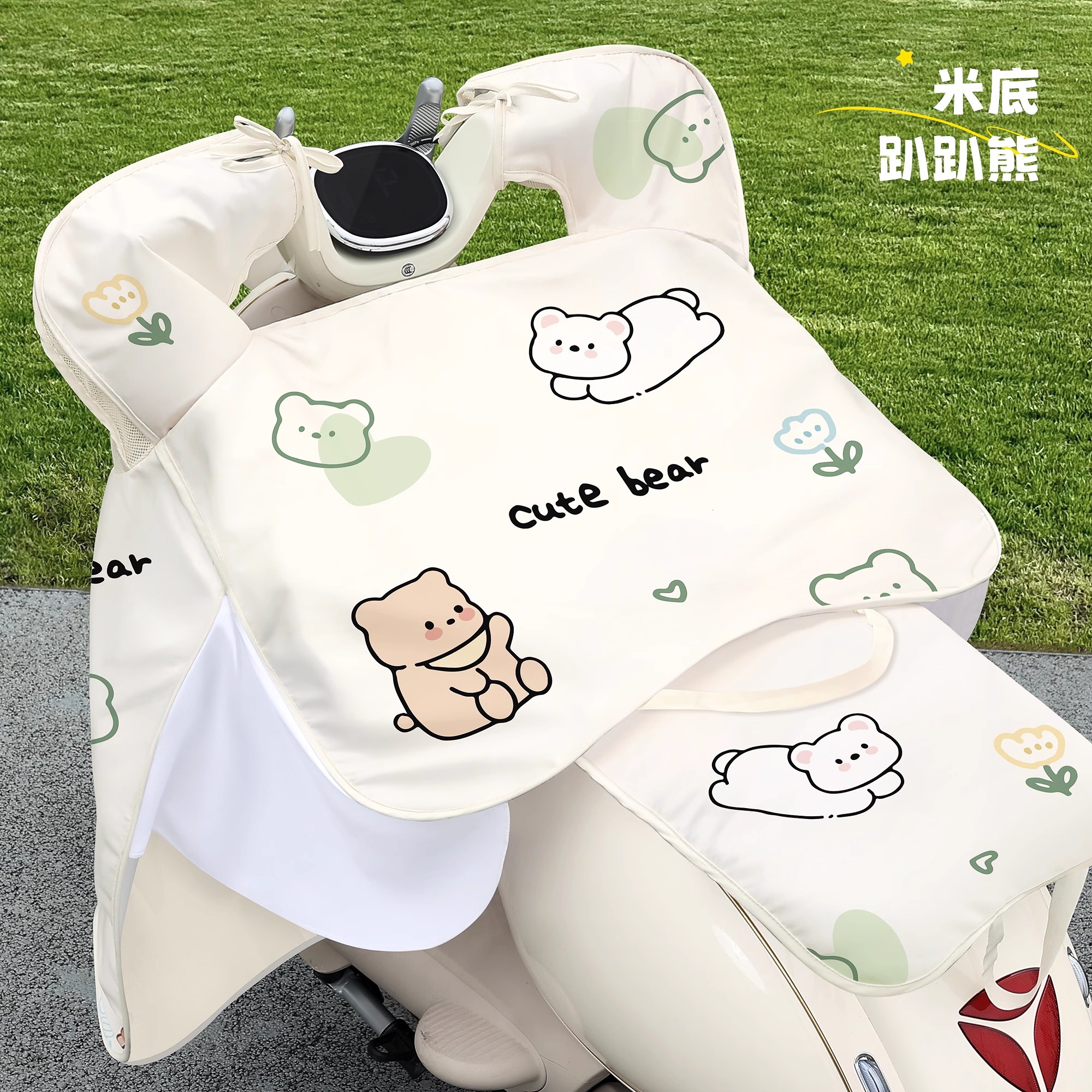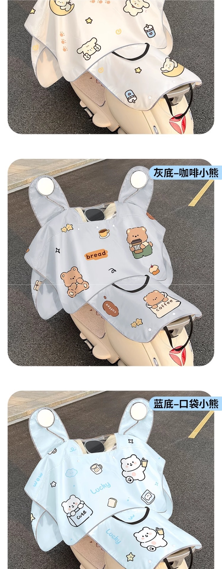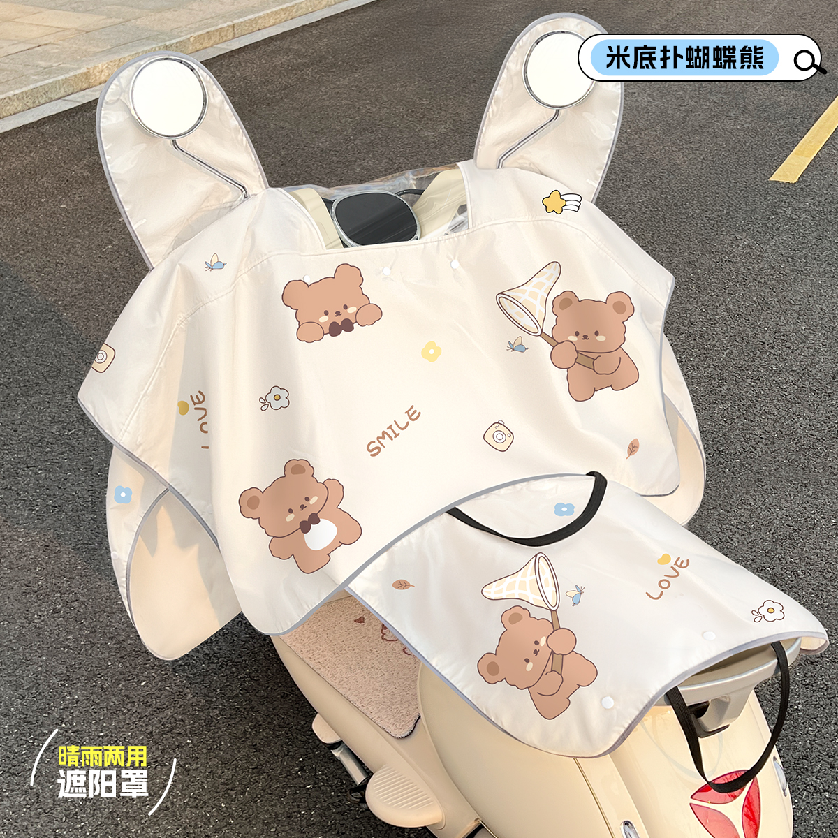 • [태양, 비 보호 2-in-1 + 거울 + 뒷좌석 커버] 파란색 배경 밀크티 베어