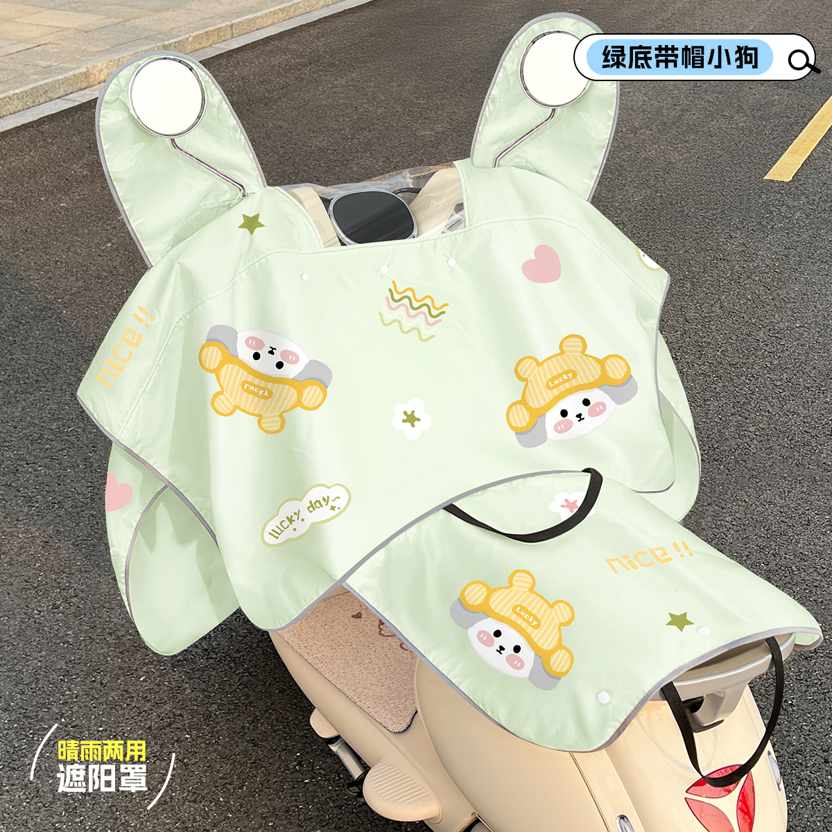 • [태양과 비 보호 2-in-1 + 거울 + 뒷좌석 커버] 후드가 달린 녹색 강아지