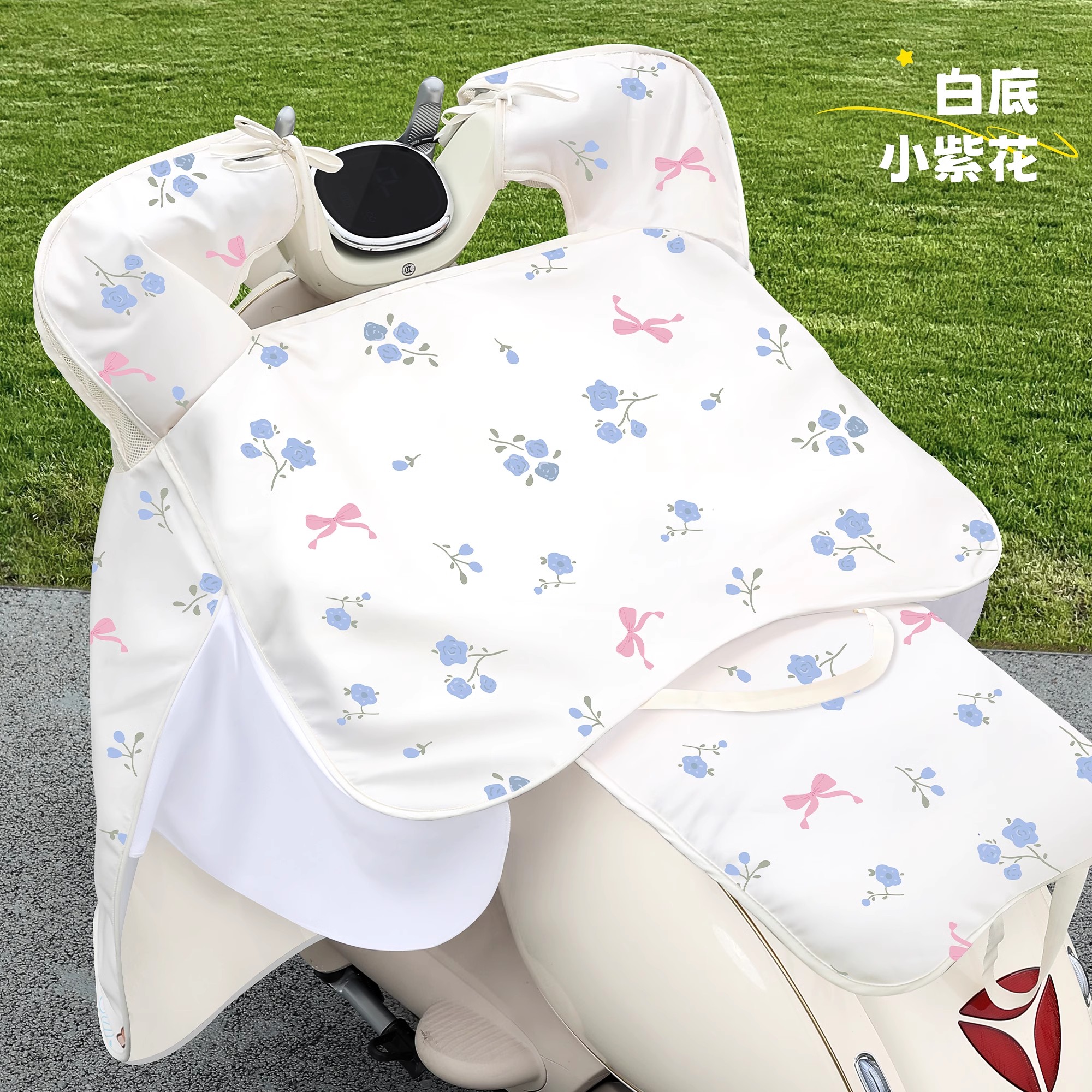 • [자외선 차단 의류 원단 + 수납 가능한 쿠션] 흰색 바탕에 작은 보라색 꽃