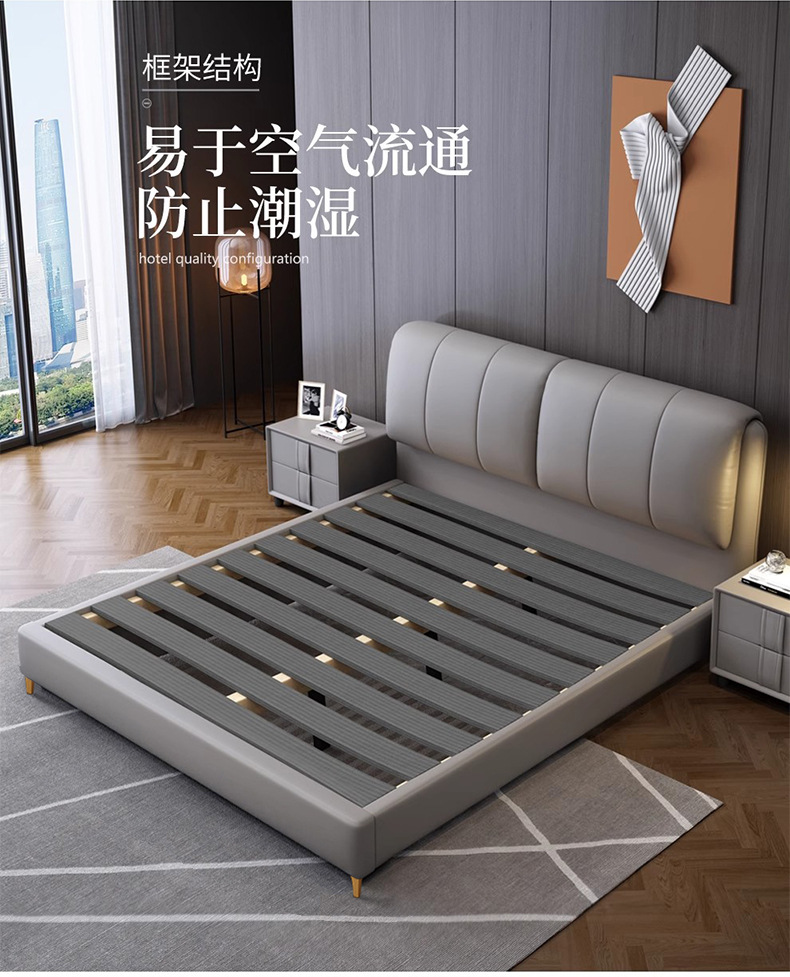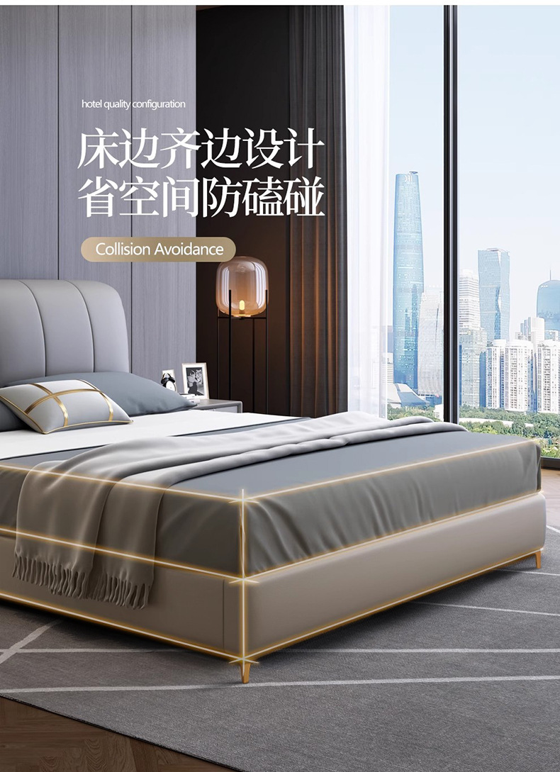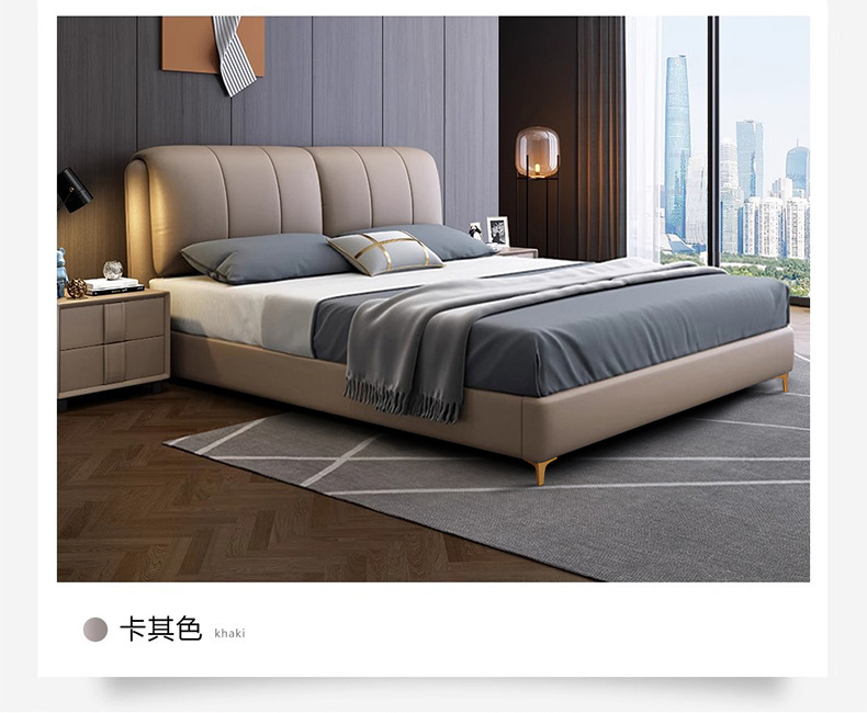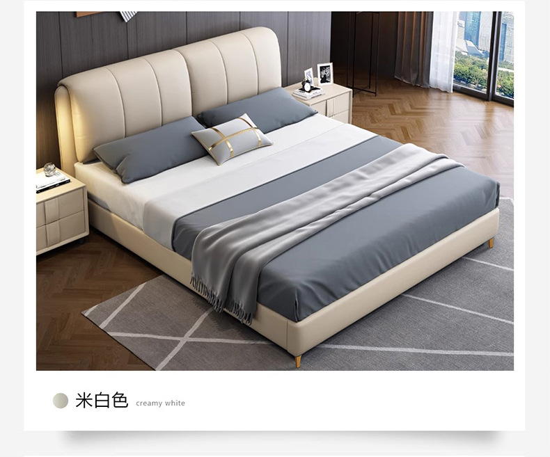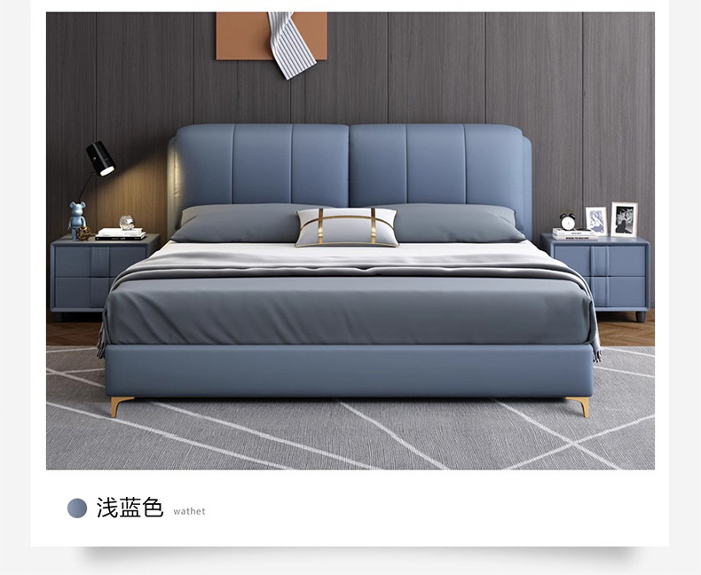 가죽 침대 현대적인 미니멀리스트 1.8m 더블 침대 1.5m 크기 마스터 침실 웨딩 침대 라이트 럭셔리 나파 가죽 침대스토어 가기